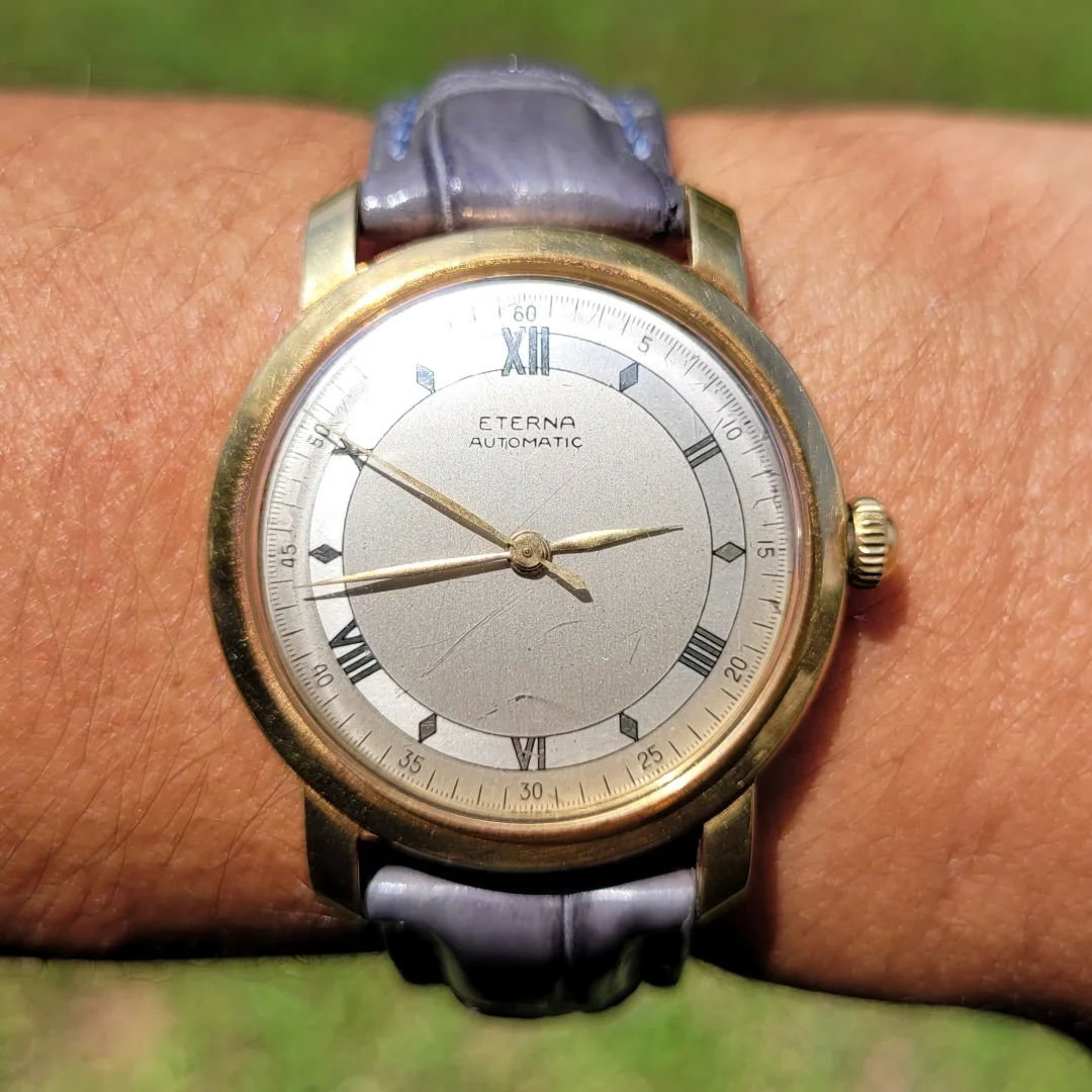 If you get one, you won't be disappointed. My gold one, above was my third Eterna. I bought it from Tony several years ago and it is easily one of my favorite dress watches, in fact, if I had to pick between it and my Connie, I'd probably pick it. Eterna is one of the absolute best Swiss watches for the money that you'll run across. They have a rich history and were hugely influential at one time. Their old subsidiary, ETA, is owned by Swatch today and builds the movements for many of the products made by Swatch.