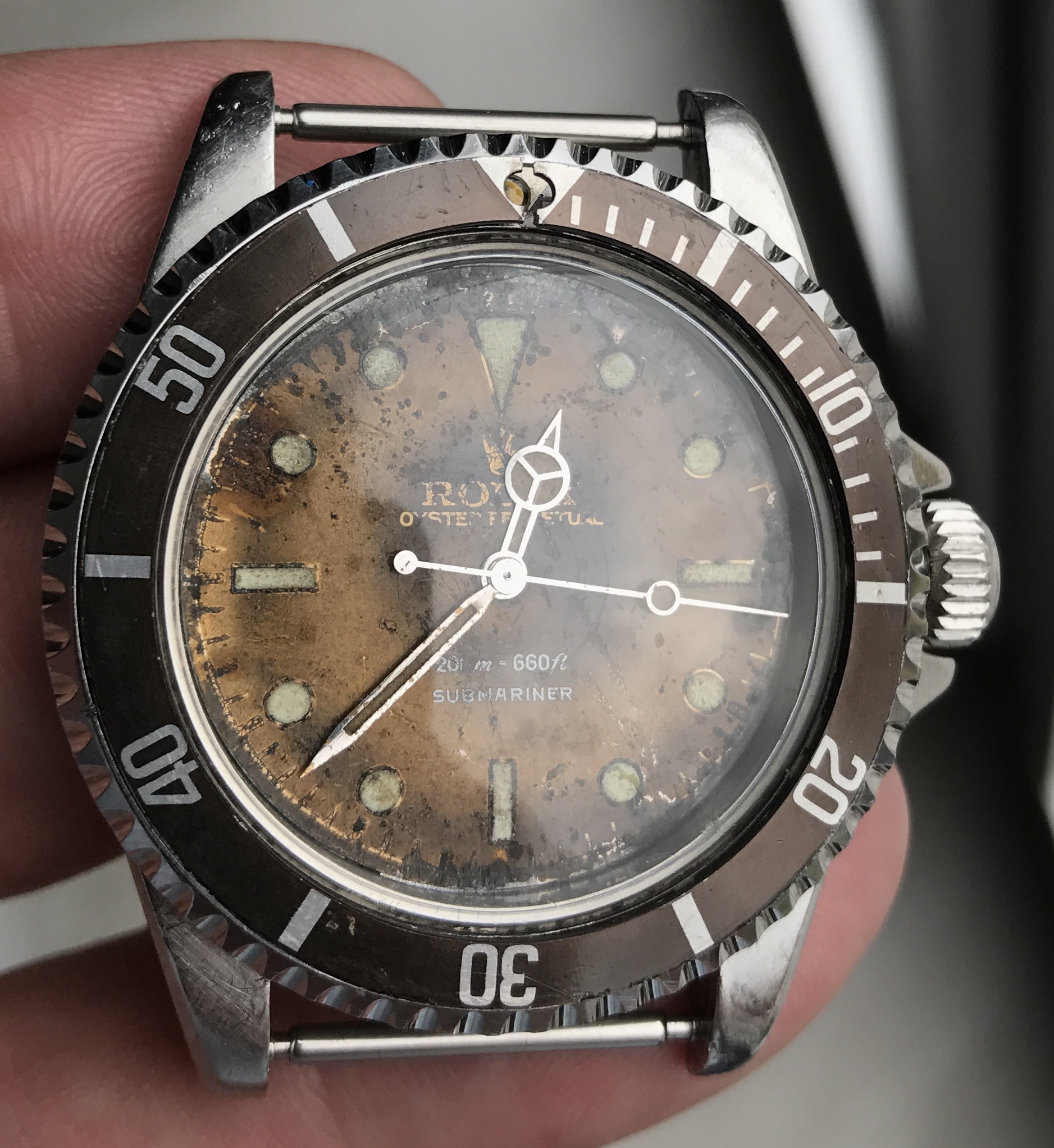 as I stated, its a flaw in the material used. There are know references from a specific period that are known to turn tropical. This is a true tropical dial. A one off dial that was abused is not a true tropical dial.