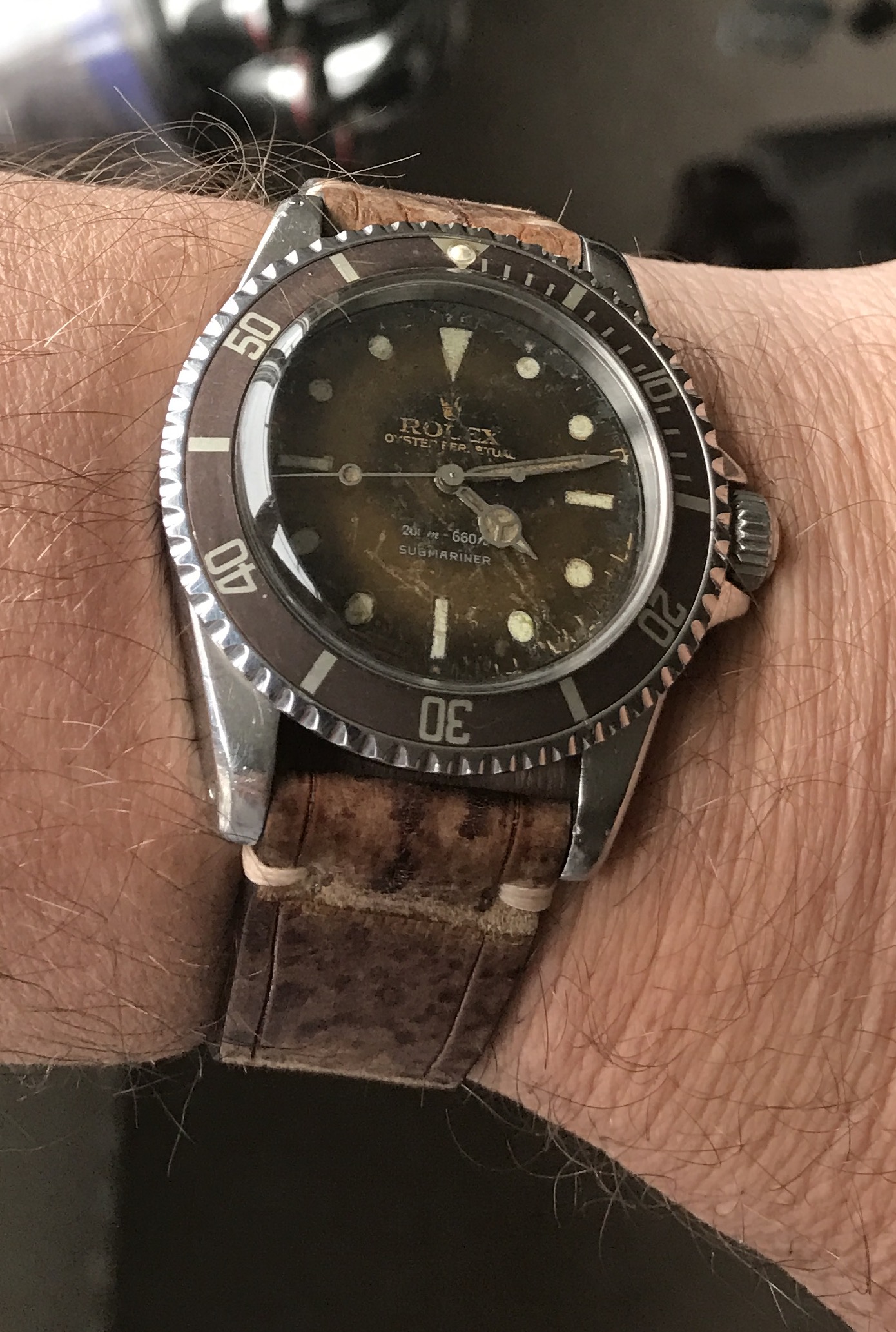 For example... red is an unstable color. Most older red cars have faded from sun exposure... and most of the fade is uneven. Different body panels look different. Yes some are flooded with water and have been damaged but realistically before any of this was hype we started to use the word tropical to describe both brown and beautiful dials AND damaged dials using the word tropical. It is a light hearted nickname... not meant to trick anyone or cheat them. I see thousands of watches a year... honestly the normal stuff is just normal to me... I enjoy the crackle, brown color, damage... more then I enjoy clean perfect pieces. It's just a matter of taste. And what makes this hobby and market fun is that we are all free to decide what we want to collect.
