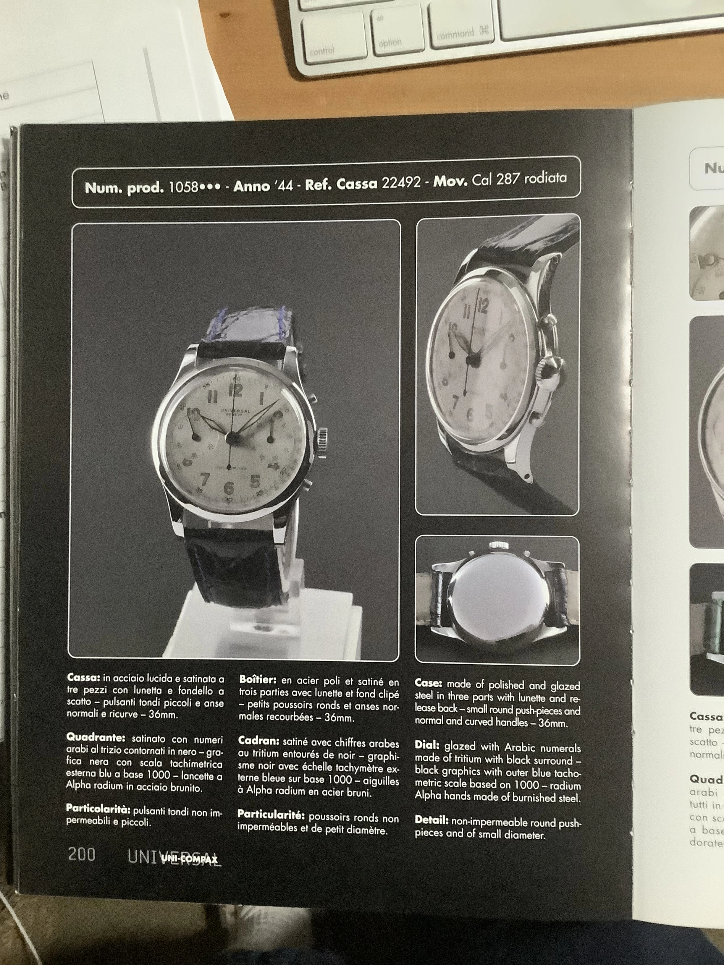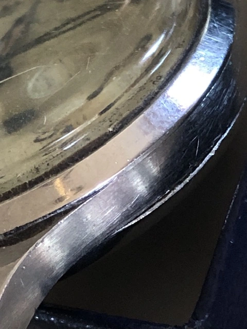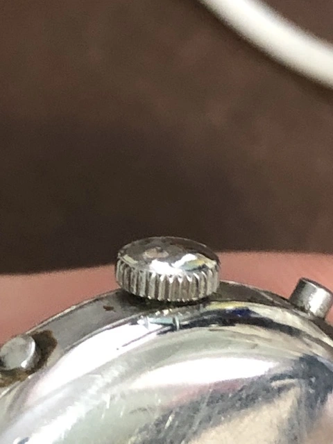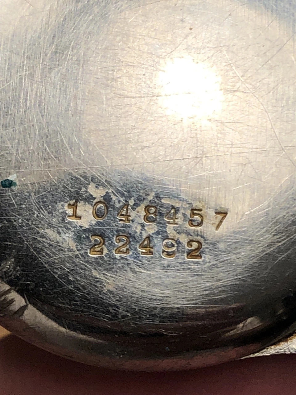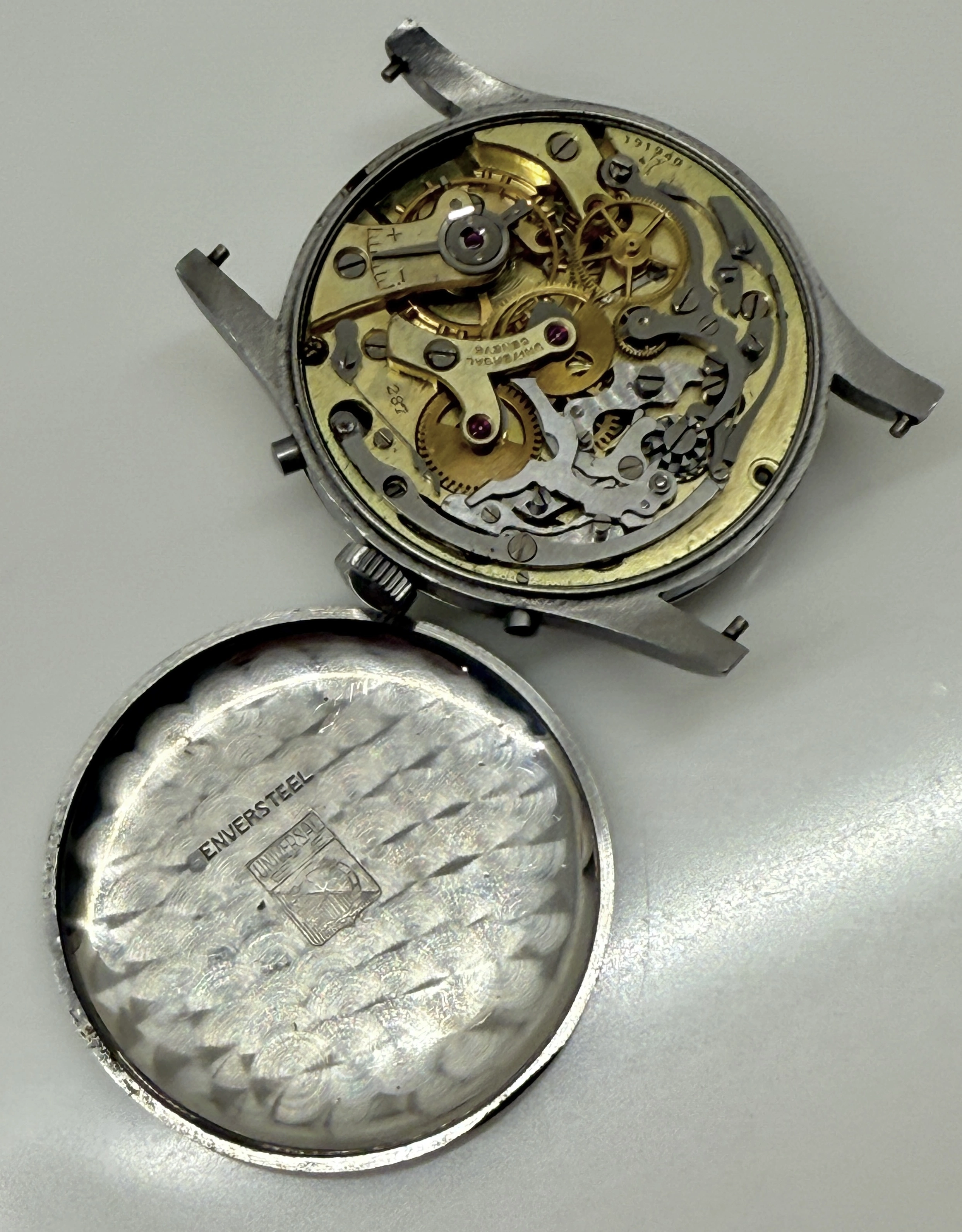 Patina is, let’s say intense, but still charming. Unfamiliar with if or how that might clean-up. Looks to have double stamped 45s and 15s which I’ve seen on a few faces, and debated a bit here. 36mm case. Maybe a 287cal? Tiny pushers on the case too.