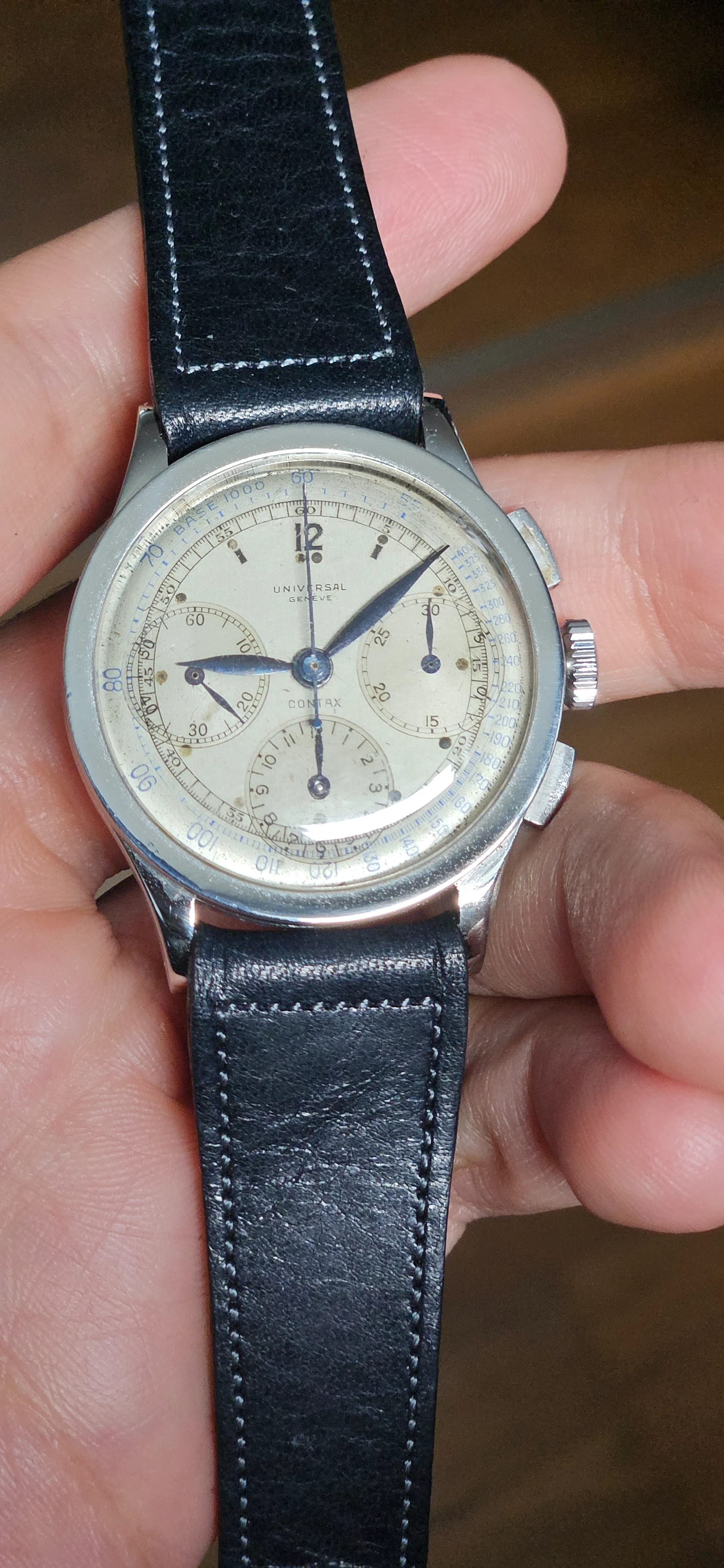In Sala there are a lot of watches dated before 1937, when the brand name “Universal Geneve” was registered, which have their dials marked “Universal Geneve” (e.g. pages 120, 123, 134, 140, 141, 142 - all Compurs, obviously), something that should theoretically be impossible, as such a brand name did not exist at that point in time...