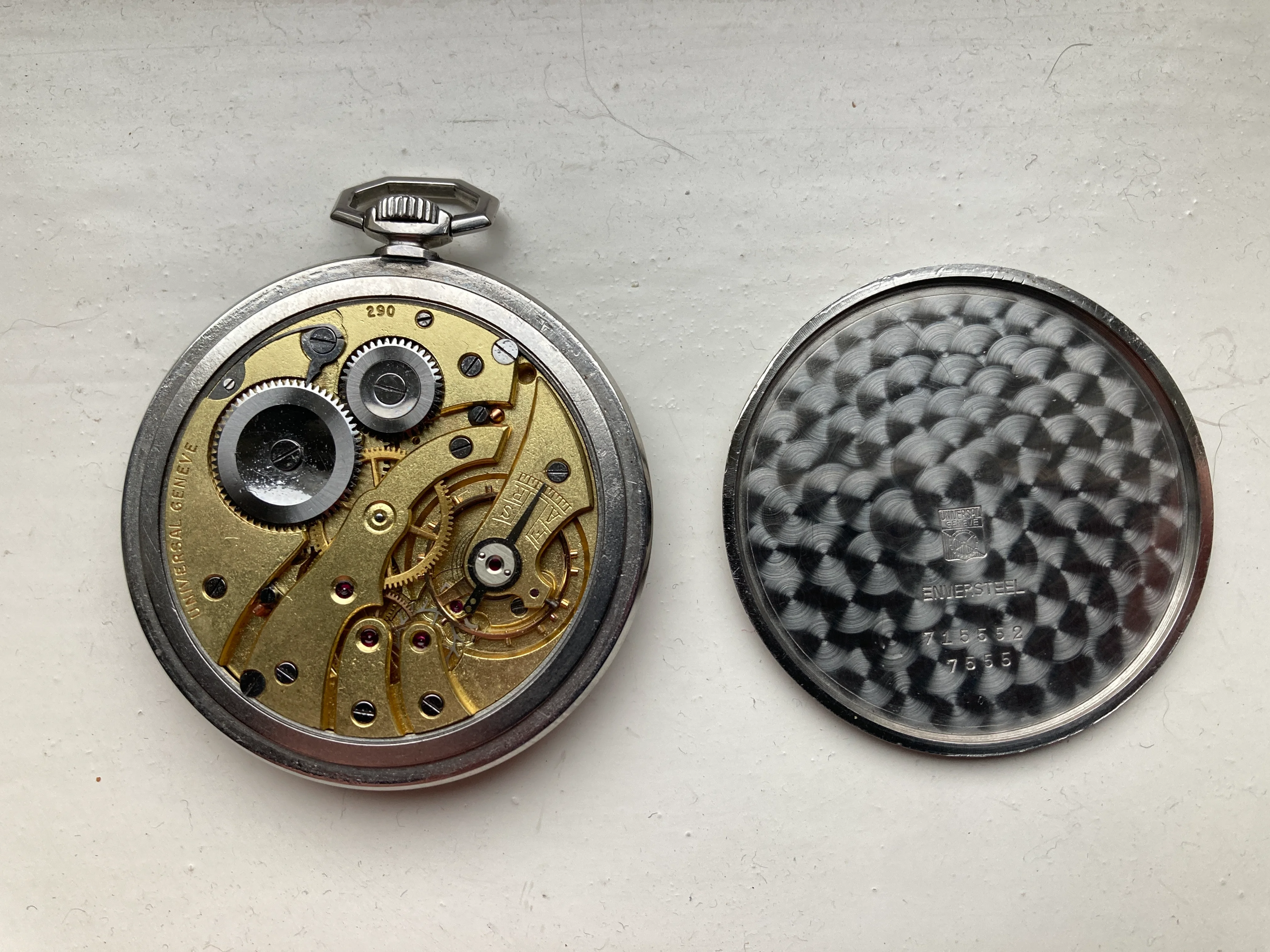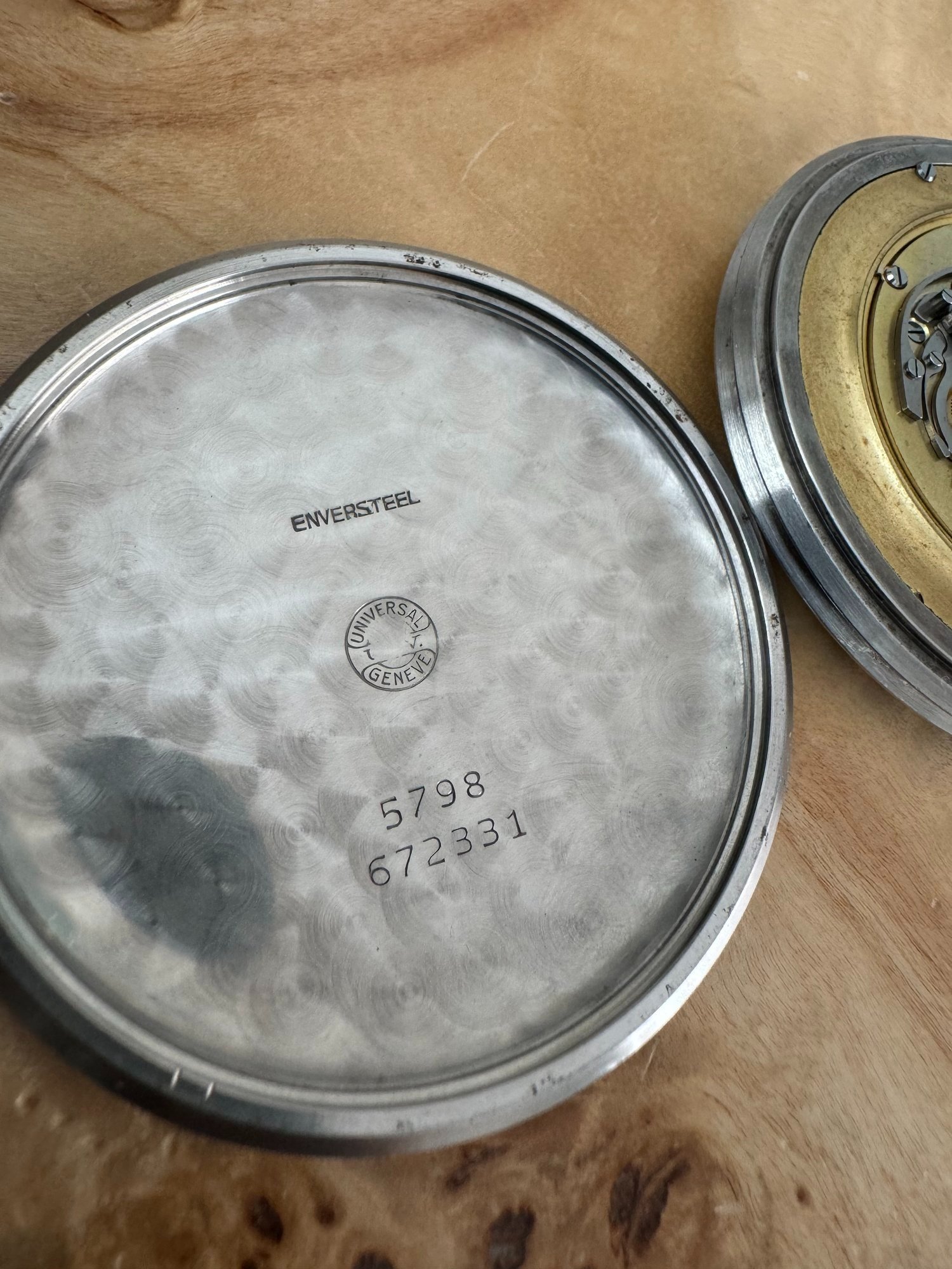 Wonderful 5798. On hold but asking was EUR 3.200 馃槻 https://www.cesareorologi.com/en/sc...798-Pocket-Watch-VINTAGE-RARE-EXTRA-LARGE-425 & https://www.chrono24.nl/universalge...8-rare-anni-40-50-extra-large--id32843552.htm