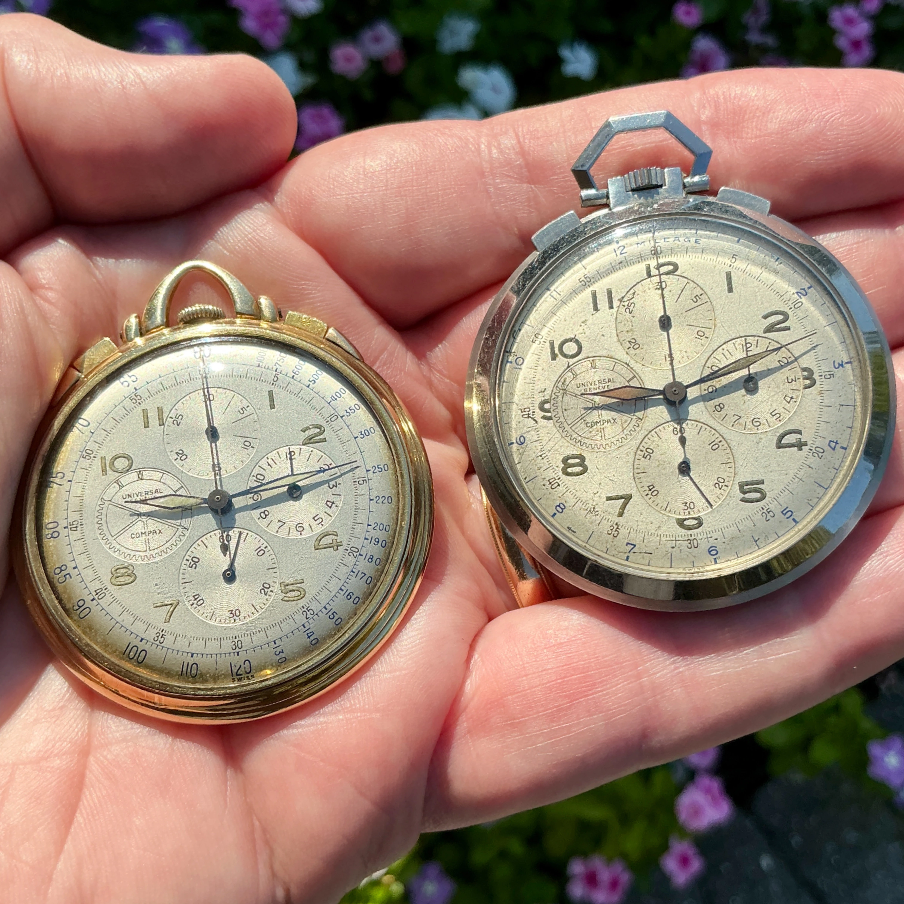 USD 8750 for this nice one. Unfortunately no numbers https://www.analogshift.com/products/universal-geneve-compax-pocket-watch-asm0517