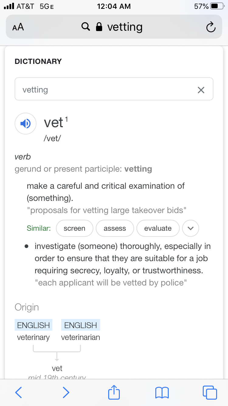 « vetting » however implies IMO a much more stringent standard which means issues should be disclosed.