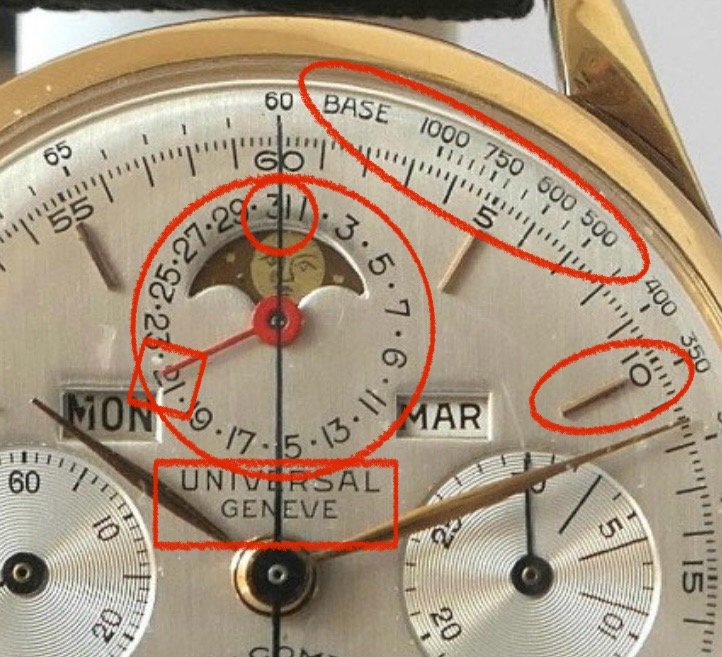 I’ve done my homework’s. Here are the details telling me that perhaps this dial is older ou service : black not blue tachymètre, 31 black not red, no circle around subdate dial, subdate dial not centered (21 goes over date guichet), minute circle not centered (10 non in front of the marker)