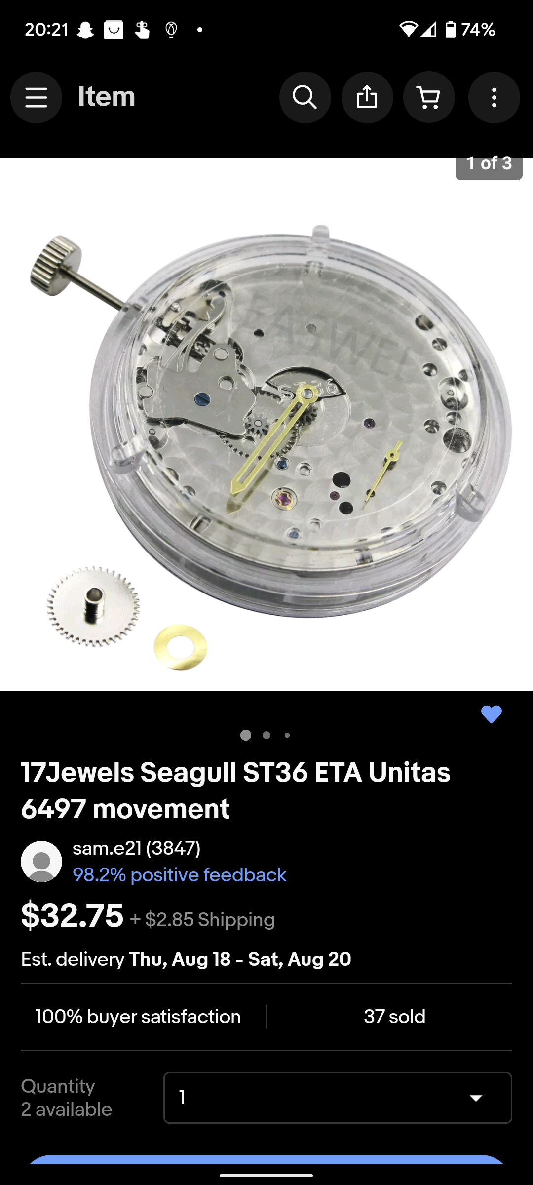 This movement does not seem to have come up in my searches, But for 60 it is not worth it. Especially when the parts sellers are breaking up sealed spare parts packages and selling each screw individually.