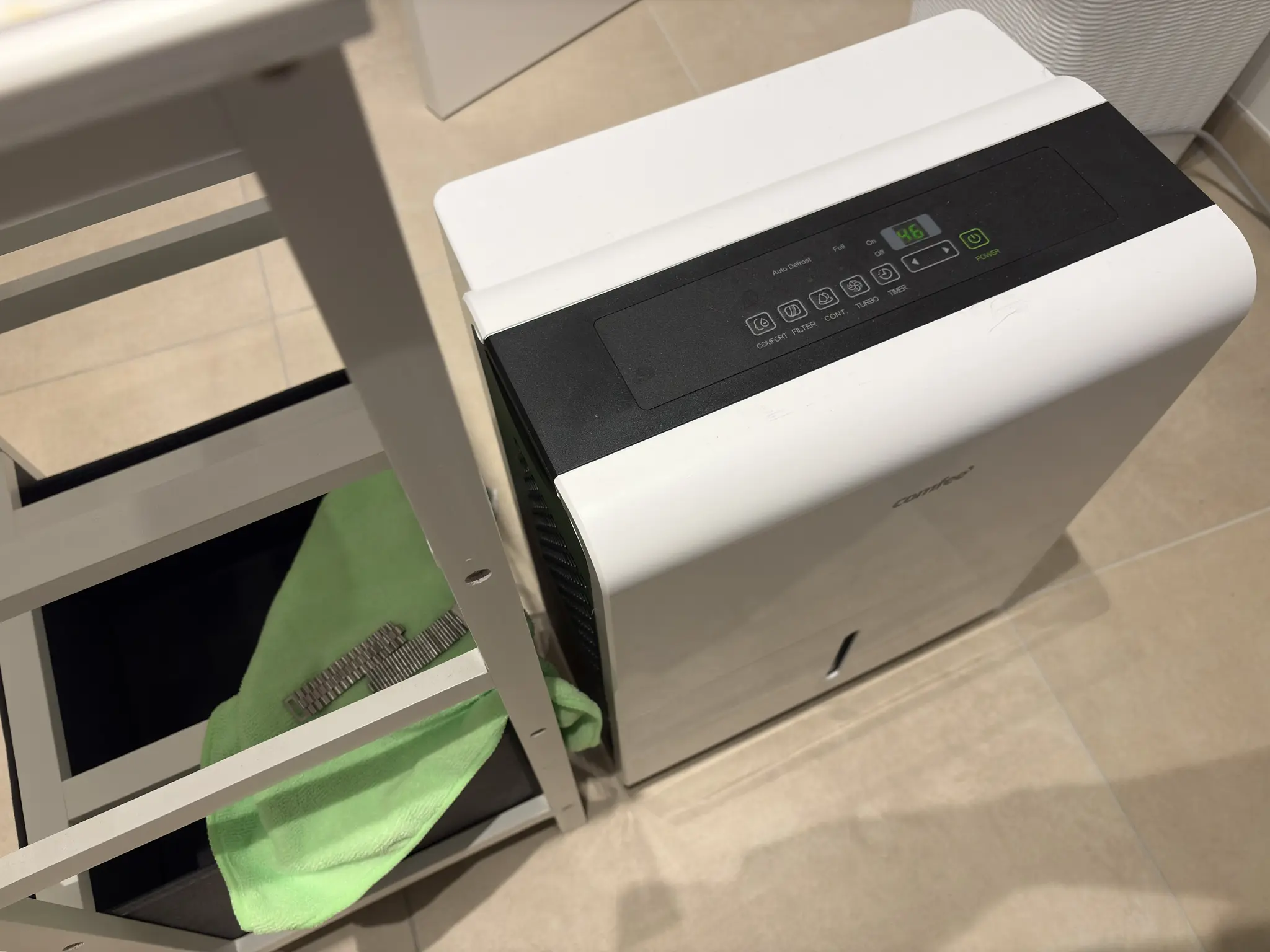 We have an air dryer that I run in a bathroom (small space) with its exhaust pointed towards the bracelet (the air outputted is both warm and dry). And wipe them with a cloth before placing there.