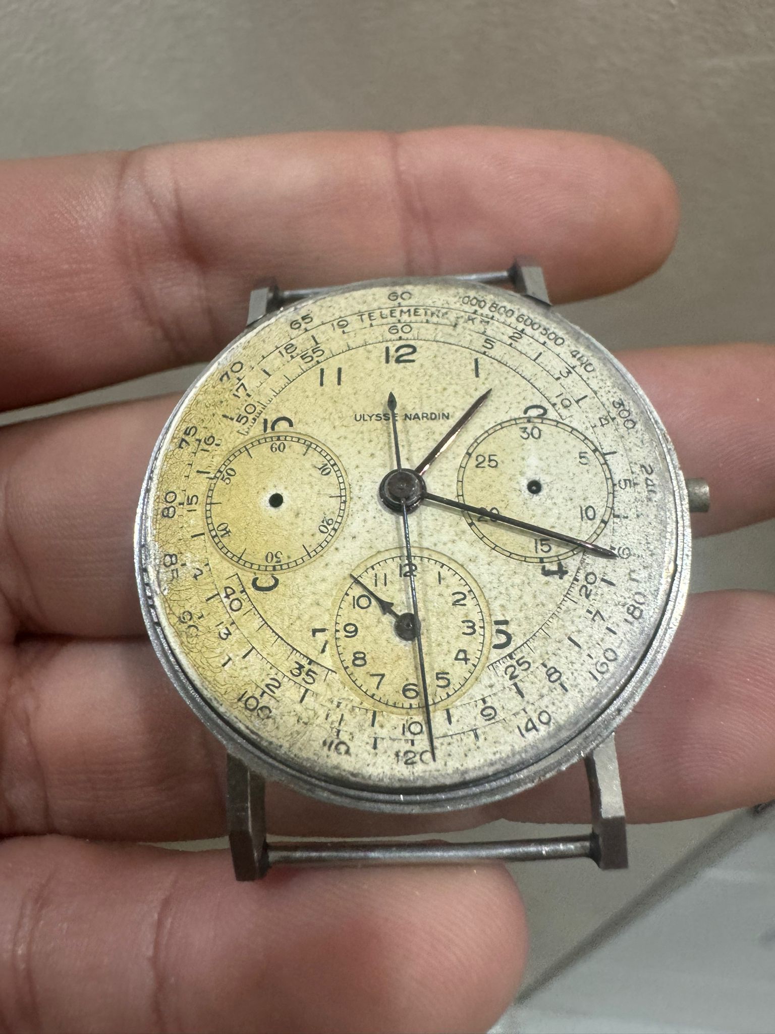 A mate of mine found this in a house clearance and asked what I think. I have zero knowledge of this brand or chronographs (so wasn’t sure if the serial on caseback should match the movement for example) but my gut said it is a redial. Anyone have any clue about this watch?