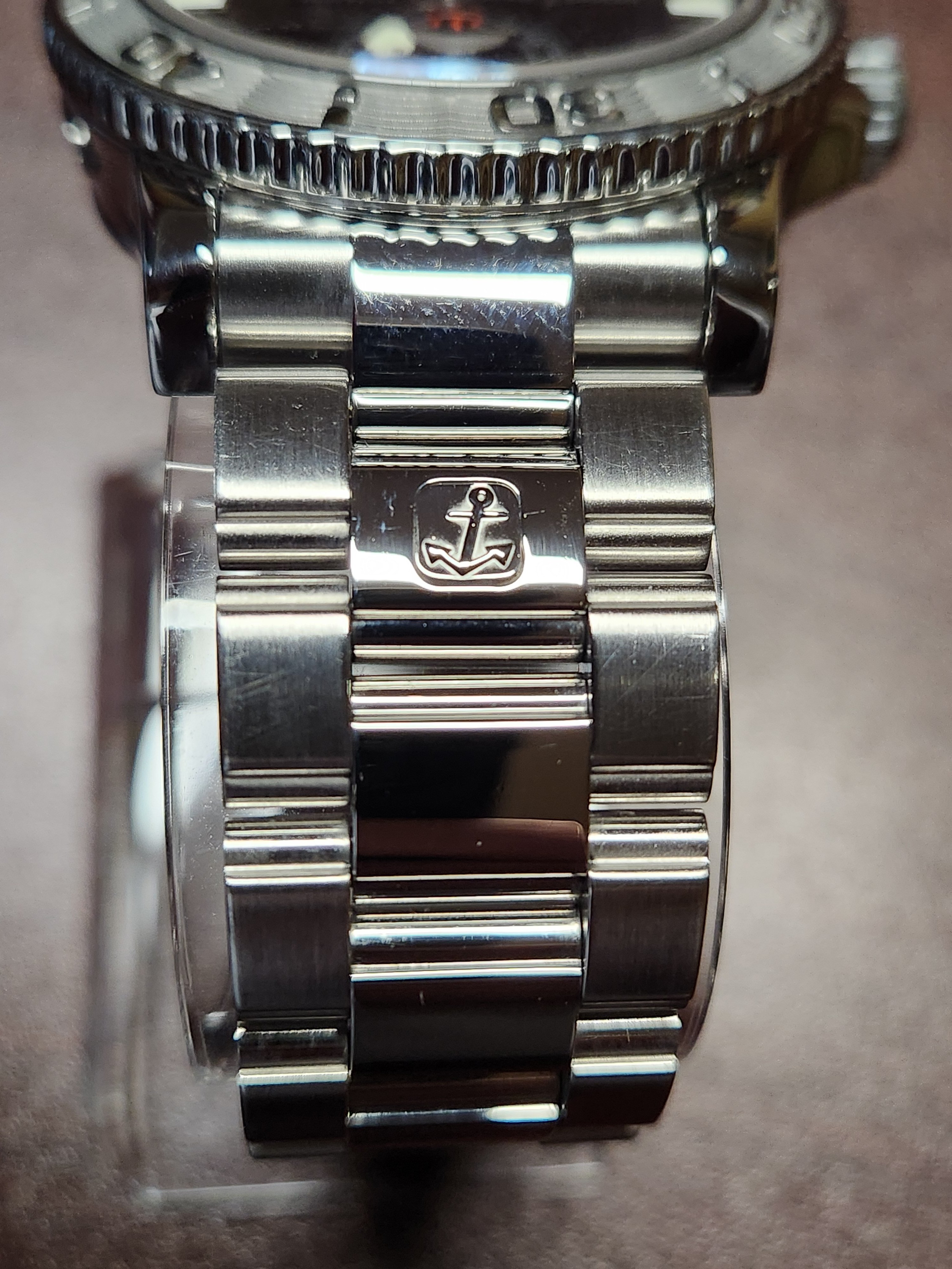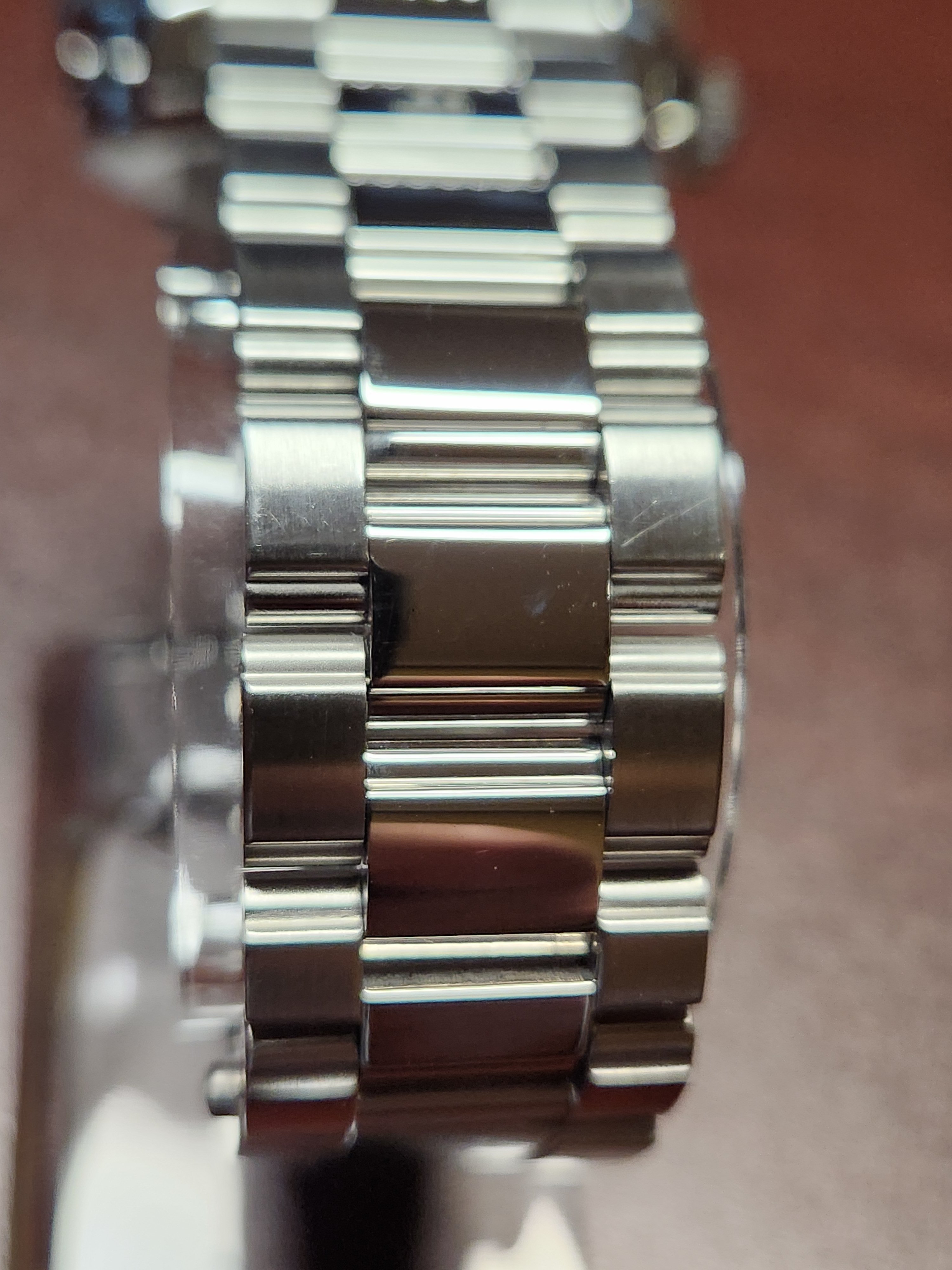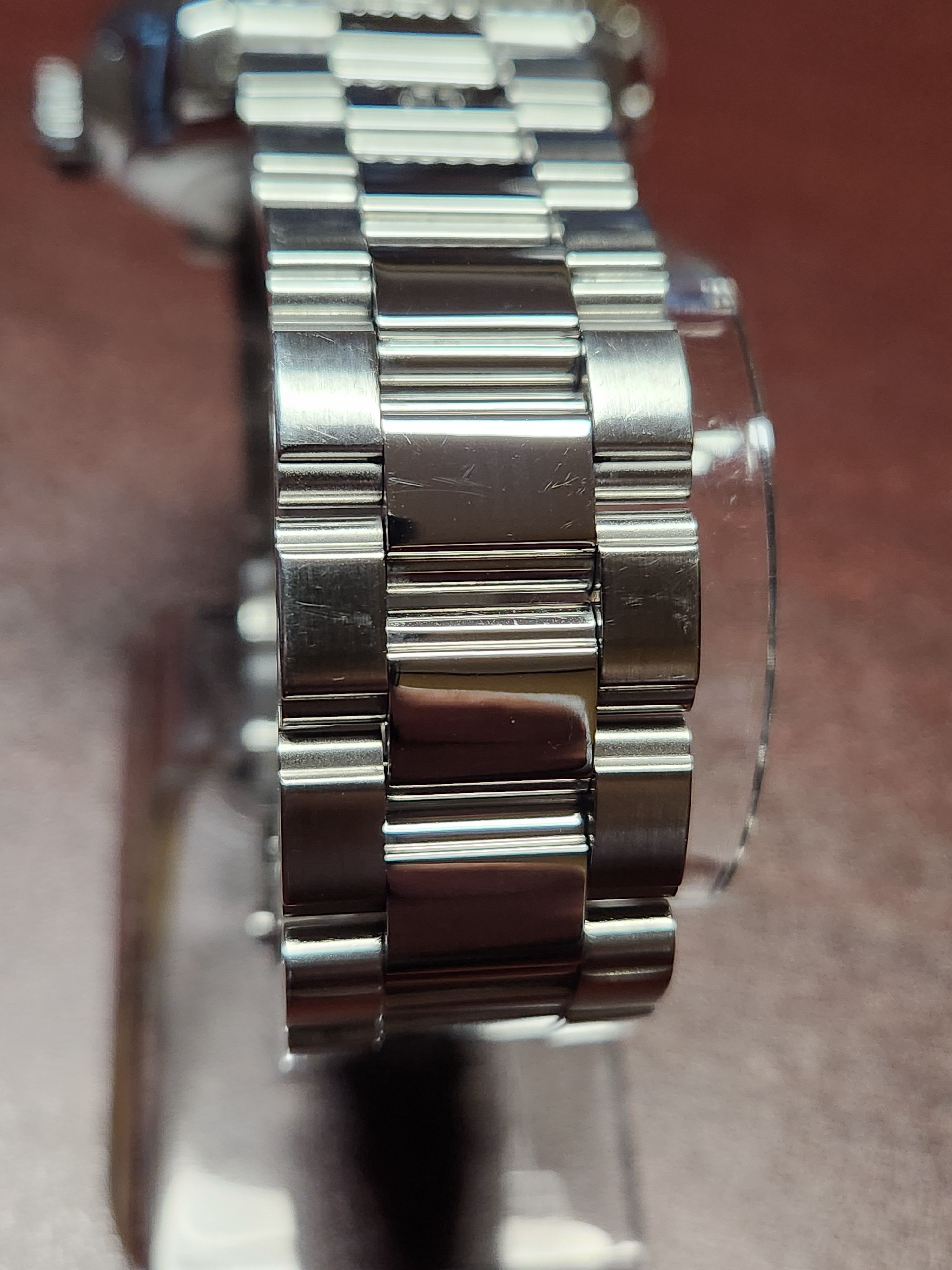 Watch runs perfectly and within specifications. It comes on the metal bracelet (which is very rare to find) and comfortably fits on an 8.6 inch wrist. (I had to source extra links which took weeks to receive them from UN). It is in great overall condition, however it does have wear marks here and there. I have tried to take detailed pictures to show its condition. Please keep in mind that the close-up pictures greatly exaggerate the blemishes, and many of what appear to be lighter scratches are merely smudges, at it is nearly impossible to keep the highly polished surfaces smudge-free when handling it.