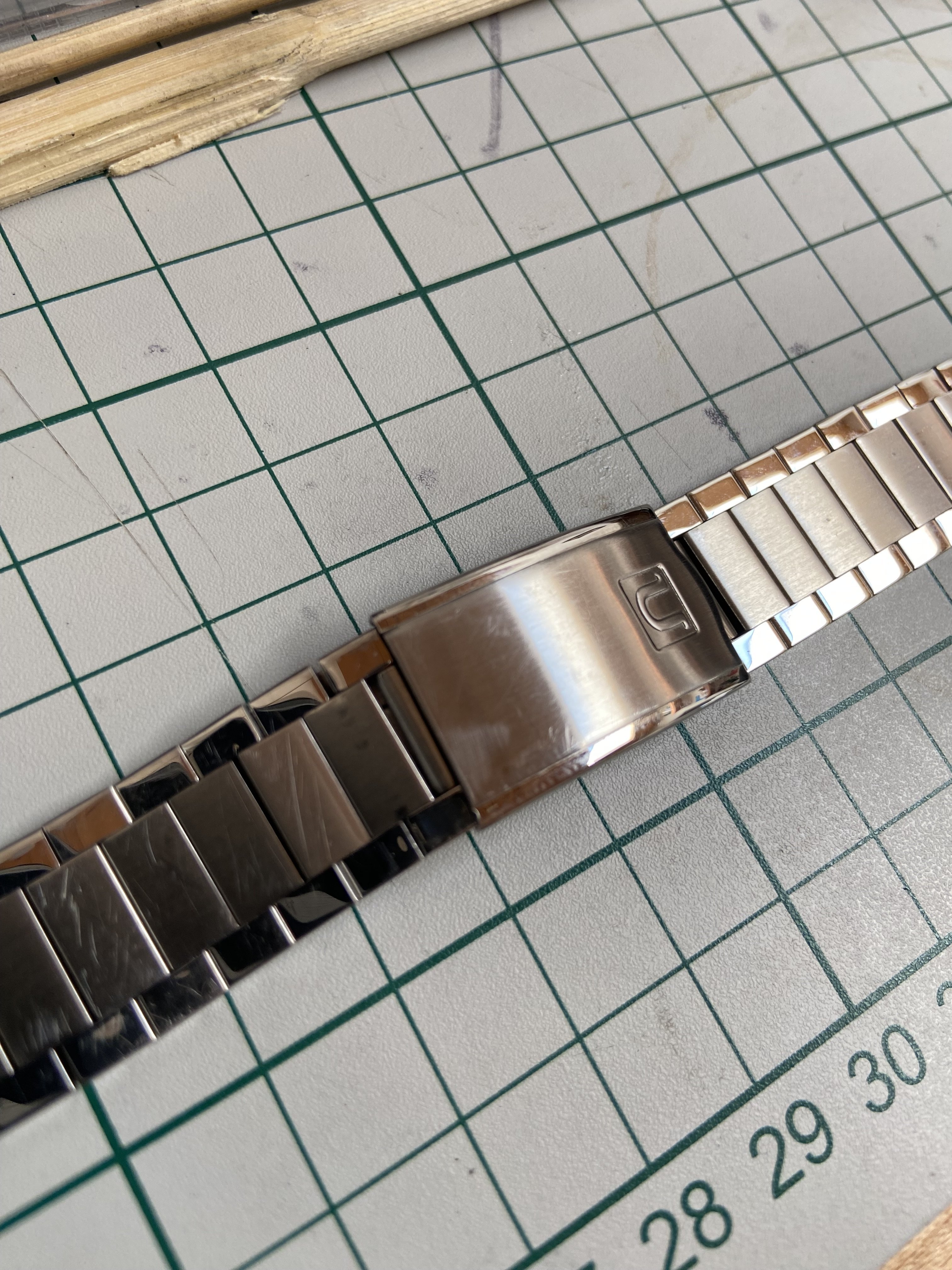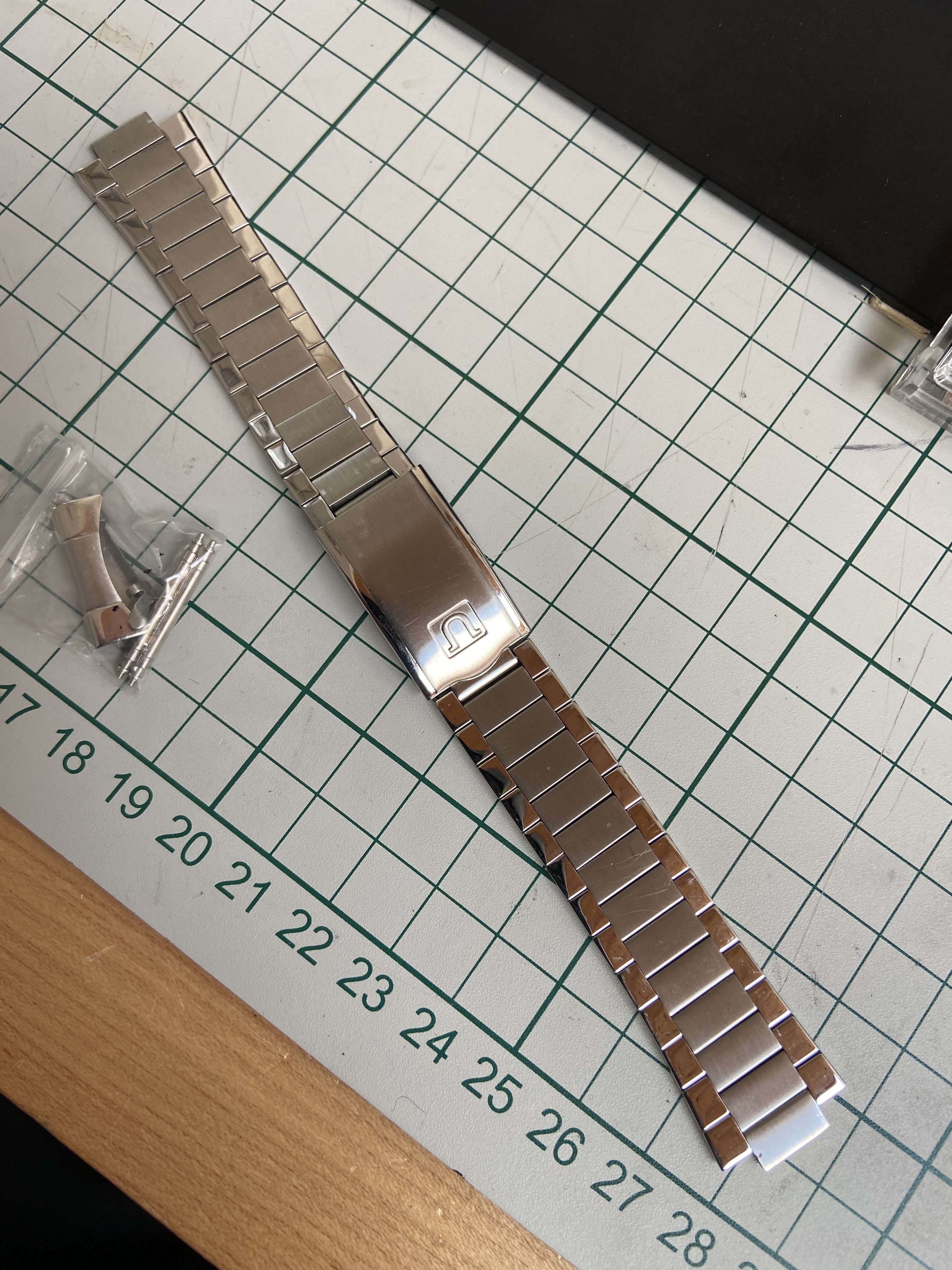 Have a used US 1035 for sale. This is the brushed/polished flat link with hollow 20mm endlinks designed for Speedmasters. This one is in very good condition, shows minor wear on the clasp and a couple of links. It is full length, has all extra links, both endlinks, and the spring bars.