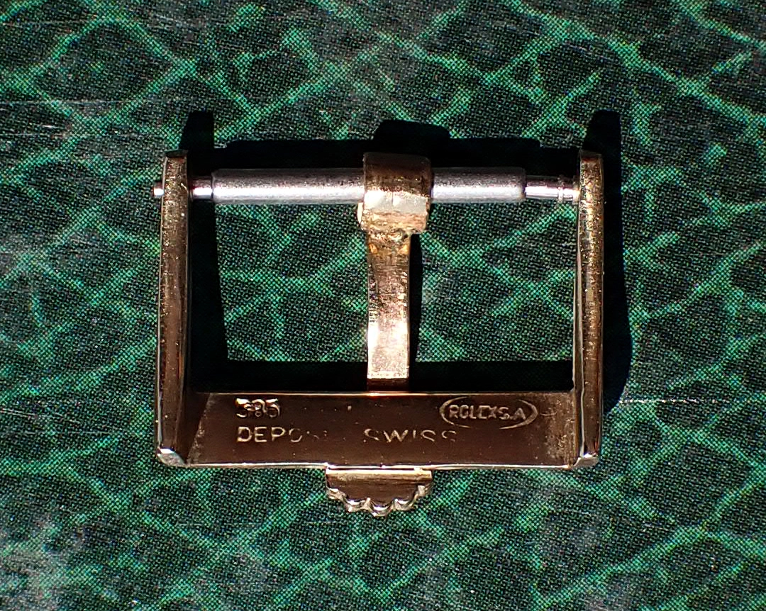 On offer here is a genuine vintage Swiss-made Rolex Buckle in uncommon 14 karat Yellow Gold and 16mm width. This was likely made for the American market and the buckle also has a “Depose” marking contained within the rear nomenclature, which indicates that the design was still proprietary to Rolex when this buckle was manufactured. I would guess based on these interesting characteristics that this buckle dates to the 1950s, maybe early 1960s. Rare in 14k, this buckle is suitable for a variety of classic Rolex models in gold from that era and after, particularly those containing 14k components, such as Datejusts, GMTs and, dare I say it, your “John Player” Daytona chronographs.