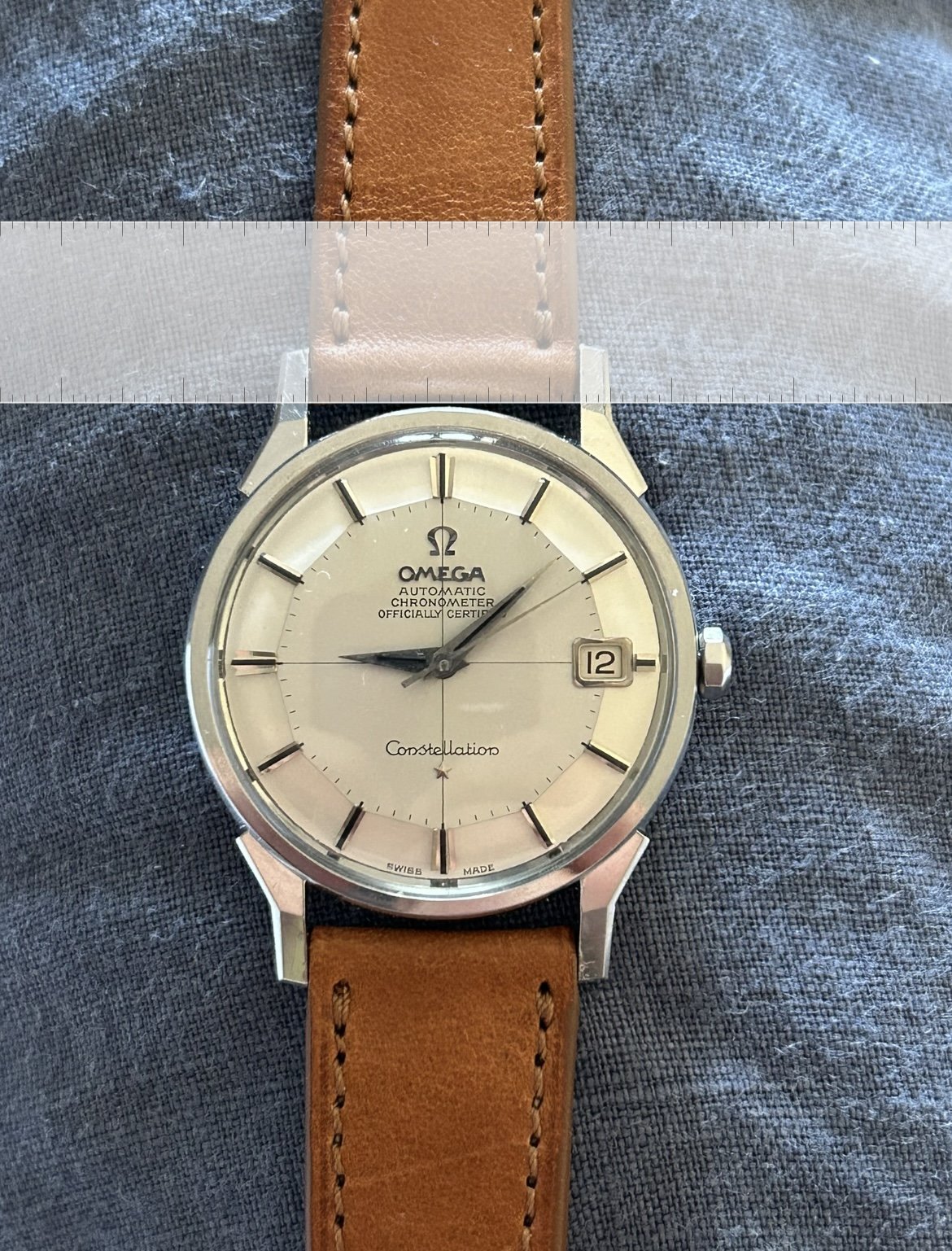 I’ve just become the proud owner of a 168.005 with a crosshair in wonderful condition, and which I’ve been looking for for a while. Naturally upon receiving it I’ve spent time wearing it, and couldn’t help but notice a small difference in the polishing on the top left and right lugs; the bevel on the left one seems to be closer to the body of the watch than the right. It’s not massive, but it’s an interesting difference, and it lends the question; how were these cases made originally? This is an SGR case. I had thought they were cast, but perhaps they had some hand finishing? Have you seen this before? Two photos, one with superimposed ruler and one without.