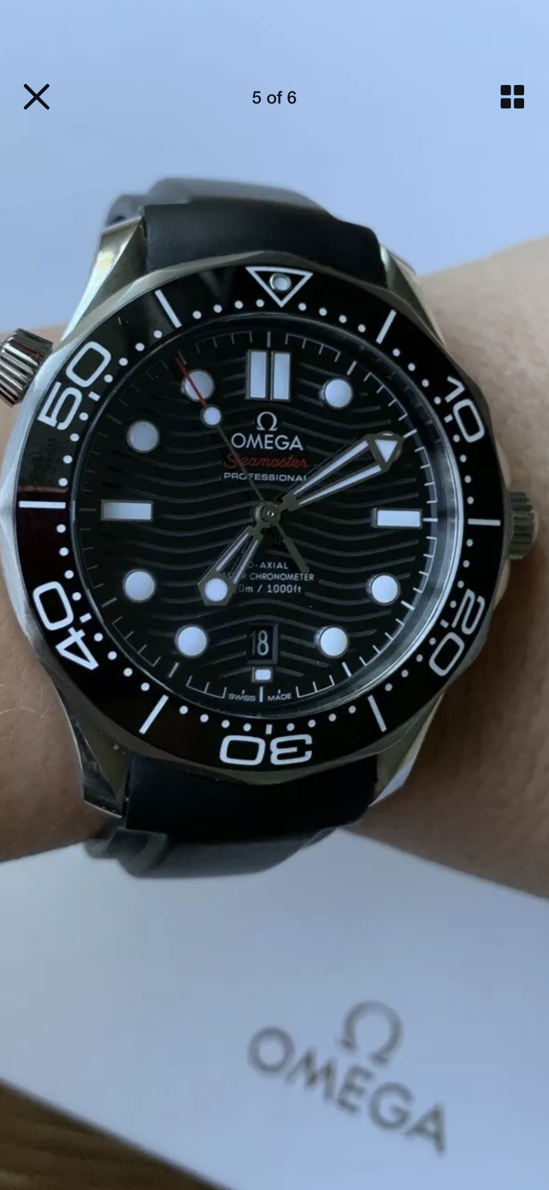 Greetings from Texas! I am starting to collect omega and I came across this watch for sale. The Buckle is an 025CTZ005003 omega black steel clasp. The rubber strap is a 980003 and it is attached to the 20mm lug to lug Omega 300 42mm but I can’t find any of that strap aside from the rubber strap of an omega PO with stitching inside and outside. Notice the outside of the strap does not have any stitching. Any idea if it is a new version of a strap or a AD specific item? The owner said that when he bought the watch the strap and the buckle is in lieu of the generic rubber, buckle and tang of the omega 300.