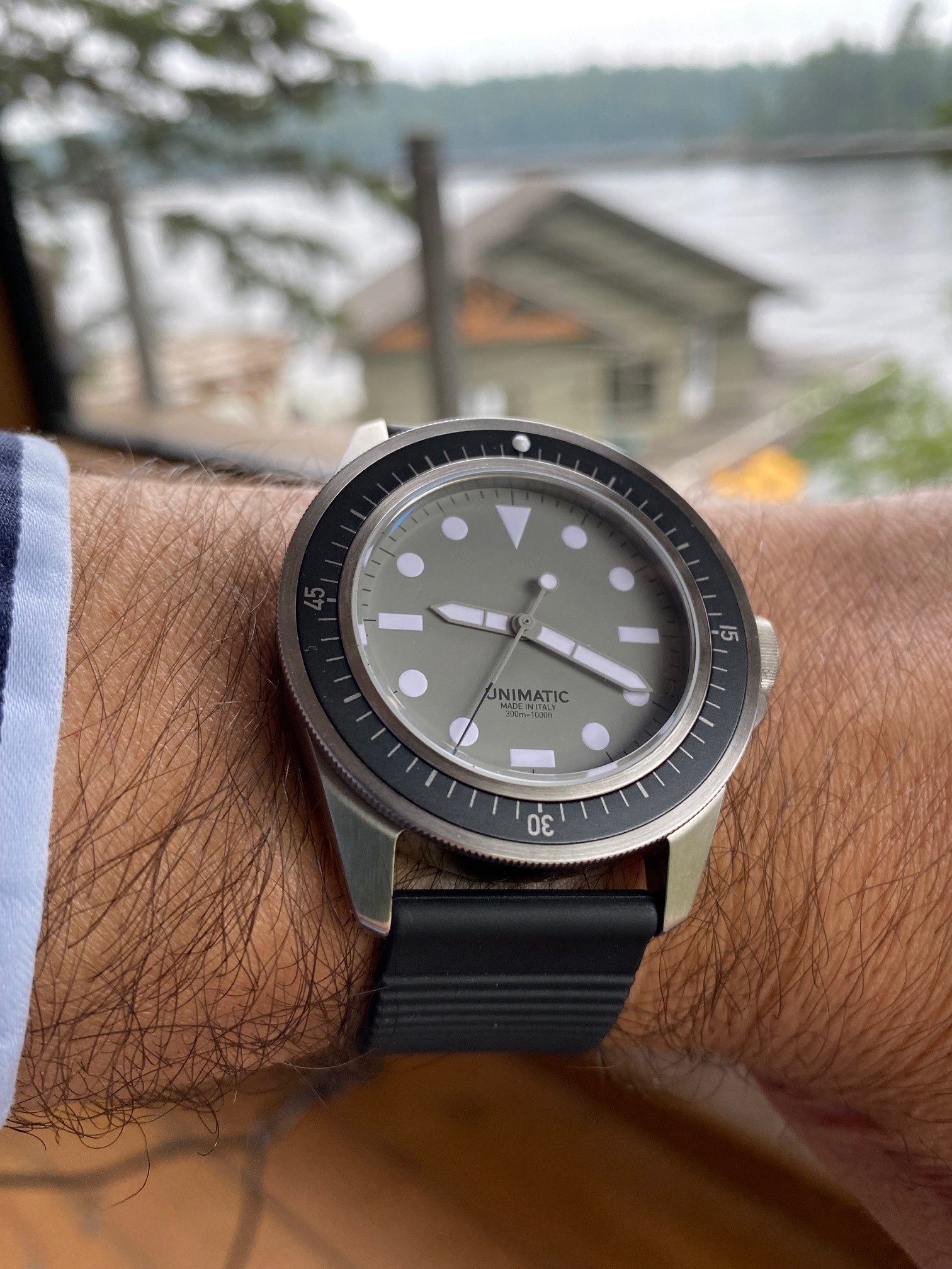 ·I wasn't necessarily looking for a new acquisition, but I've admired the minimalist aesthetic of Unimatic's releases in the past and so I purchased the U1-H dive watch model from their recent collaboration with Hodinkee. The Hodinkee version has significantly thinned the case from 13.6mm to 11.25mm - thinner sport watches always appeal to me and I like the idea of a watch that is more under the radar than others in my collection to wear when I travel to certain destinations.