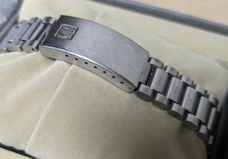 The logo is from the 1980s; the lack of a serial number on the lug, TACHYMETRE with no È, and dot next to 70 makes me think this is an early 1980s 145.022, too early to be a 3590.50. I can’t figure out what the bracelet is. It’s being offered at about US$2700, fully serviced. I’m wondering what I’m overlooking to think this is a fairly attractive buy. Where have I gone wrong (in my life)?
