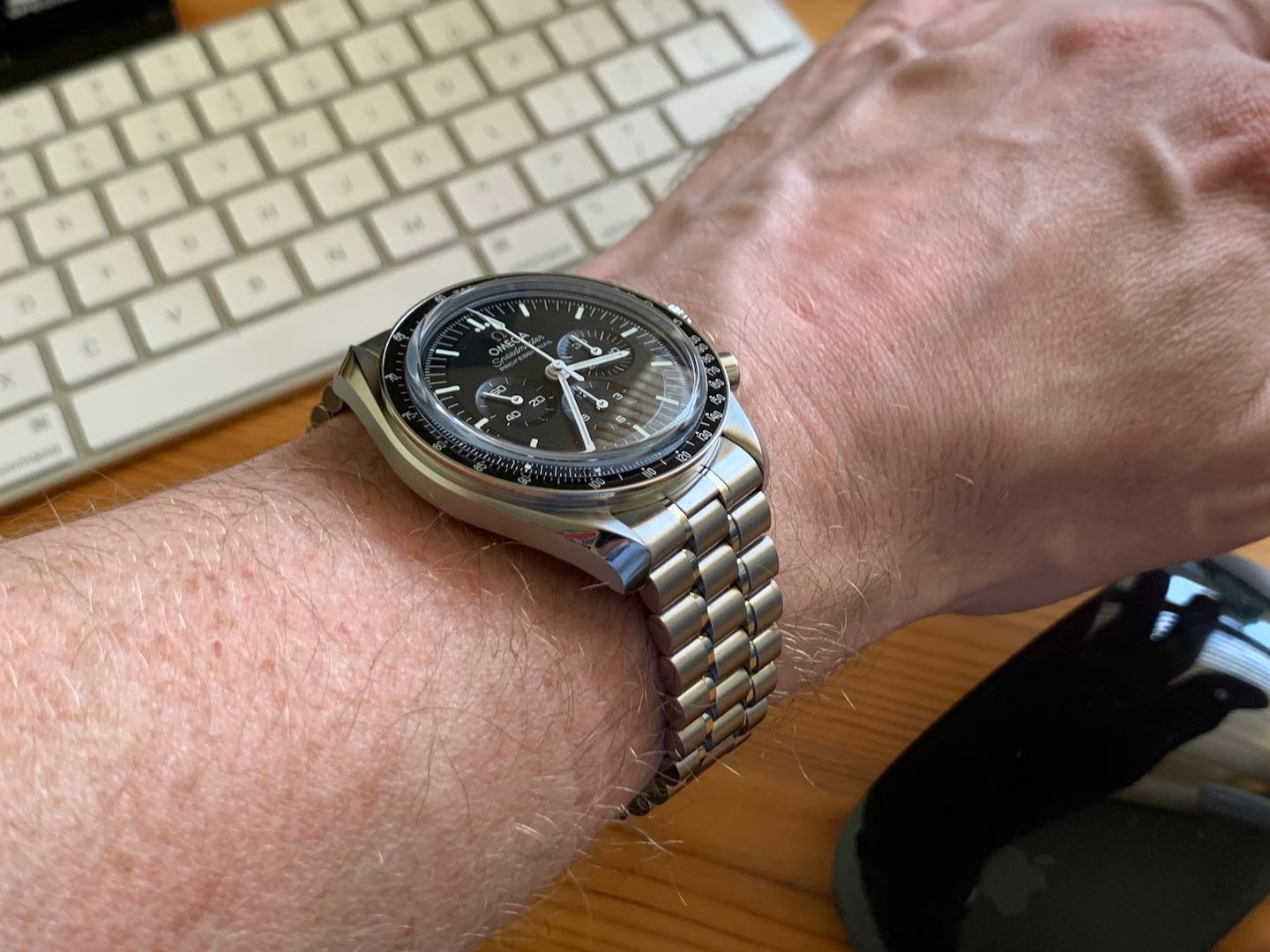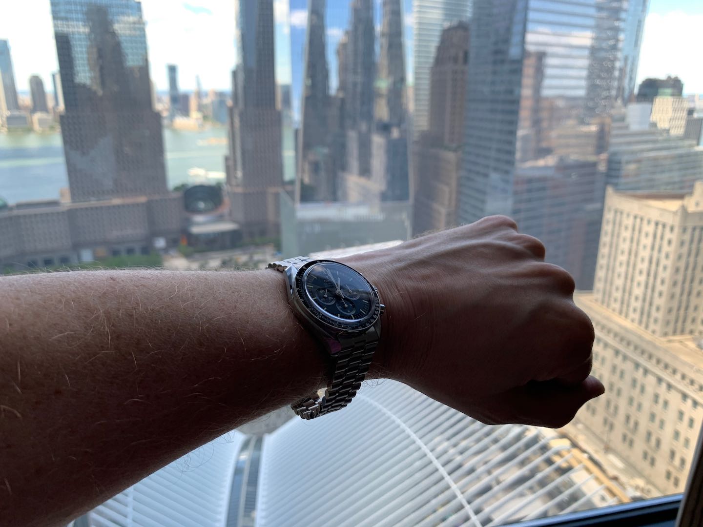 I'm a Brit living in London, later this month I'm heading to NY for a 1 week business trip. I'm thinking it might be a good opportunity to pick up a watch. I like the idea of getting a modern Speedy Pro Co-axial Saphire the 310.30.42.50.01.002.
