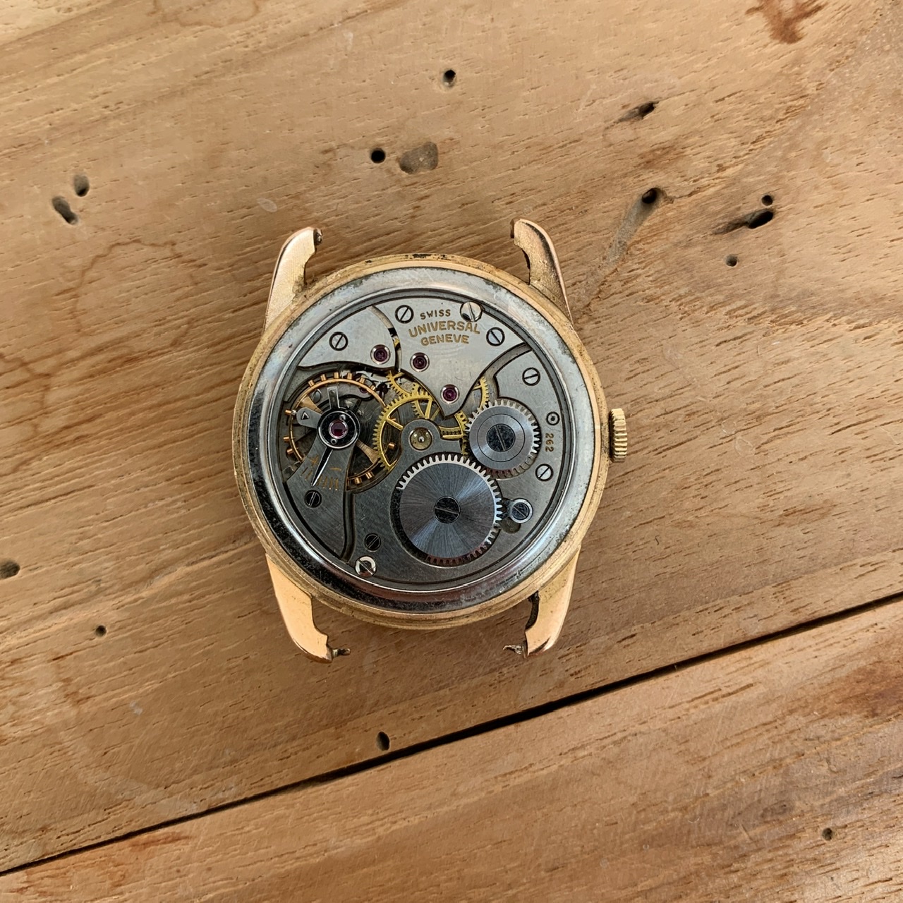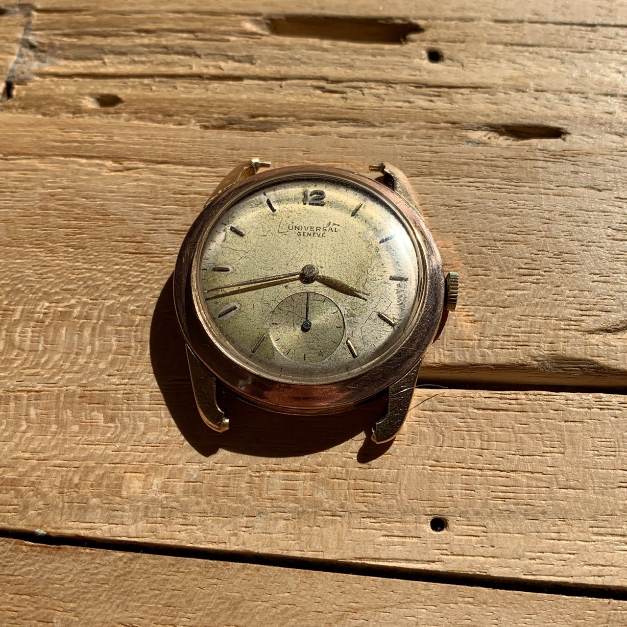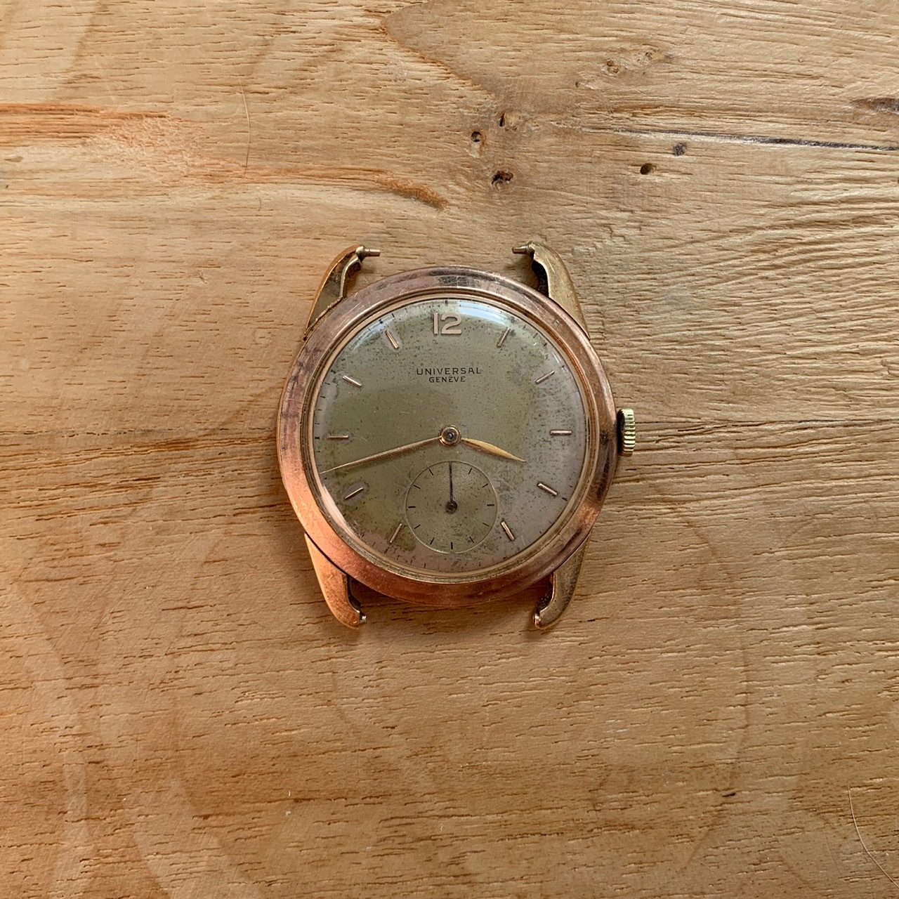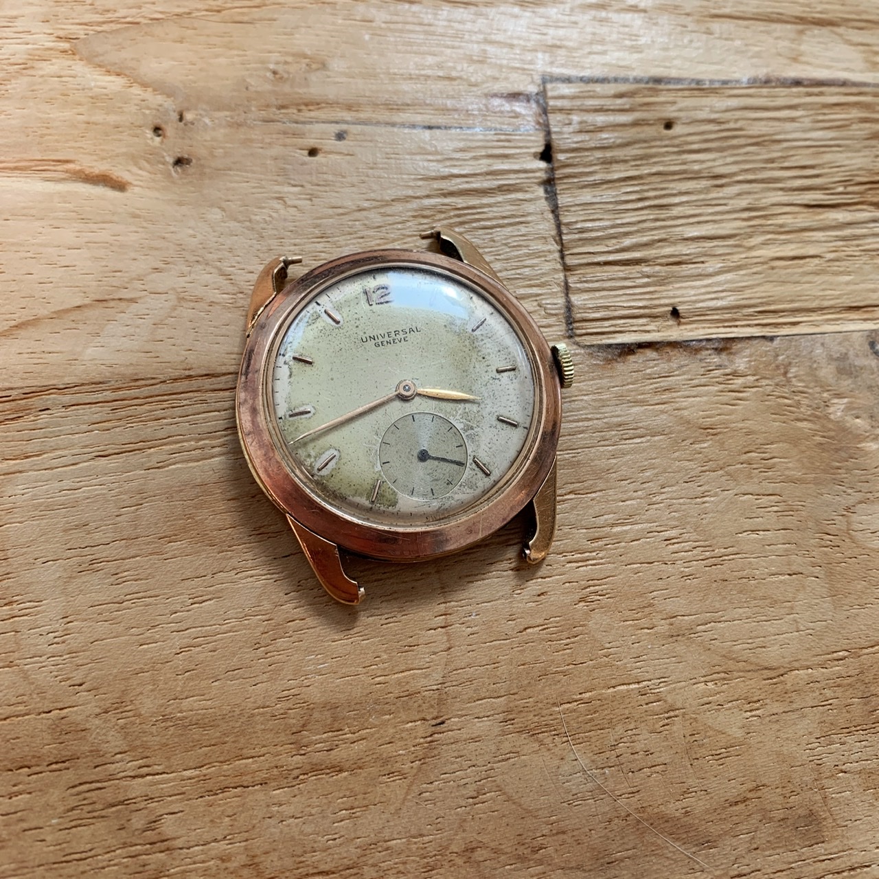 for sale is Universal Genève reference 112124 18kt rose gold watch. It was rescued from the melting pot as I thought it would be a shame to destroy it.