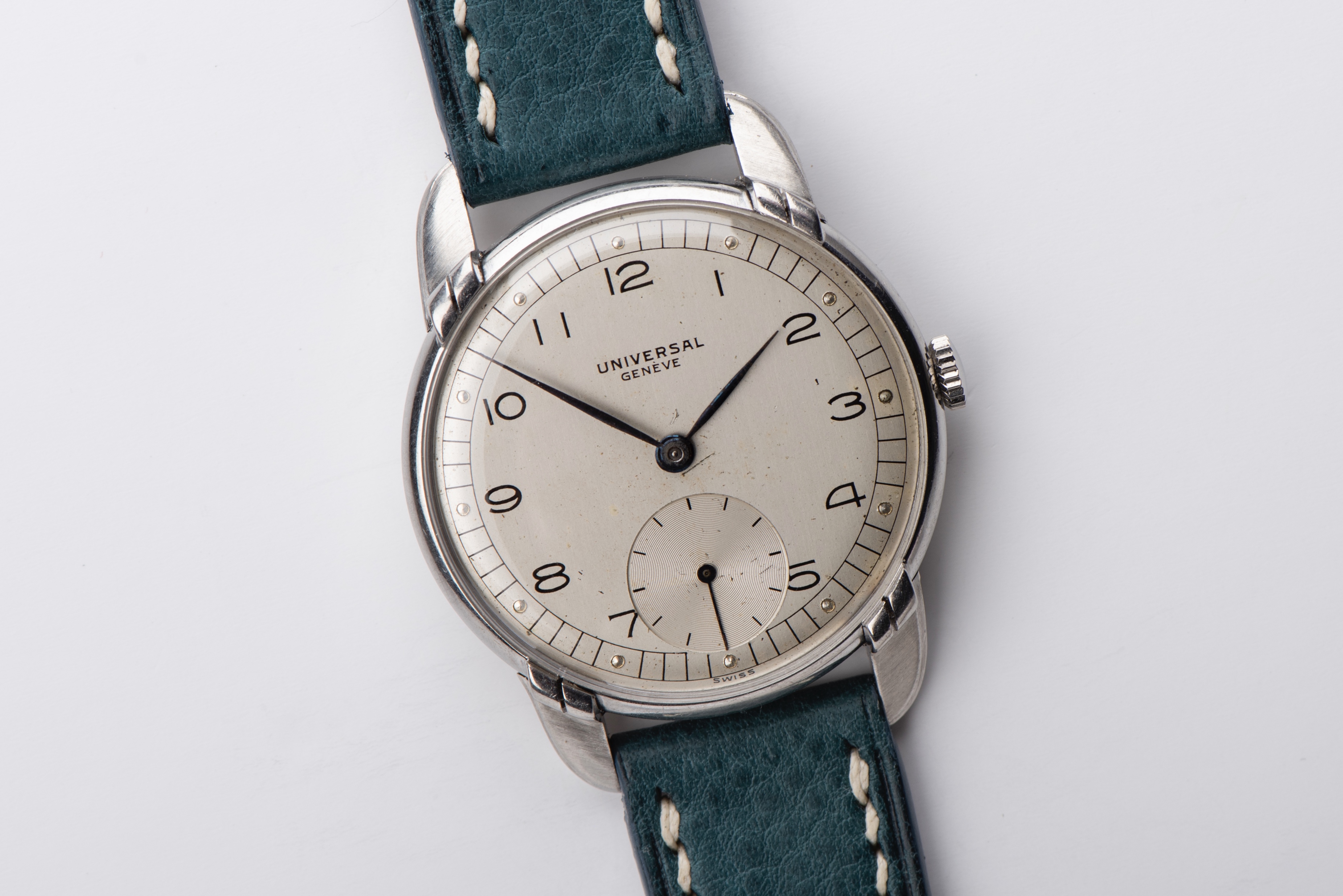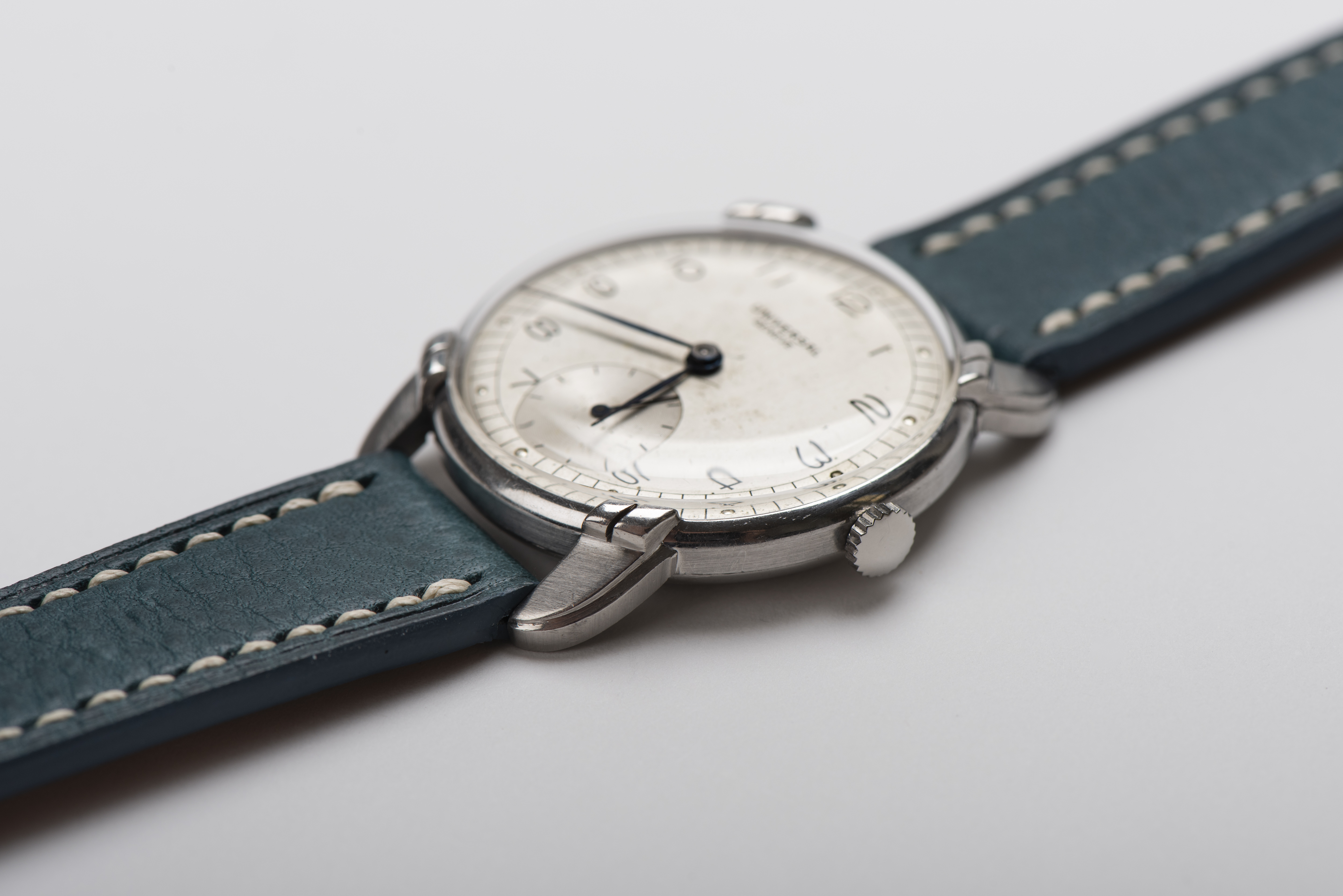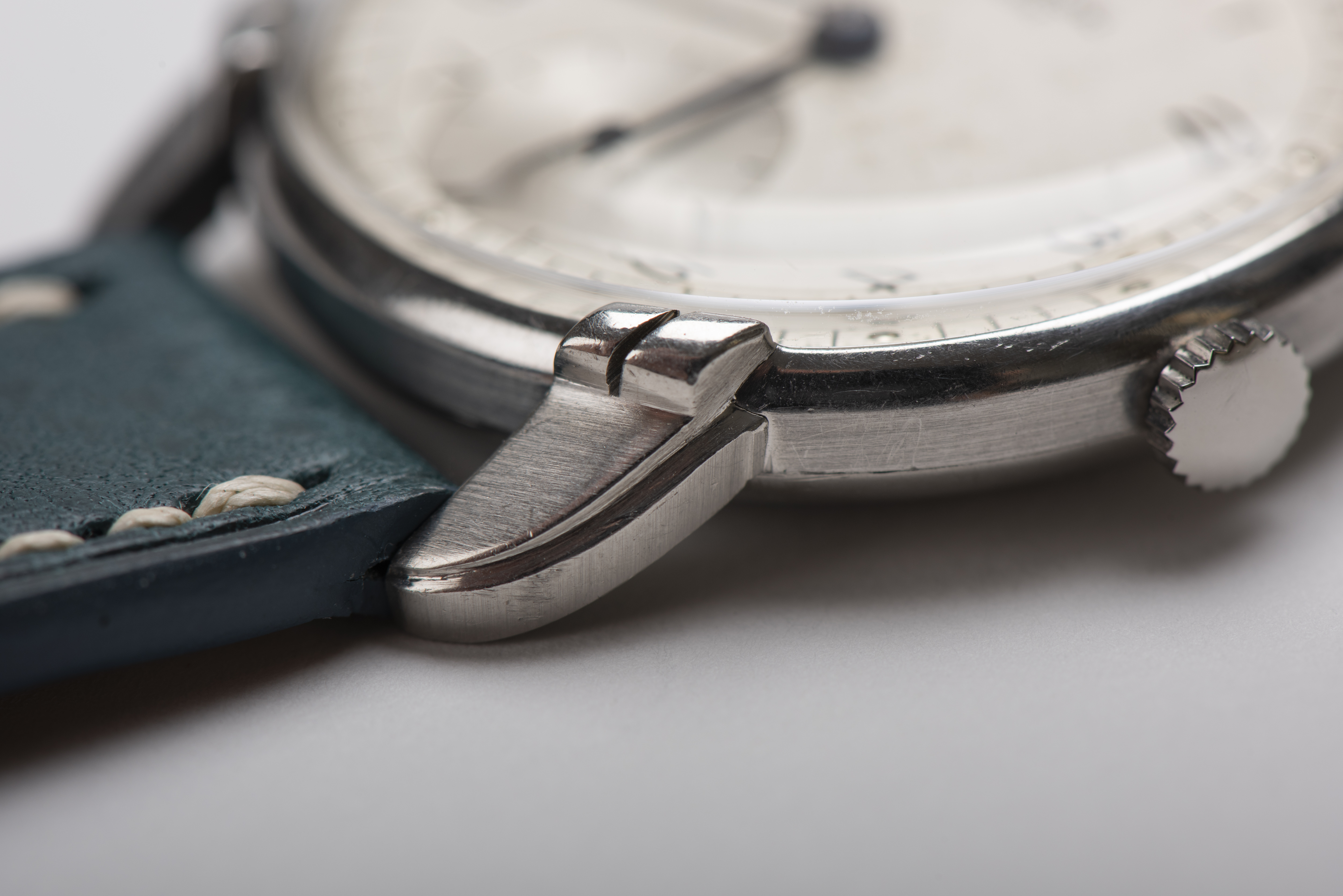 Case: 32.5mm stainless steel case. Intricate and extremely unusual lugs. 16mm lug width. Case reference and serial numbers engraved to case back.