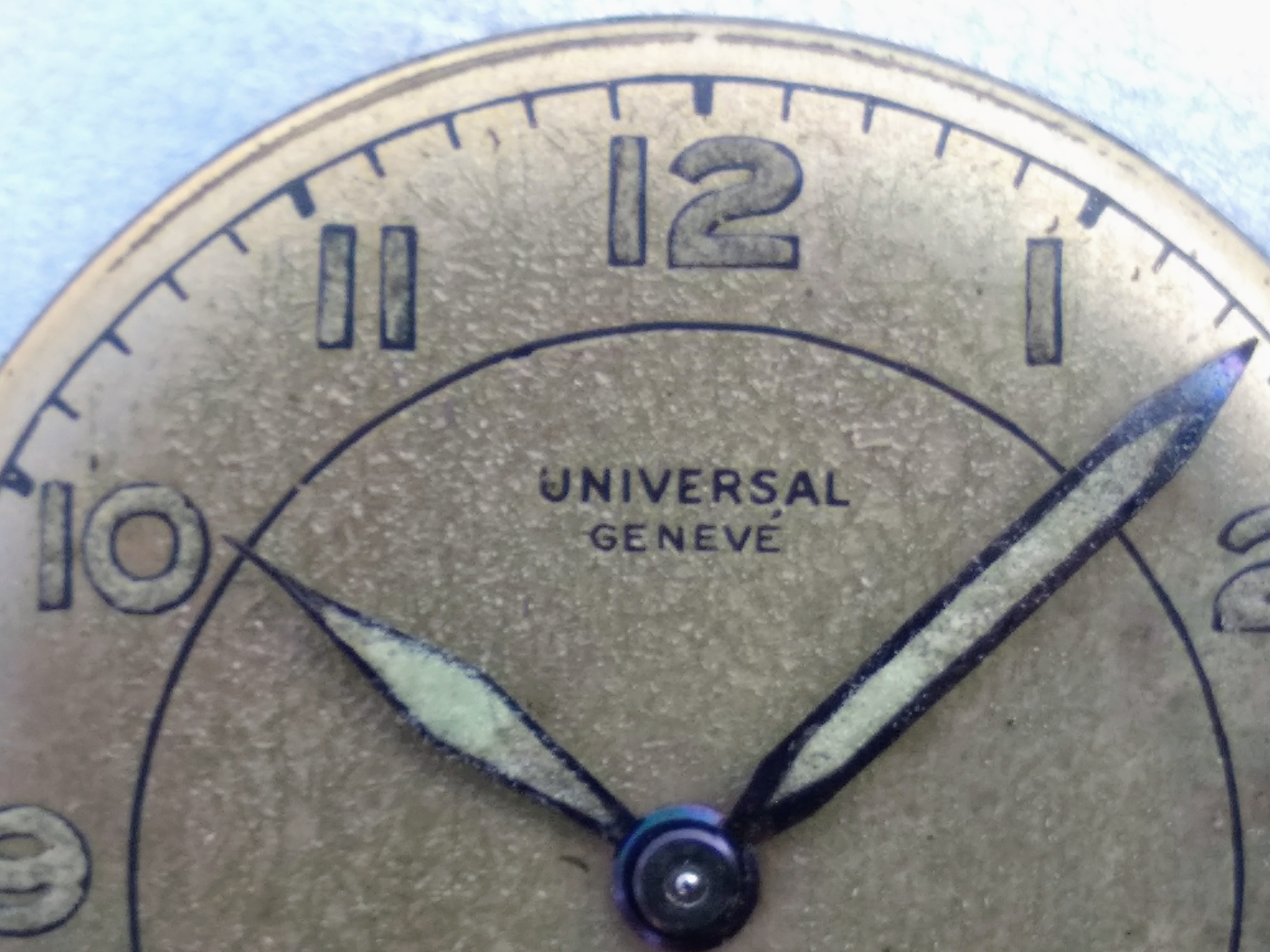 The dial however has some deterioration, and there are some suspicious irregularities in the printing. I don't have any experience with these watches, and haven't been able to find any comparable examples online with original dials, so am not sure what to make of it. I am hoping someone here could help out, and would in any case love to see more examples of similar UGs.
