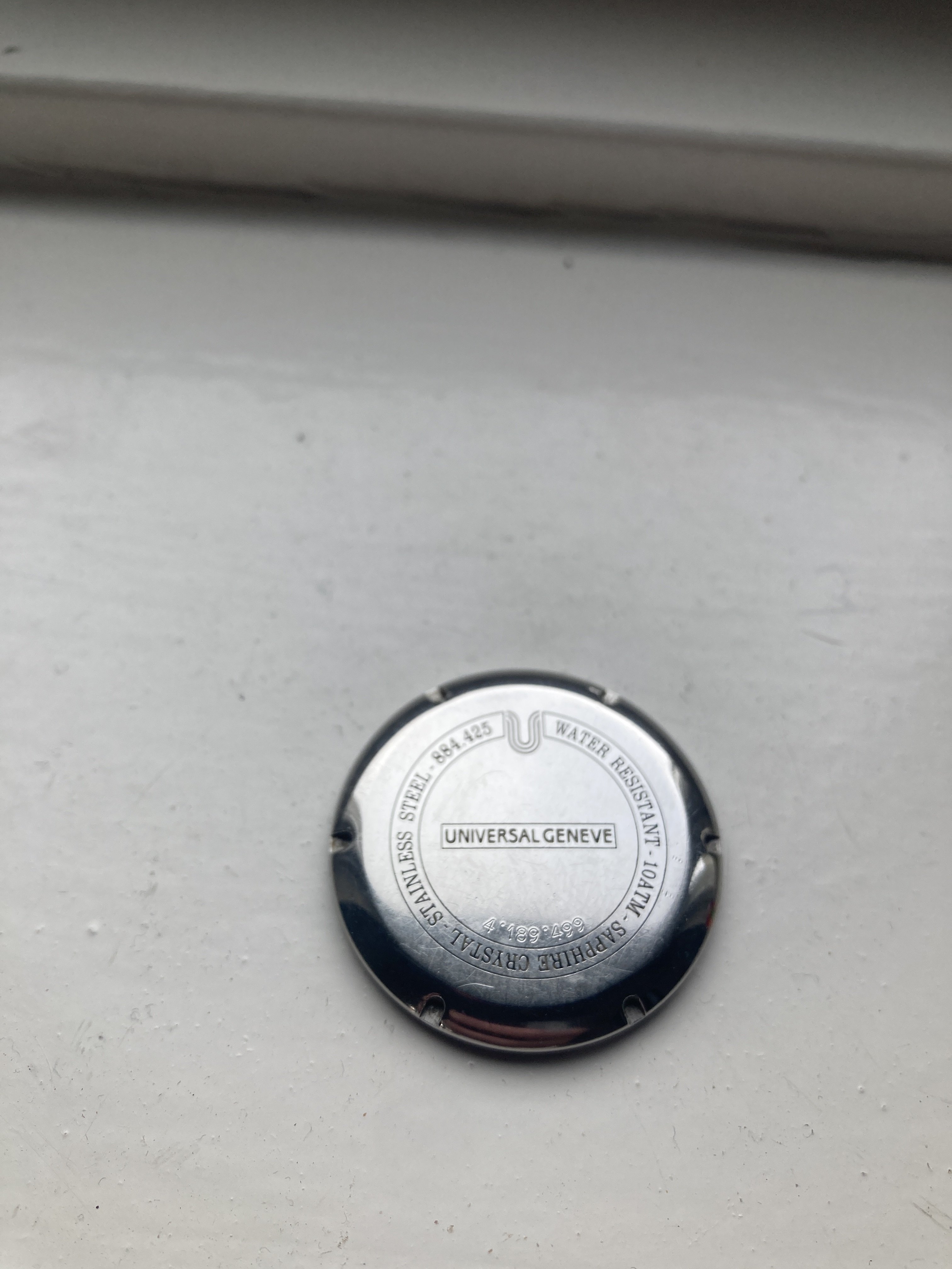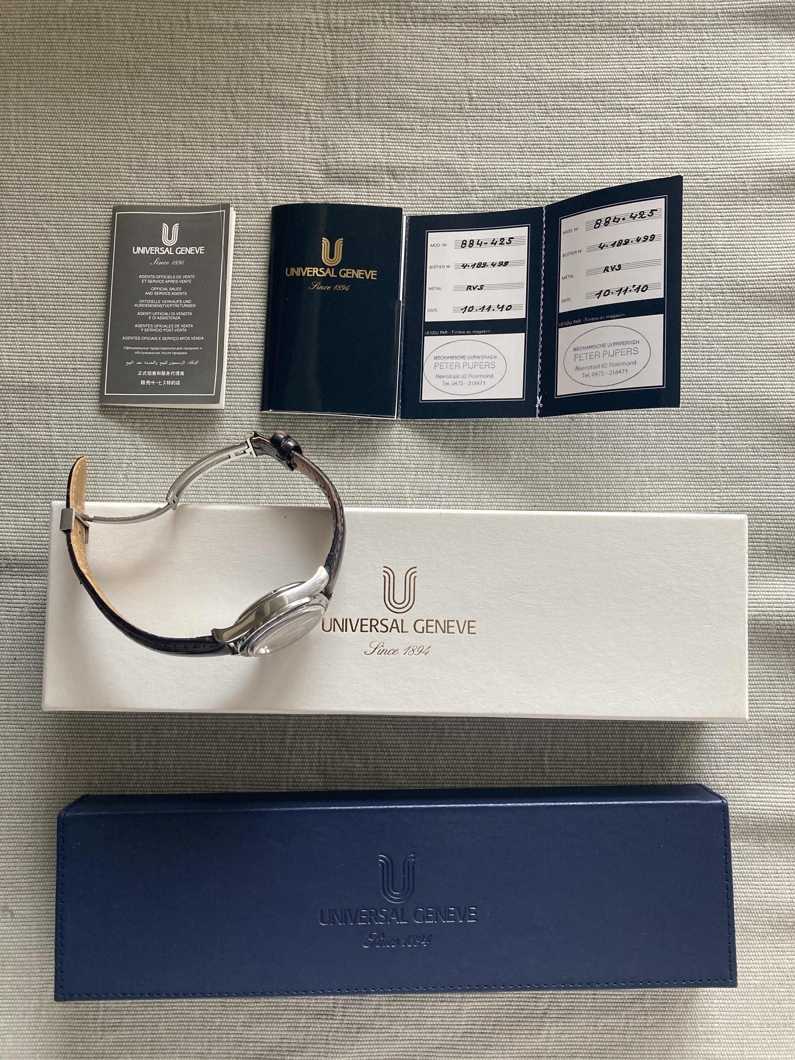 STRAP: Most likely the original strap with stainless steel buckle marked with Universal Geneve.