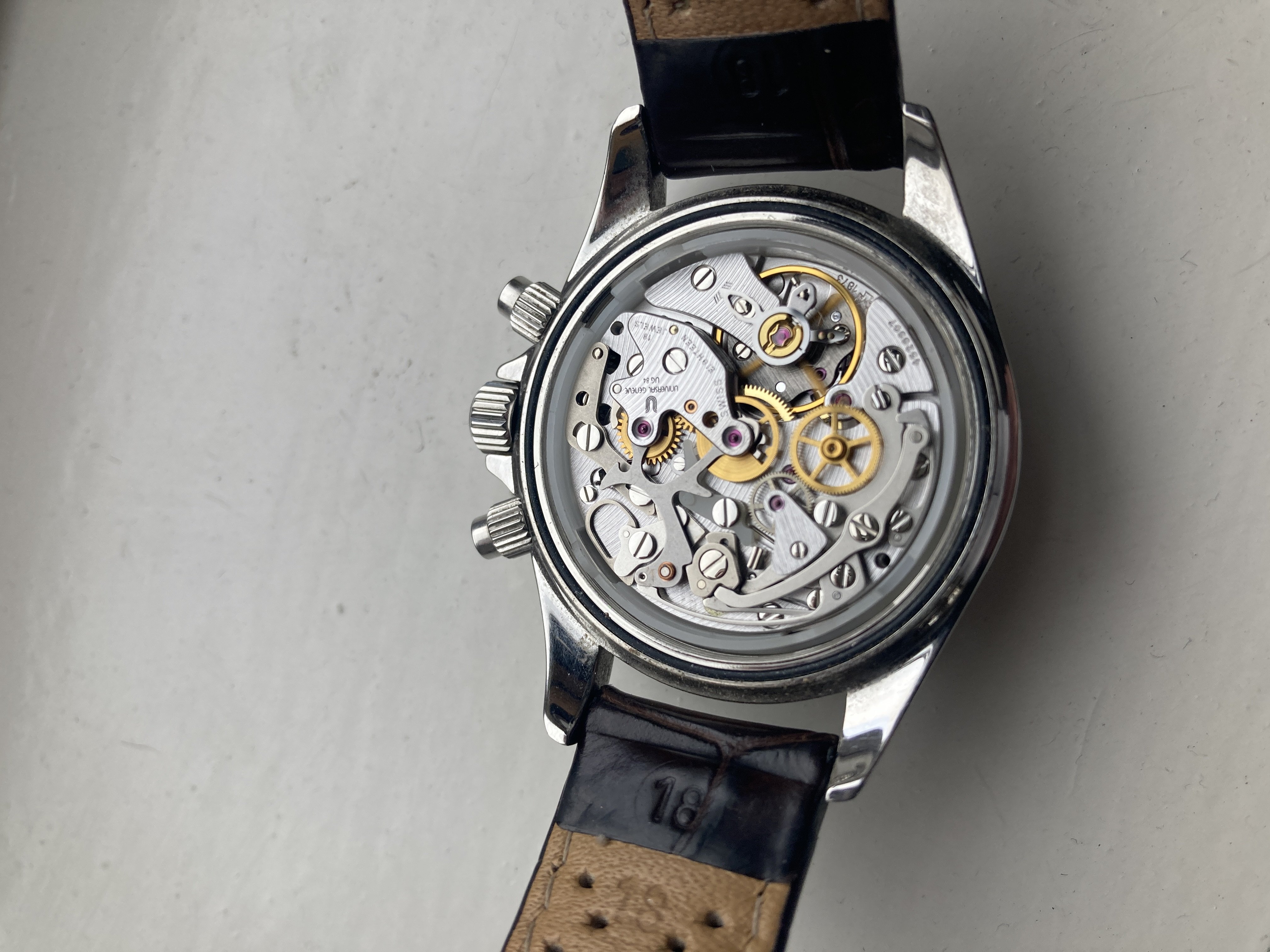 MOVEMENT: Powering this watch is a Universal Geneve 84 movement, which is actually a rebadged Lemania 1873. No service history known. It runs and works (sort of) so consider it in need of a service.