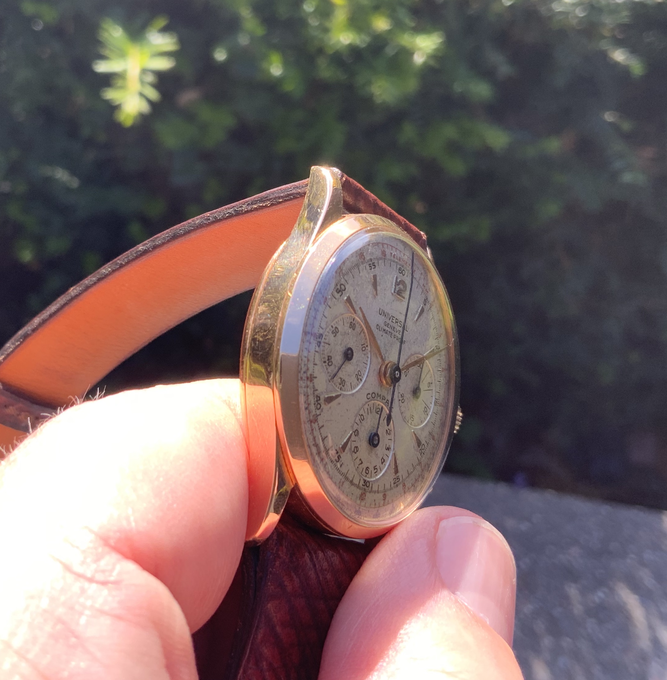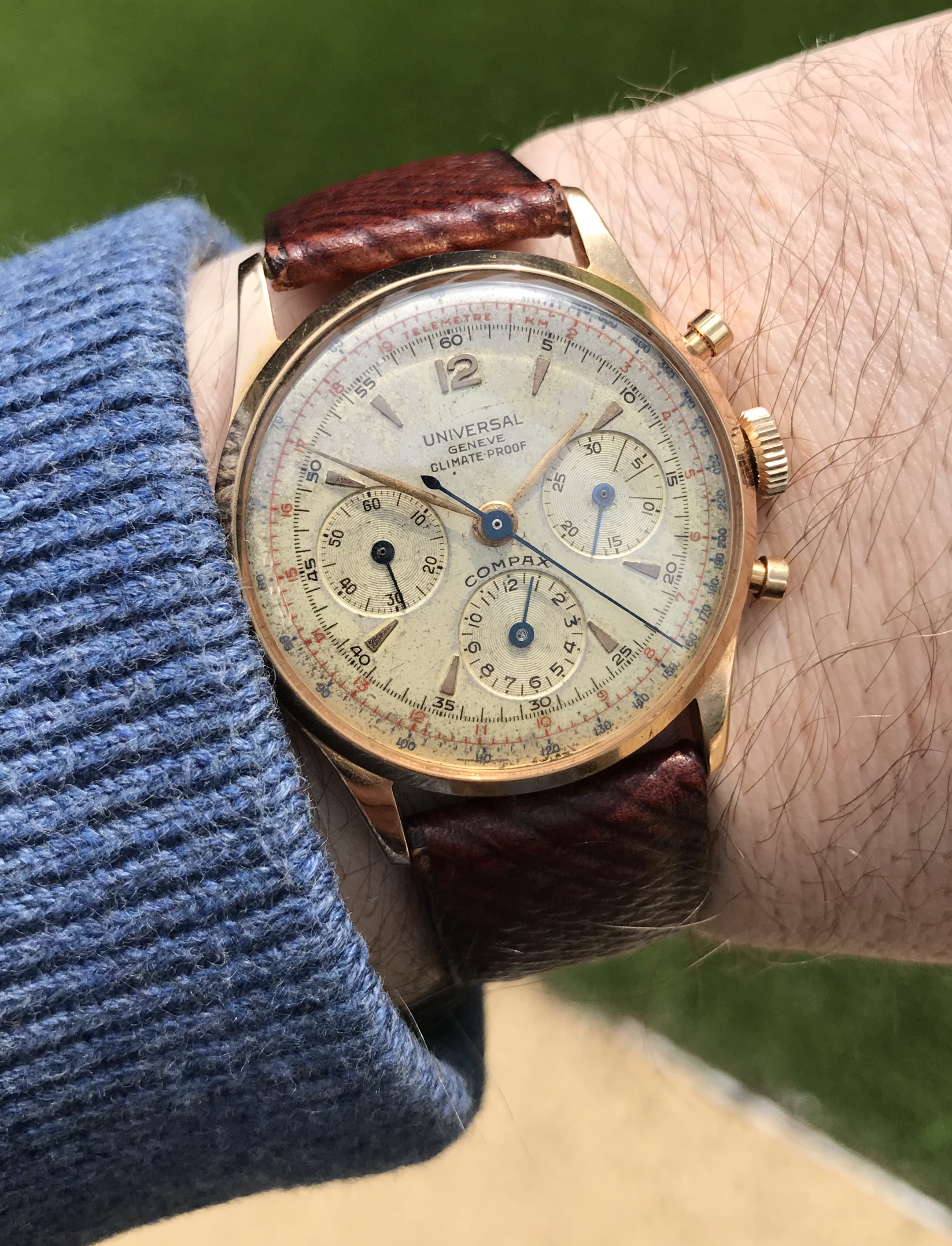 ·Offered for sale is this example of the seldom-seen Universal Genève ‘Climate-Proof’ Compax.