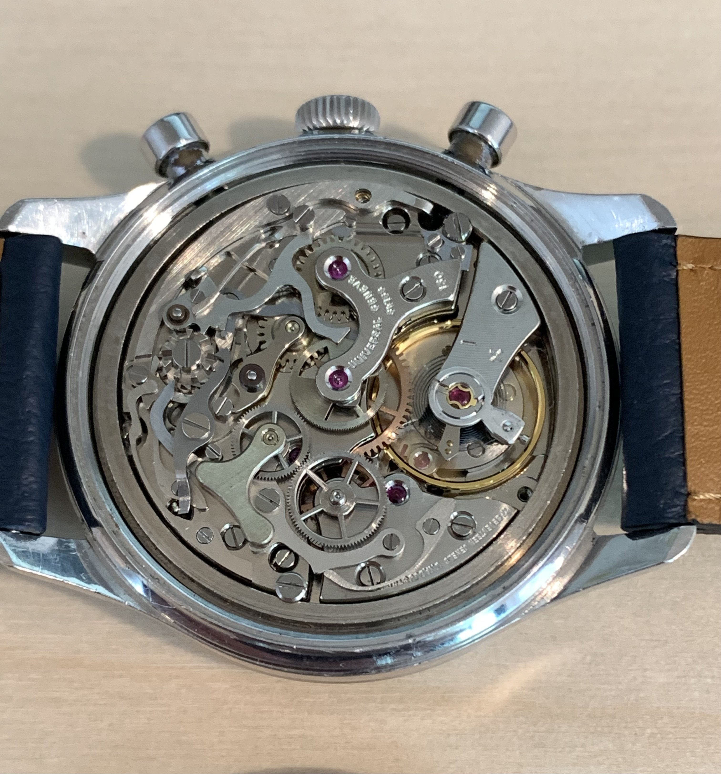 The movement, also very clean, is Caliber 130, UG’s in-house version of the famous Valjoux 72. Runs great, and although I haven’t had it serviced or timed since I acquired it last year, I’ve had no issues at all.