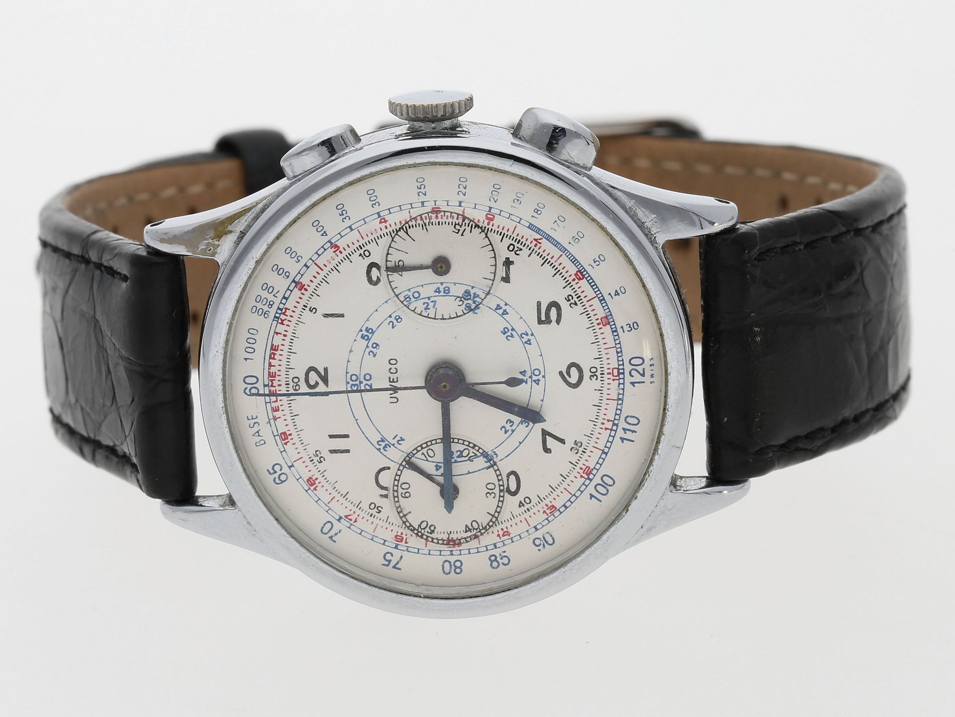 As with everything UG from this decade, this broadly checks out in my experience, but not perfectly so. I have a 1940 Compax that indeed does follow the five-digit case numbering convention. However, I also own a time-only Colonial with a five digit case reference from early 1939, suggesting that the new system came in well before 1940 on some models. Maybe the time-only pieces, with a greater likelihood of receiving case updates and/or new styles, were the first to carry the five digit references as they were refreshed, ahead of the chronos? I guess we’ll never know for sure.