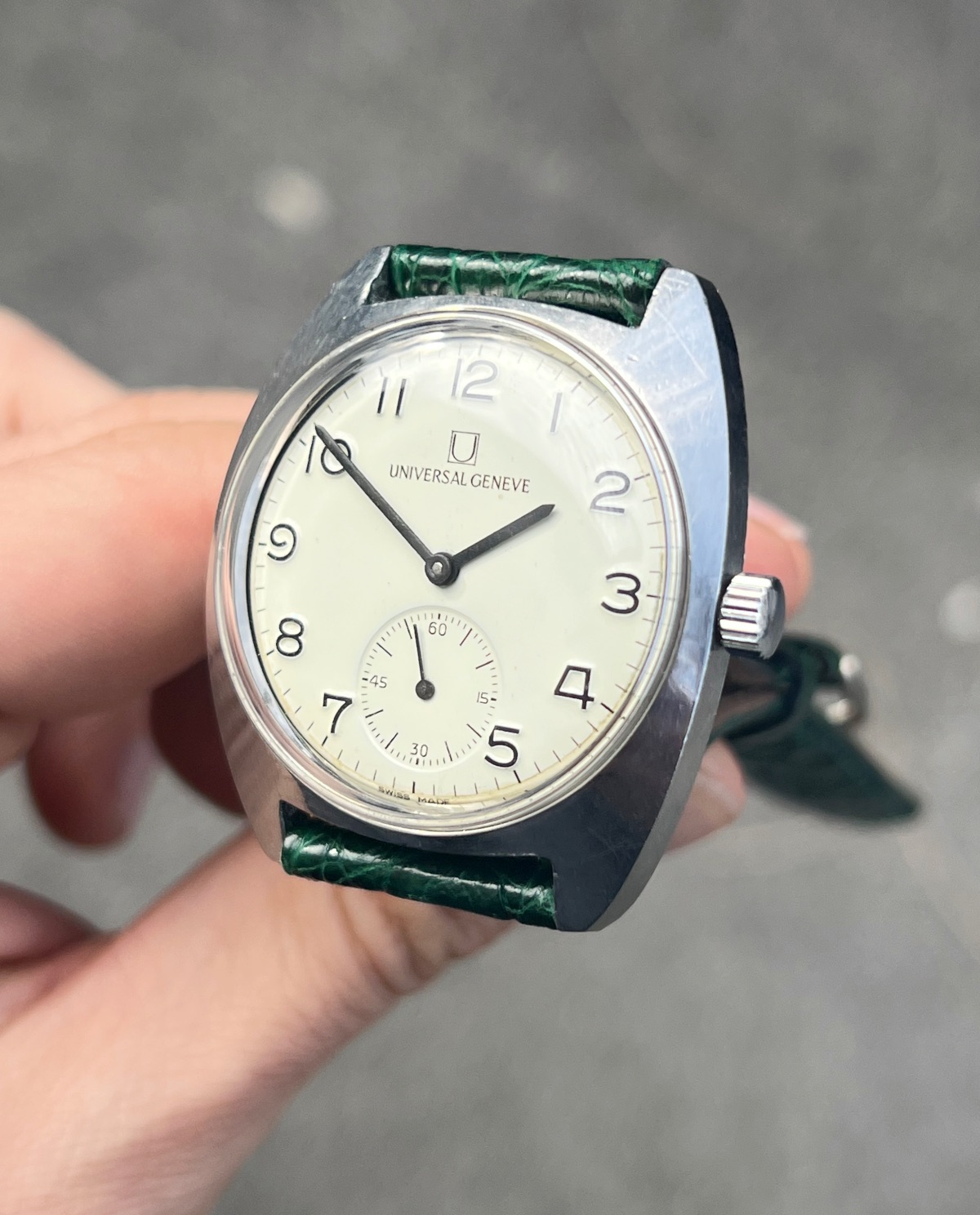 Up for grabs this spectacular example of Universal Geneve FS aka "Ferrovie dello Stato" (Italian railway company) from 60s. This specific axample is a "mark 2" version.