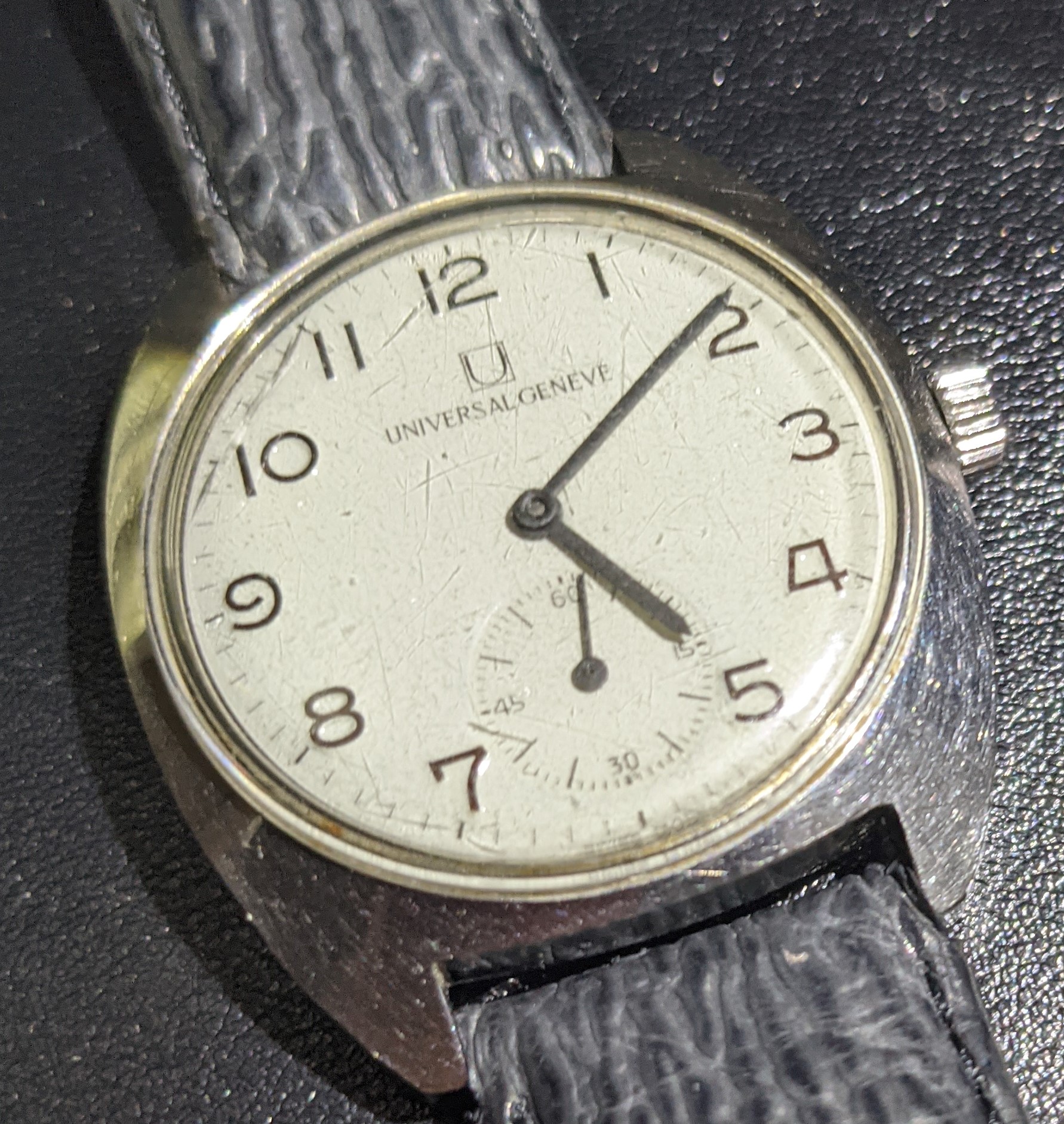 Hi all, I’m the owner of the UG FS MK1 that is presented in Roberto’s book. Roberto sold me this watch after taking the pictures for his book, and it has been with me ever since. Indeed I can confirm that the dial must be misplaced since it doesn’t show the “Swiss Made” letters. As you can see in the pictures, the minute marks go right until the edge of the dial and there is no space between the minute marks and the border of the dial. So, no Roberto, there is no refraction here. Did you notice the dial was misplaced before you sold it to me? I’m taking the watch to my watchmaker in order to see if he can place the dial properly. When I have some news, I’ll get back to you.