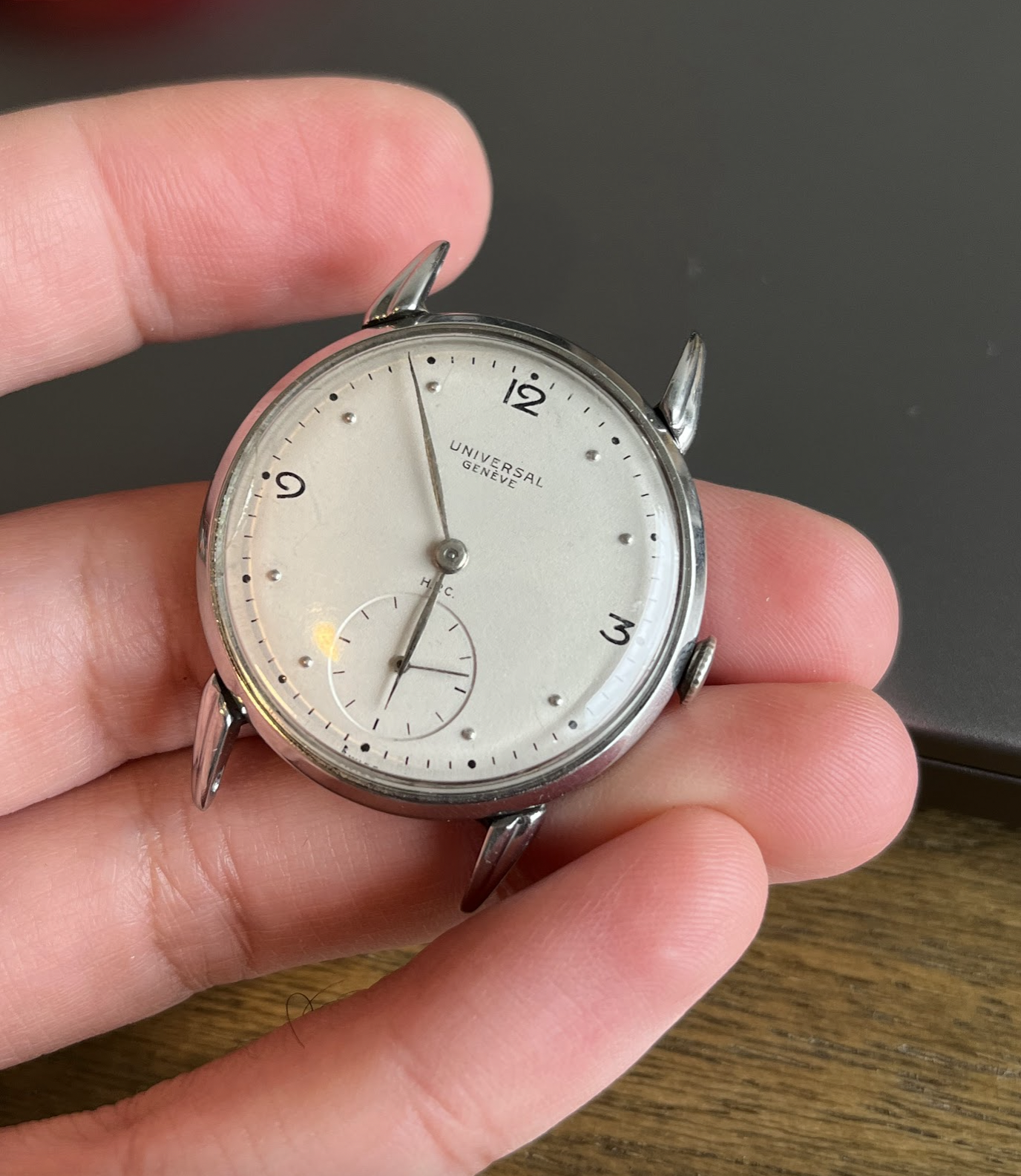 ·Selling one of my favorite dress watches. A unique Universal Geneve three hander (ref 212208) with H.P.C. on the dial.