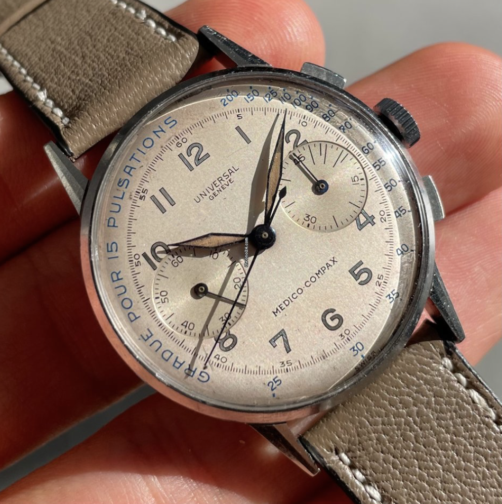 I personally love this type of oversized Uni-Compax, especially with this type of hands, and the old medico dial with blue scale looks awesome although I am not sure if correct for the serial, and I also have doubts about the possible dial / hands matching.