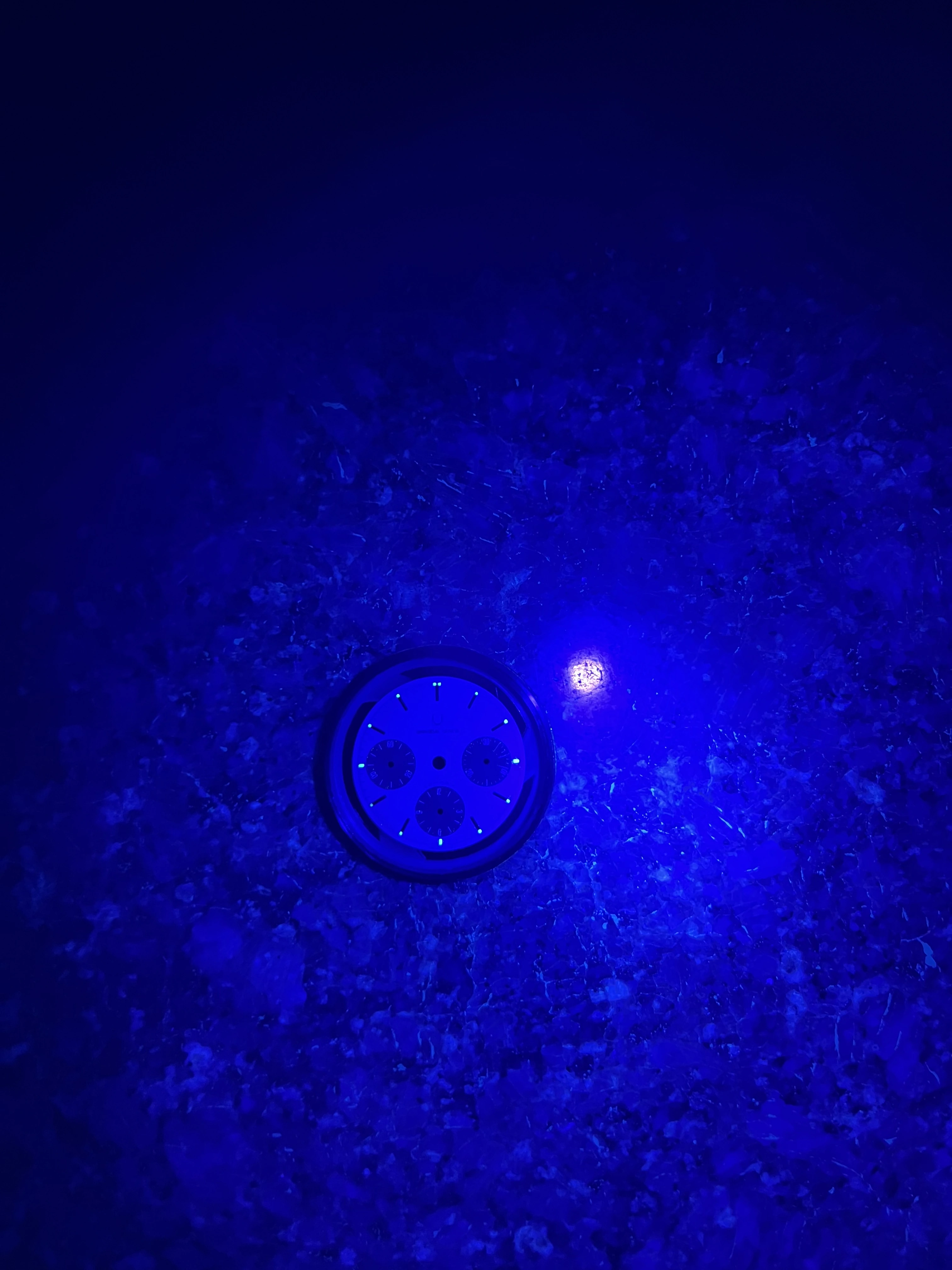 The original tritium is in excellent condition and has aged to a creamy patina and, as is the case for dials of this era, glows brightly (but fades rapidly) when exposed to UV light.