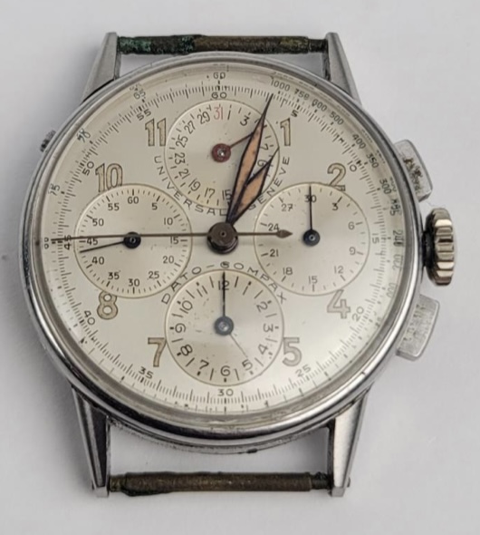 This watch is about as historic and significant as you can get for a WW2 Chronograph. It was on Mayhew Y. "Bo" Foster's wrist while he flew Hermann Göring to stand trial at Nuremberg. This watched helped Bo keep track of mileage and fuel usage and was essential in accomplishing his mission. Thanks to this watch Hermann Goring landed safety in Nuremberg and stood trial for the atrocities he committed during the Holocaust. The watch is in working order. Mayhew Y. "Bo" Foster (October 9, 1911 - March 21, 2011) was an American soldier who flew captured Nazi war criminal Hermann Göring from Austria to Germany for interrogation by the 7th Army. For his actions in World War II, Foster was awarded both the Silver Star and the Légion d'Honneur. At the end of the war, Göring surrendered to the Allied Powers in the Bavarian Alps. On May 9, 1945, Foster transported Göring back to Germany on a 55-minute flight in an unescorted, unarmed L-5, a larger plane than the L-4 he normally piloted, because Göring weighed more than 300 pounds (140 kg). According to China Daily, in a letter to his wife, Virginia, written at the time, Foster describes his first impression of Göring as "effeminate [and] gave me the creeps . . . Several times I had the impulse to turn the plane over and see if I could shake him out, but he was wedged in like a champagne cork." Foster said that Göring, who spoke some English, avoided any talk of Adolf Hitler, with whom Göring - as the commander of the Luftwaffe - had fallen out of favour as the total German defeat neared. "He acted as though he was going on a sightseeing tour, or really as though I was going on a sightseeing tour, and he was showing me where he grew up. I had a .45 in a shoulder holster, but he couldn't reach that. But neither could I, because I had two hands controlling the plane." Foster further recalled Göring as having been sharp, friendly, and witty, having joked when Foster asked him when Germany began manufacturing jets. "Too late," Göring was said to have answered. Foster continued: "I could see that he was like one of our officers if he'd been picked up. I wouldn't say it changed my view of the war, but it showed me that there are [He did not finish the statement.] . . . Well, I questioned all that we knew about these vicious people." Göring was convicted of war crimes, but in October 1946 before he could be hanged by the Nuremberg authorities, he committed suicide by taking a cyanide capsule someone had smuggled to him. By October 1945, Foster was back in the United States, having flown seventy reconnaissance combat missions during his wartime service. He returned to his adopted home state of Montana, where he was appointed lieutenant colonel in the Montana Army National Guard. He was thereafter promoted to brigadier general, a rank that he held from 1963 until 1971. A native of Richmond, Virginia, Foster graduated in 1937 with a degree in English from Yale University in New Haven, Connecticut. He and his wife, Virginia Lou Foster (February 15, 1916 - May 7, 1993) were married in 1940. The couple had one daughter, Susan Carol Foster Korkalo (1944–2007). Foster received the Silver Star for his wartime service in southern France in 1944. It was not until 2009 that he received the French Legion of Honor, when Pierre Vimont, the French Ambassador to the United States, released a letter hailing Foster for his "personal, precious contribution to the United States' decisive role in the liberation of our country during World War II." Foster died at the age of ninety-nine in a nursing home in Missoula, Montana. His last city of residence was Livingston in Park County, Montana. Survivors included son-in-law Roy E. Korkalo of Livingston, grandson Chris Korkalo, and a sister, Priscilla F. Howell.