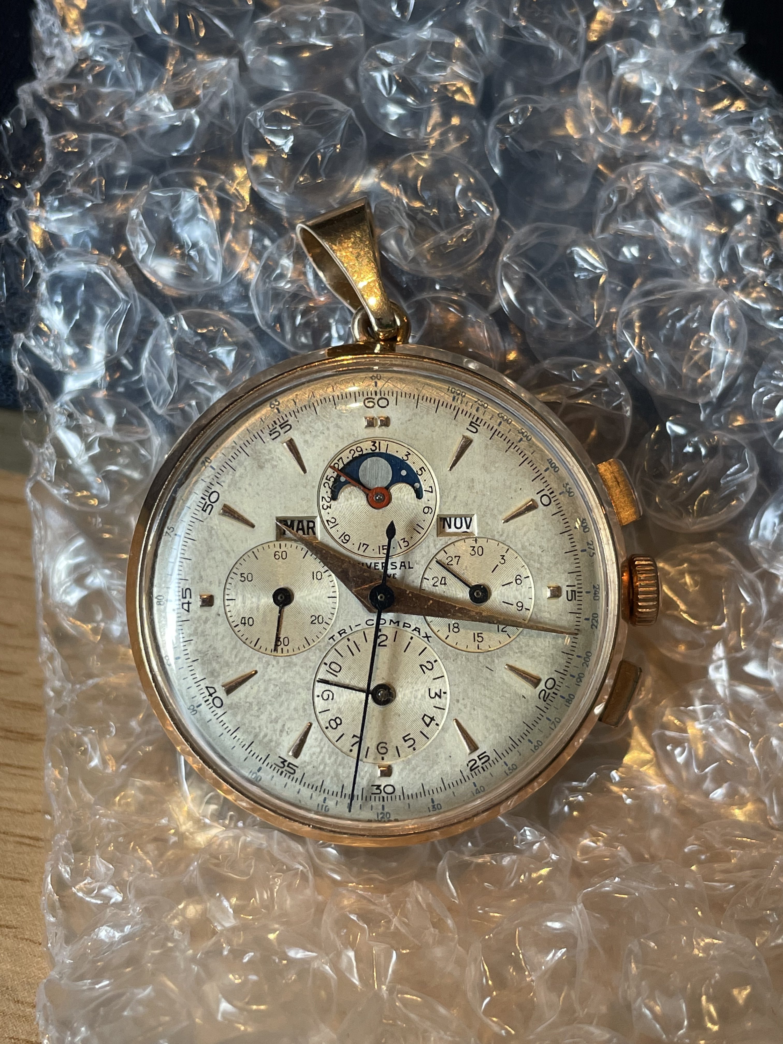 It's very possibly a recase, as others have mentioned. I swear I've seen a pendant UG Tri-Compax before, but I just can't find an example and it could be my delusion.