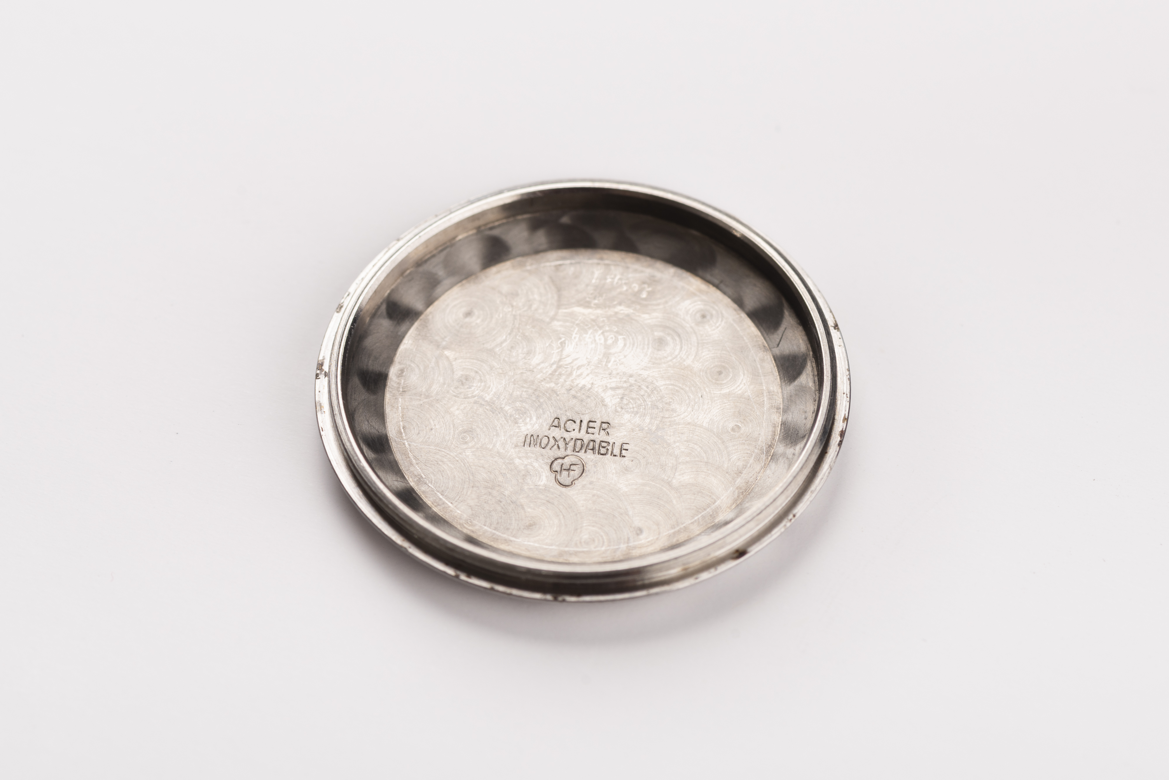 Case: 35.5mm. Stainless steel case. 'HF' stamped Huguenin Freres case back. Bombe lugs. 19mm lug width. 6-key case back, characteristic of a Polarouter. Logo engraved to case back as well as case reference and serial numbers. Signed crown of a type unique to Polarouters.