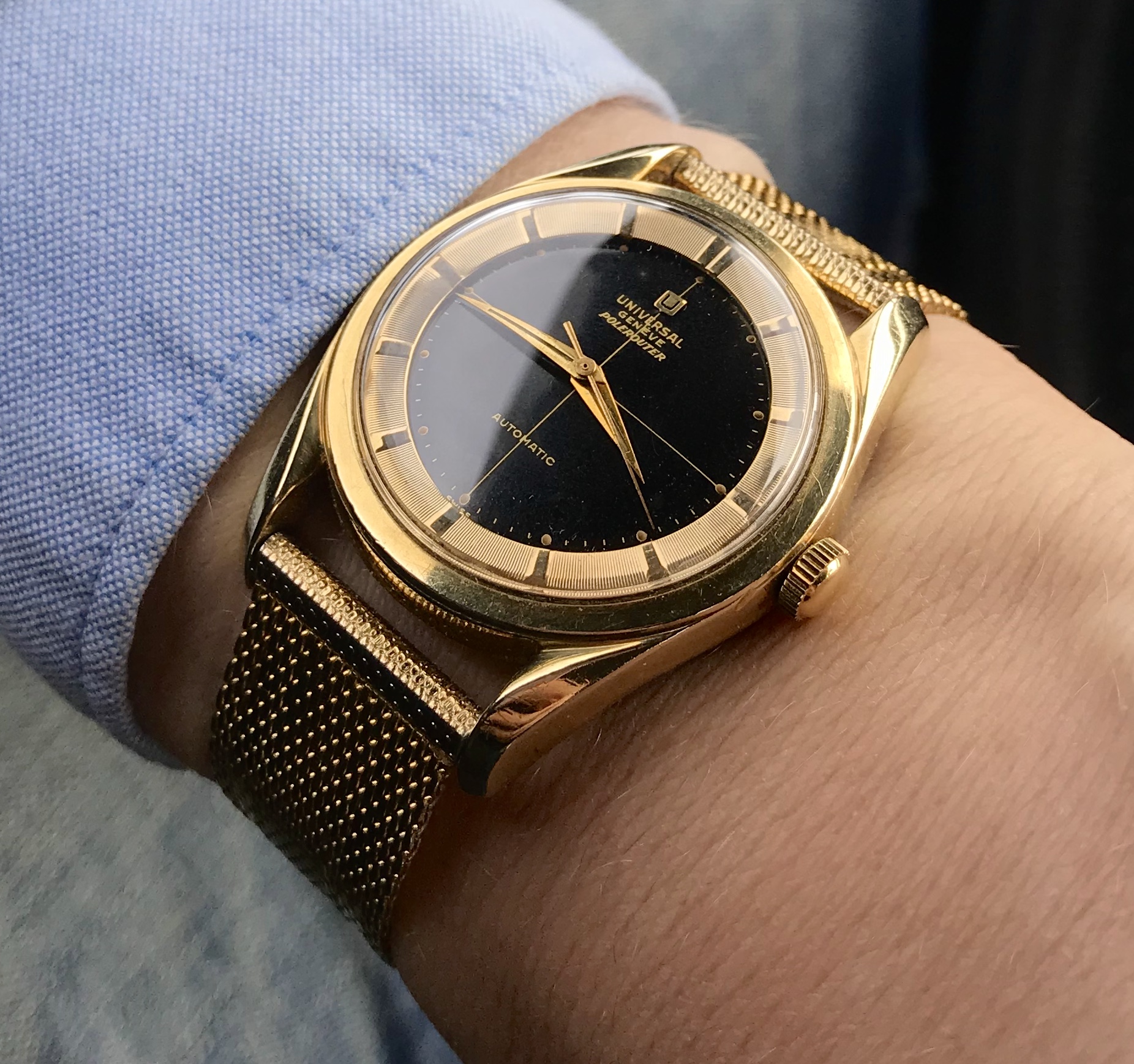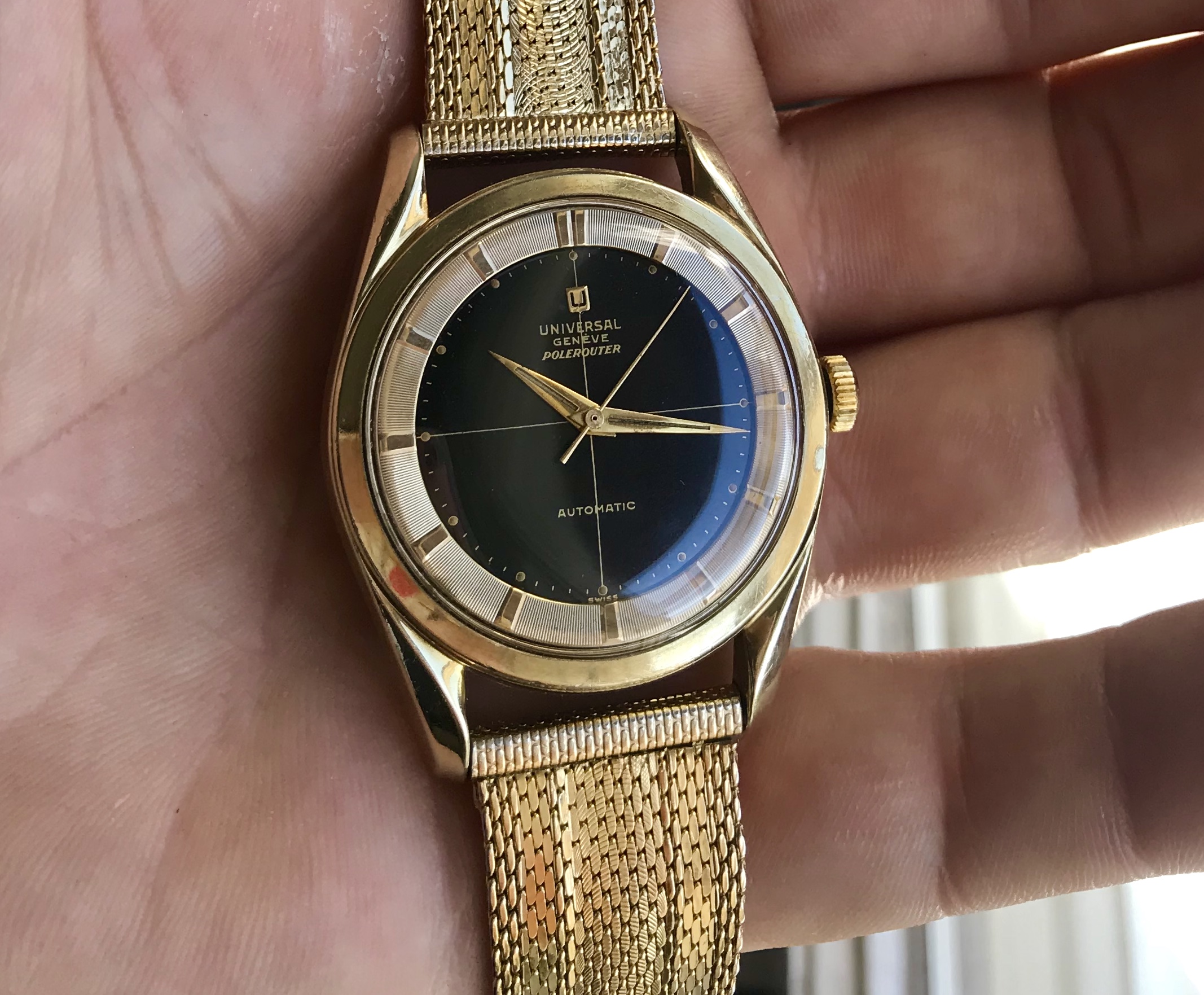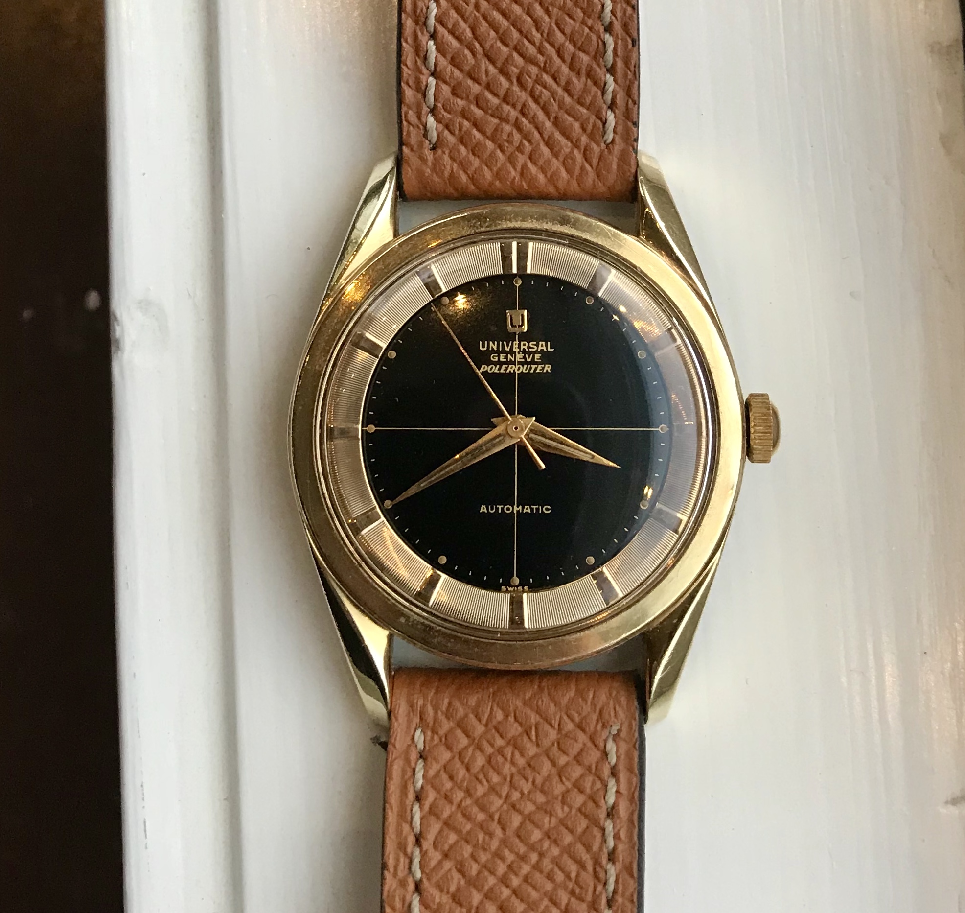 ·Universal Geneve Polerouter 20214-4 / PolArouter transitional, gold capped with stunning black dial.
