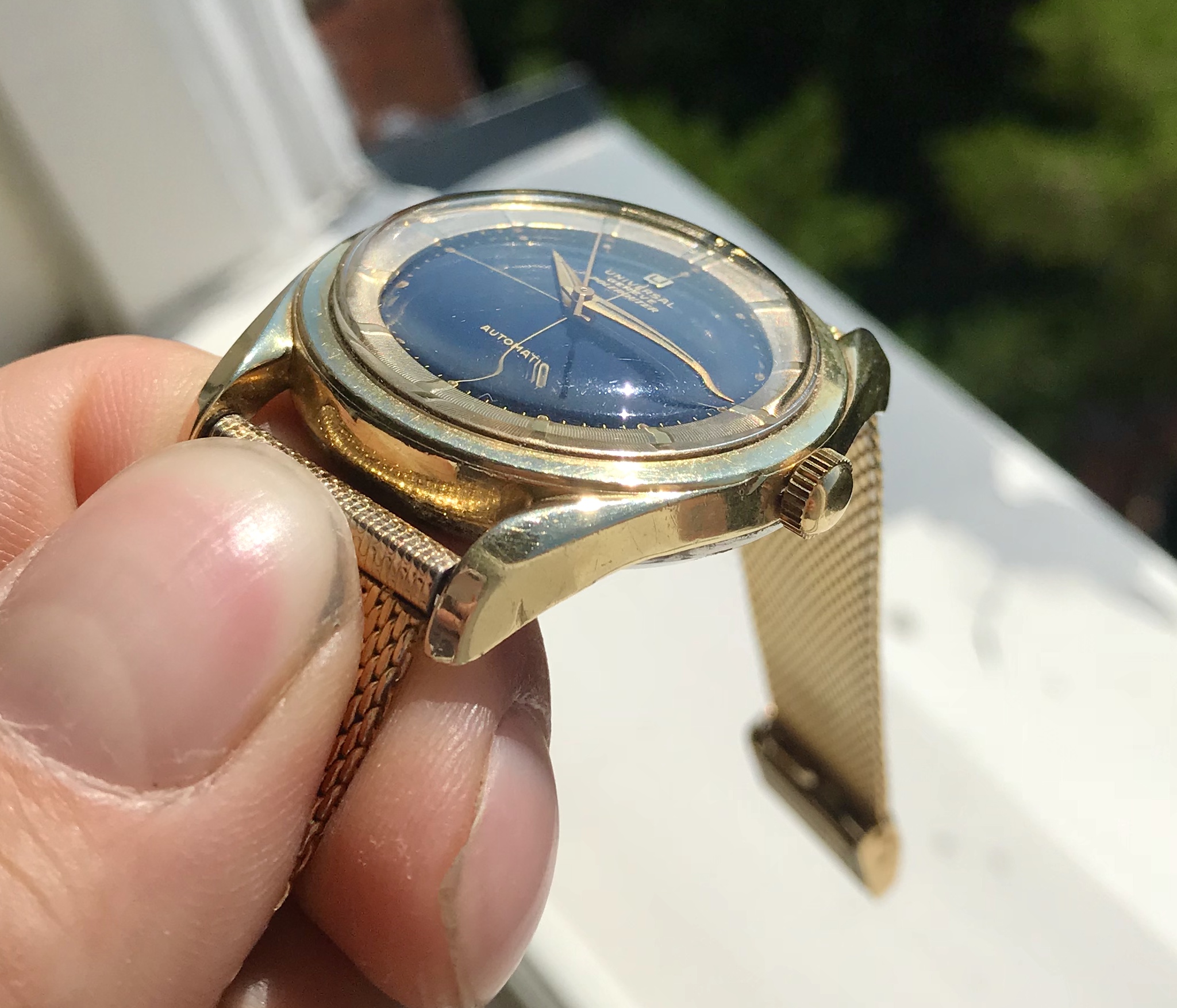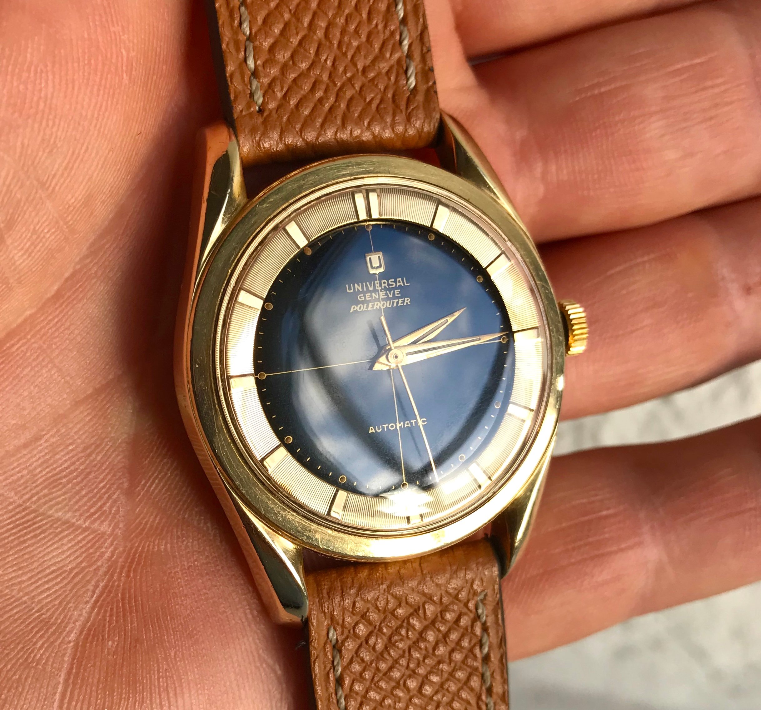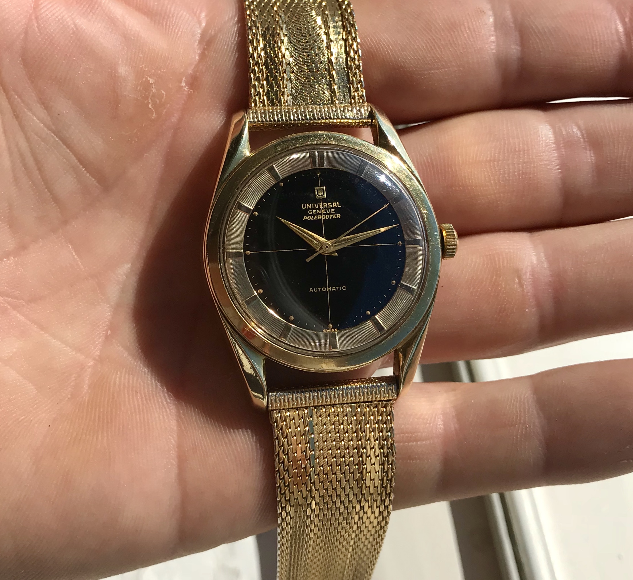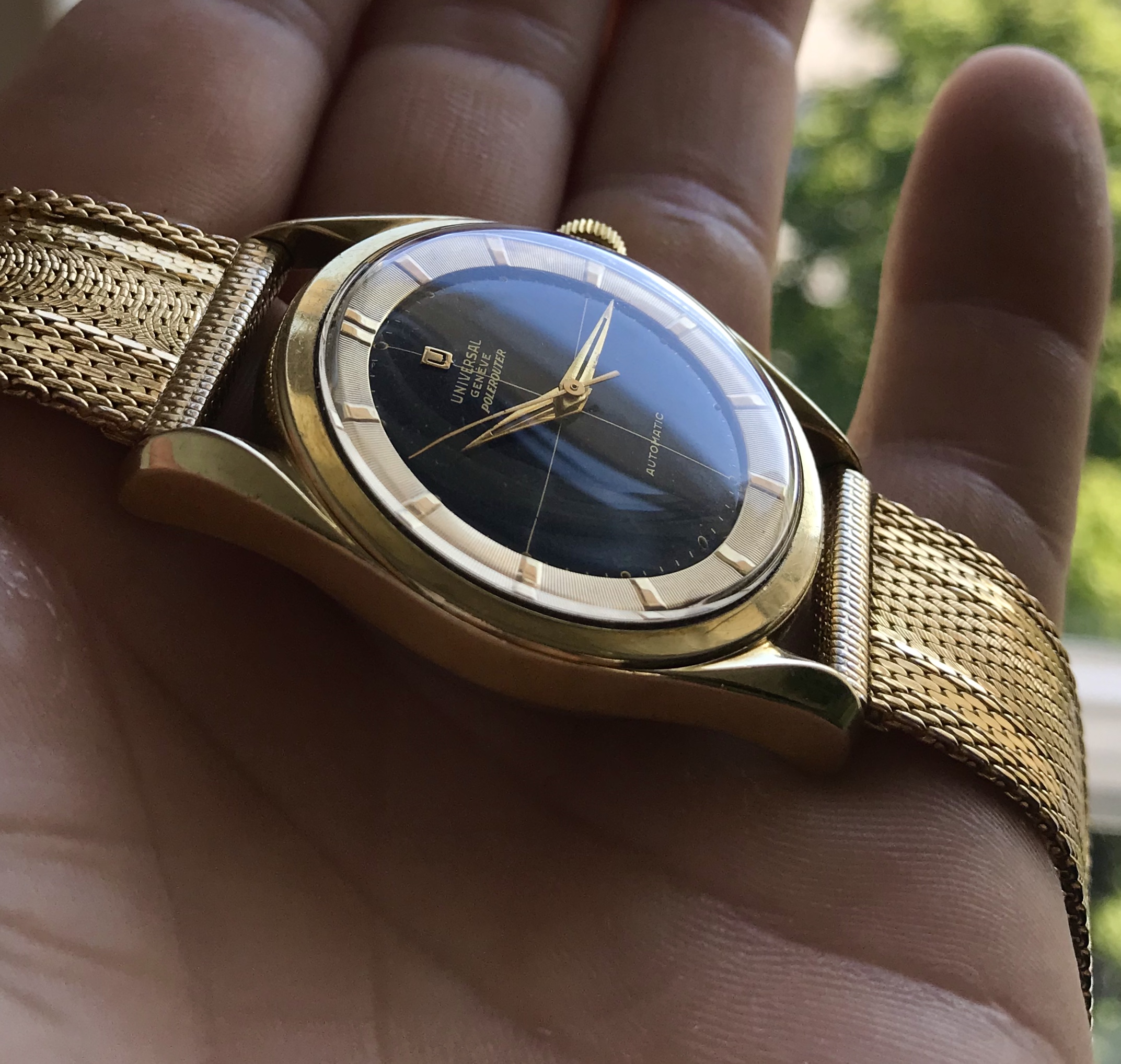 ·Universal Geneve Polerouter 20214-4 / PolArouter transitional, gold capped with stunning black dial.