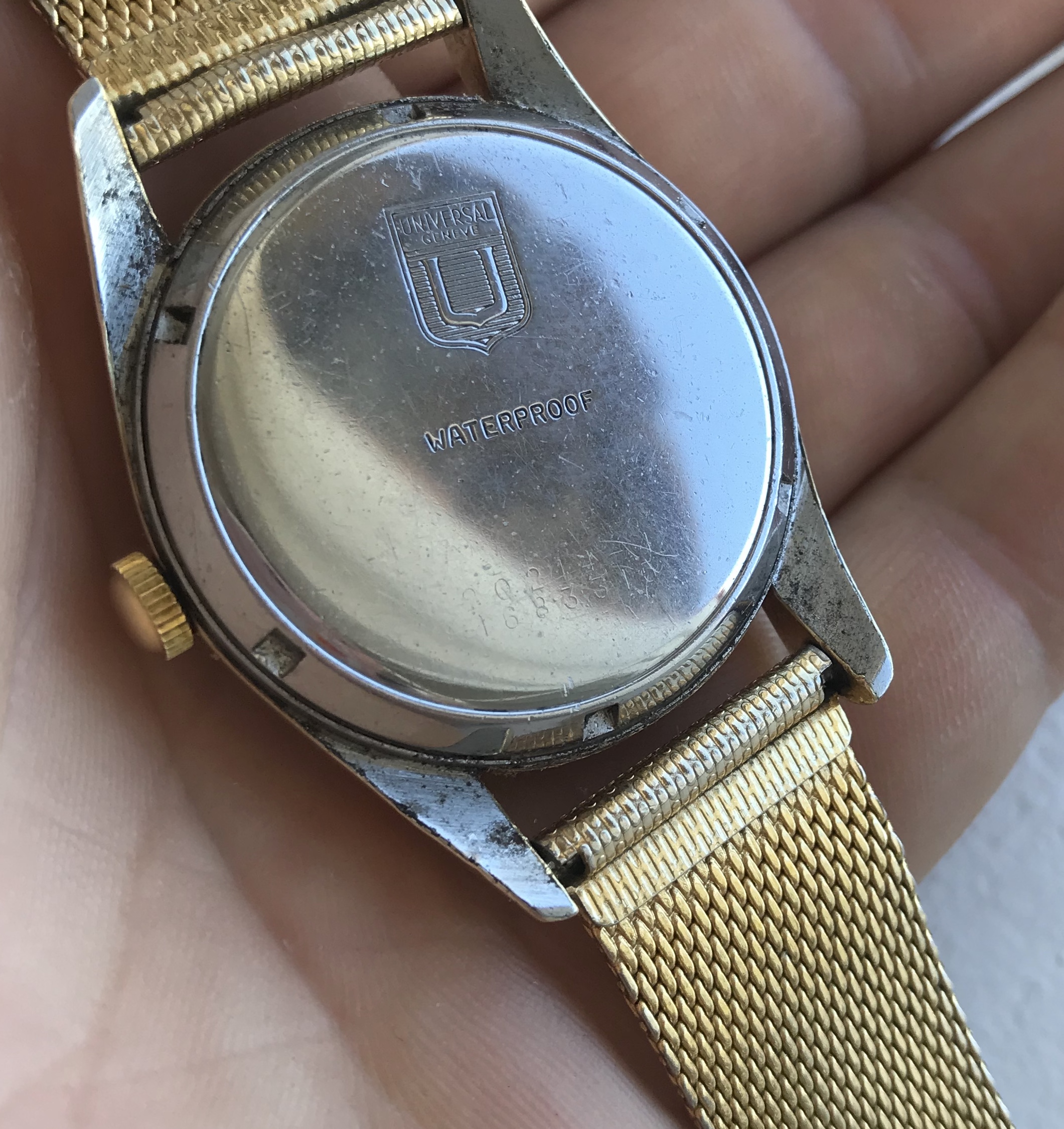 H.F stamped (Huguenin Freres) caseback. Bombe lugs, 35.5mm and 19mm lug width. 6-key caseback, characteristic of a Polarouter.