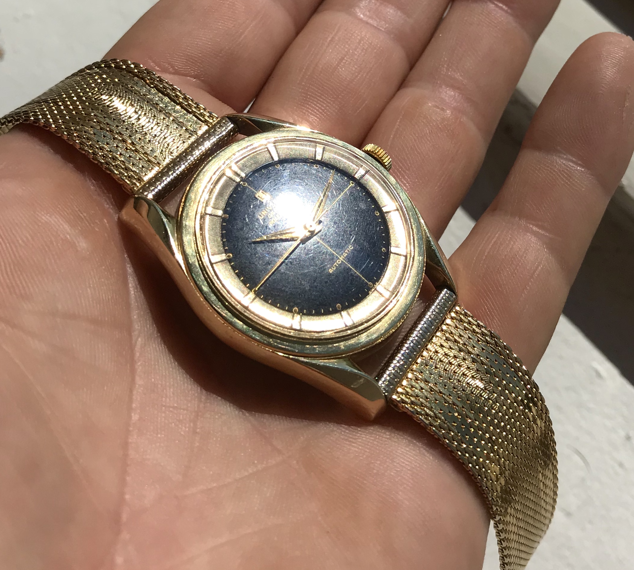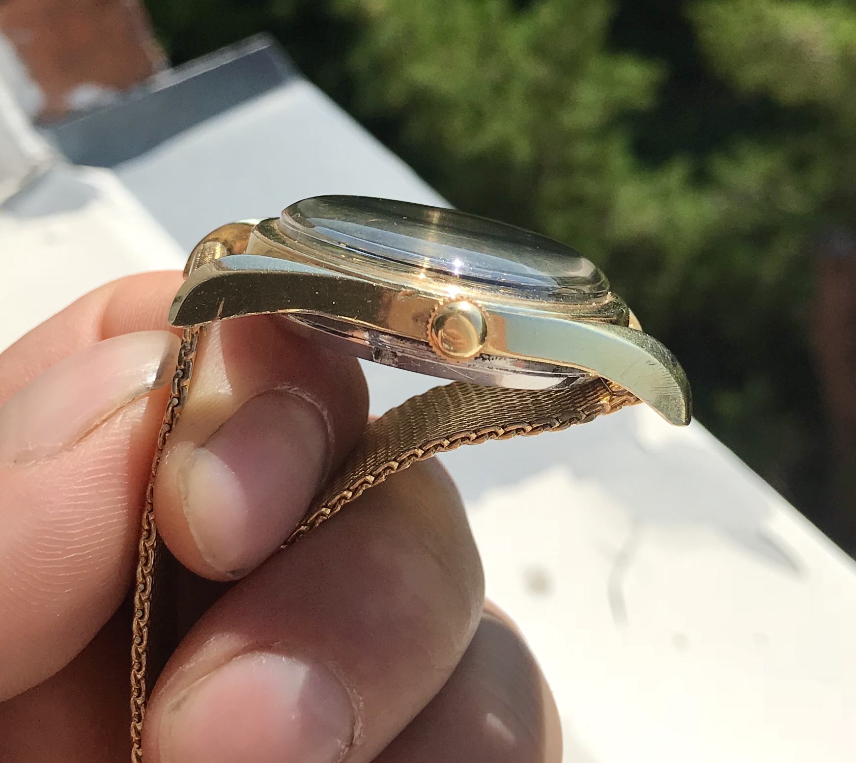 Comes on a vintage goldplated mesh (seen on the pictures) which suits the watch very good IMO!