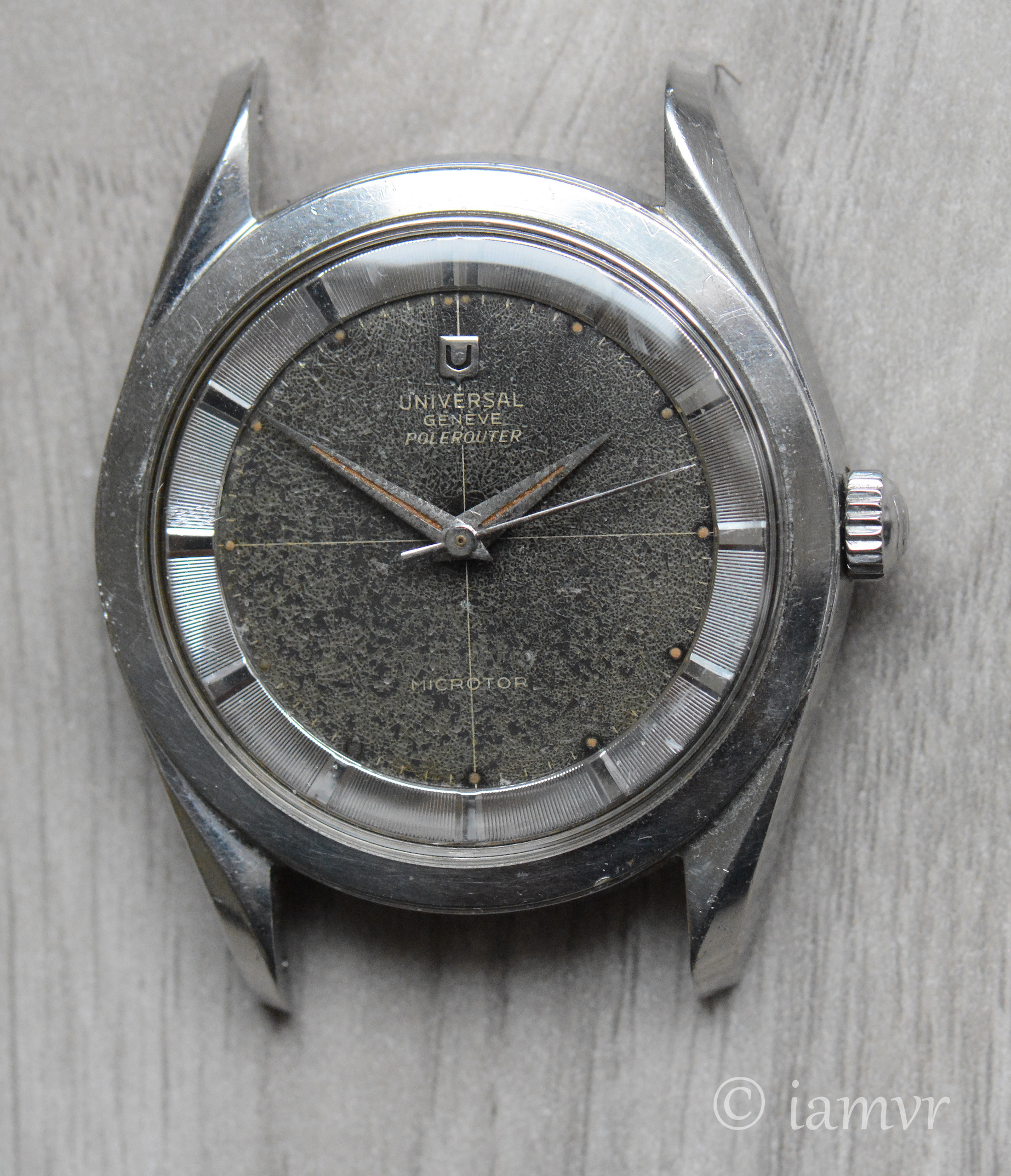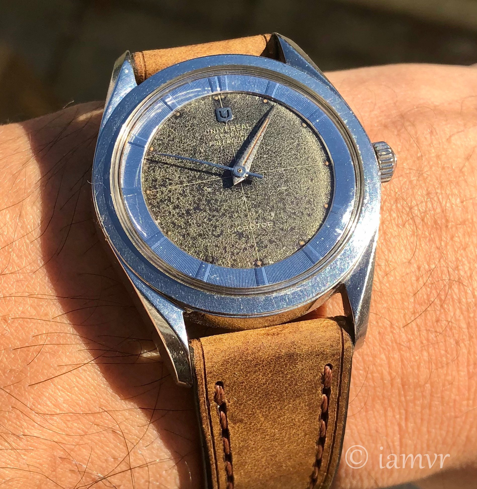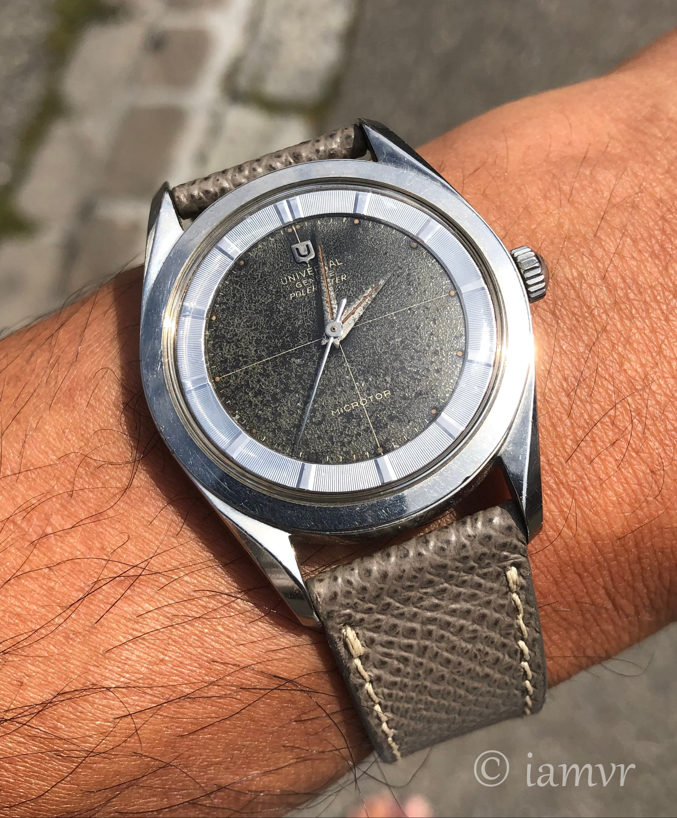 Due to my relentless buying I have to let go of watches I no longer wear that often. Up for sale is this nice and iconic UG Polerouter 20360-1 with a patinated black dial that turned into an attractive brown. I bought it from my watchmaker in late 2021, who of course had serviced it before.