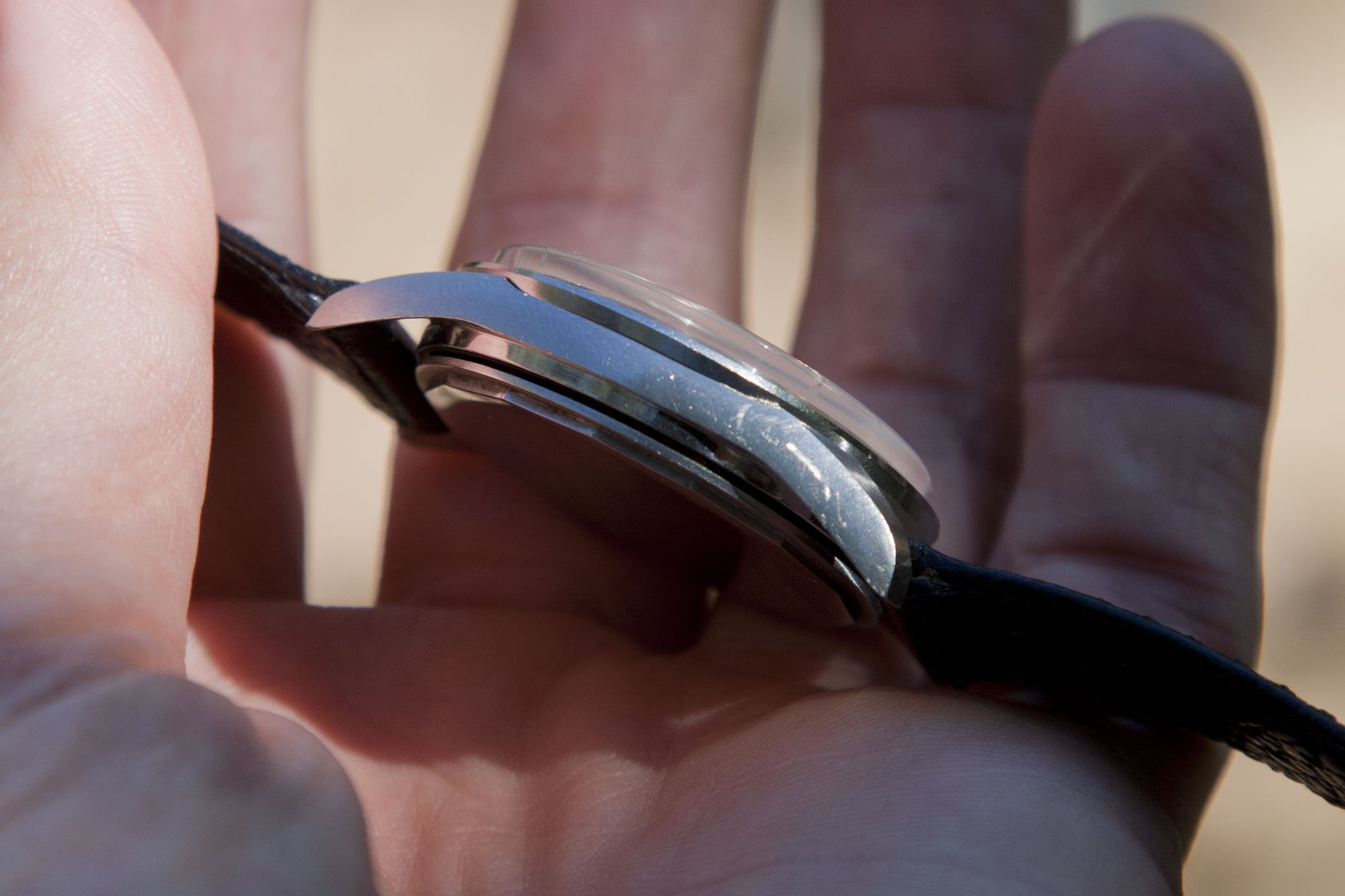 Case - 34.5mm with 20mm lugs. Appears unpolished in outstanding condition. Caseback is glossy, assume from wearing, but reference and serial numbers are still clearly visible.