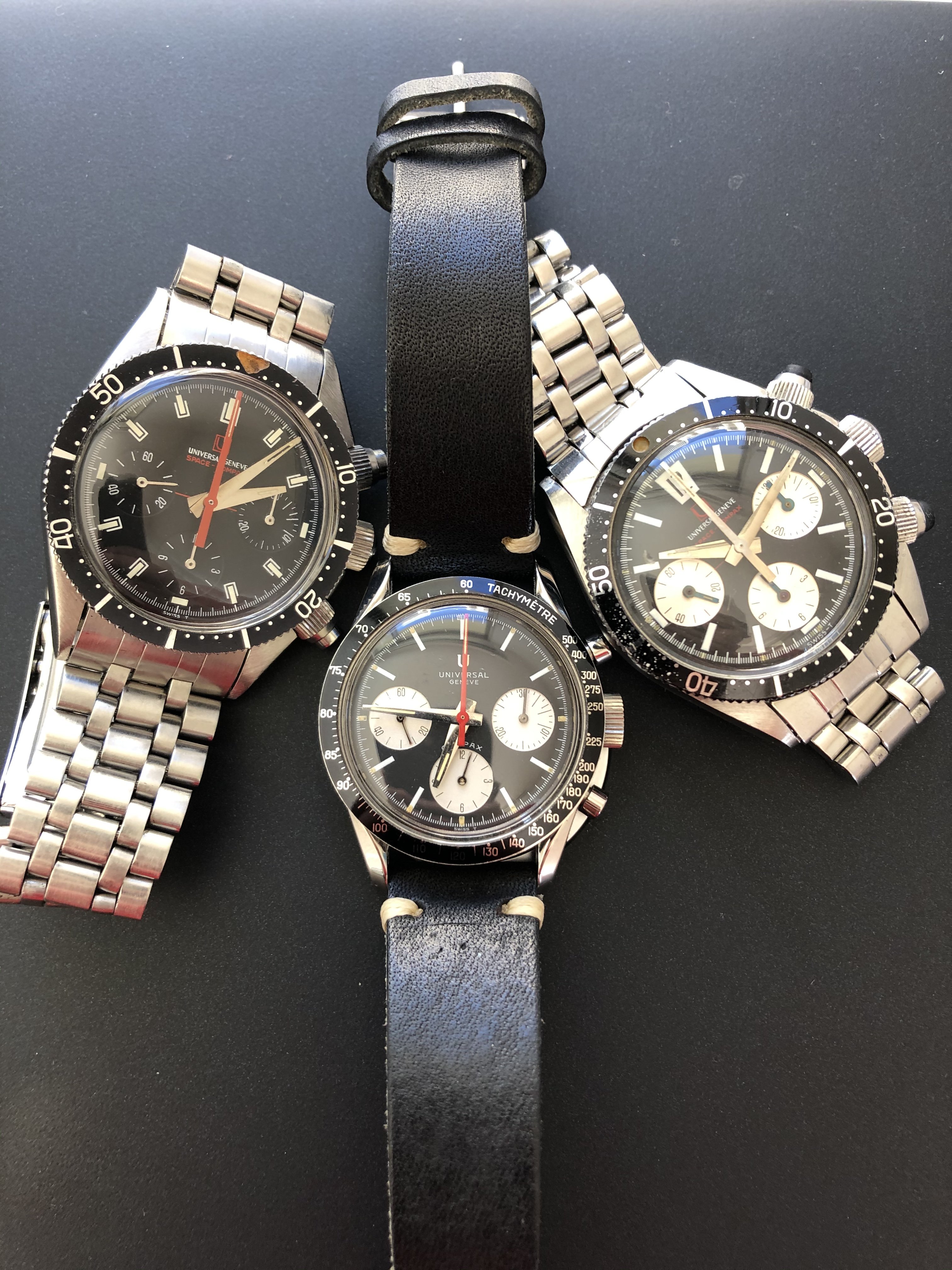 I previously owned a tropical dial Polerouter Date and a grey dial Polerouter Super, but had to prioritize my collecting goals. Most of these remaining UG are keepers for me, though I am selling the right two watches (Uni-Compax and 40's bumper). After selling those two, I would want to add a Tri- or Space- or Aero-Compax.