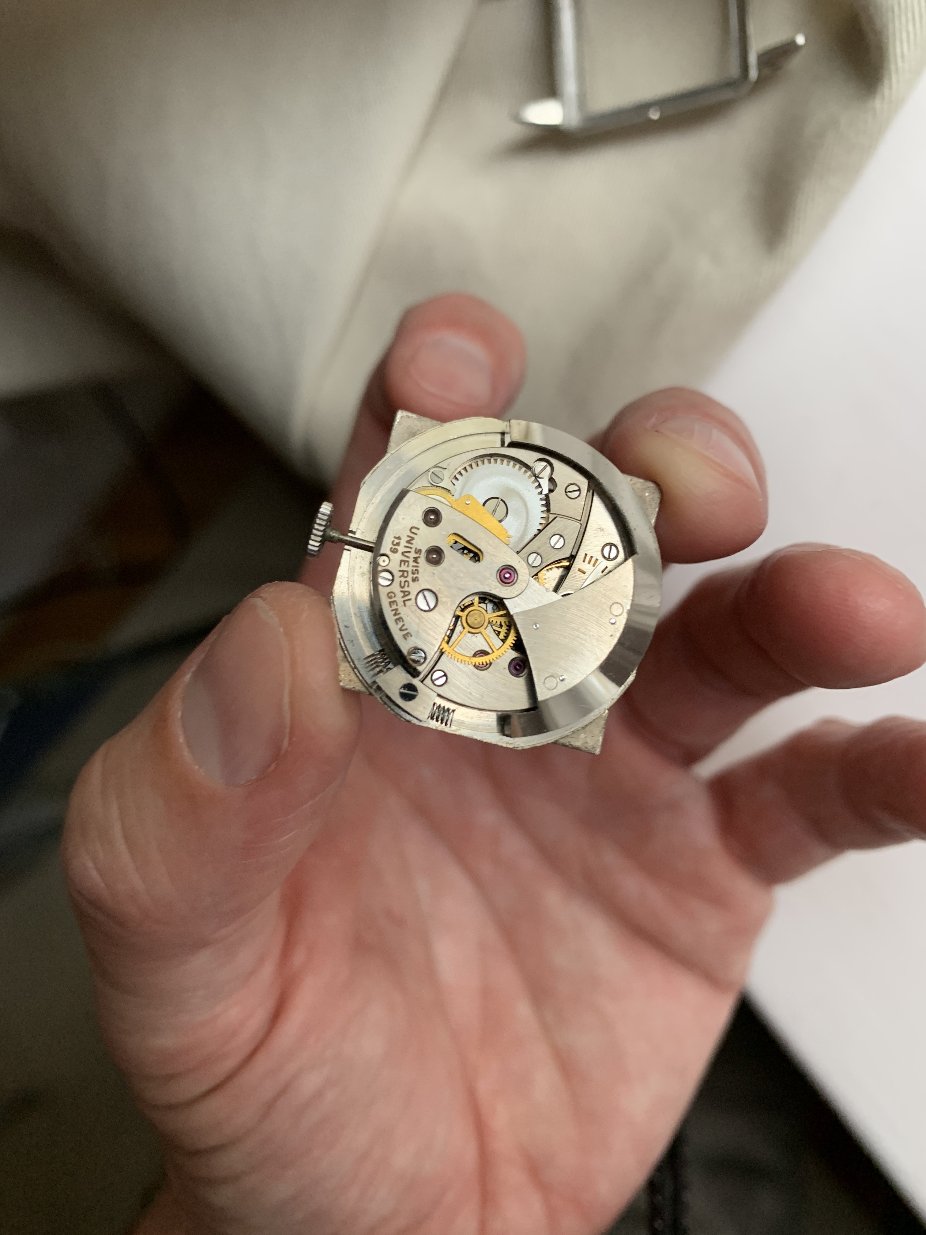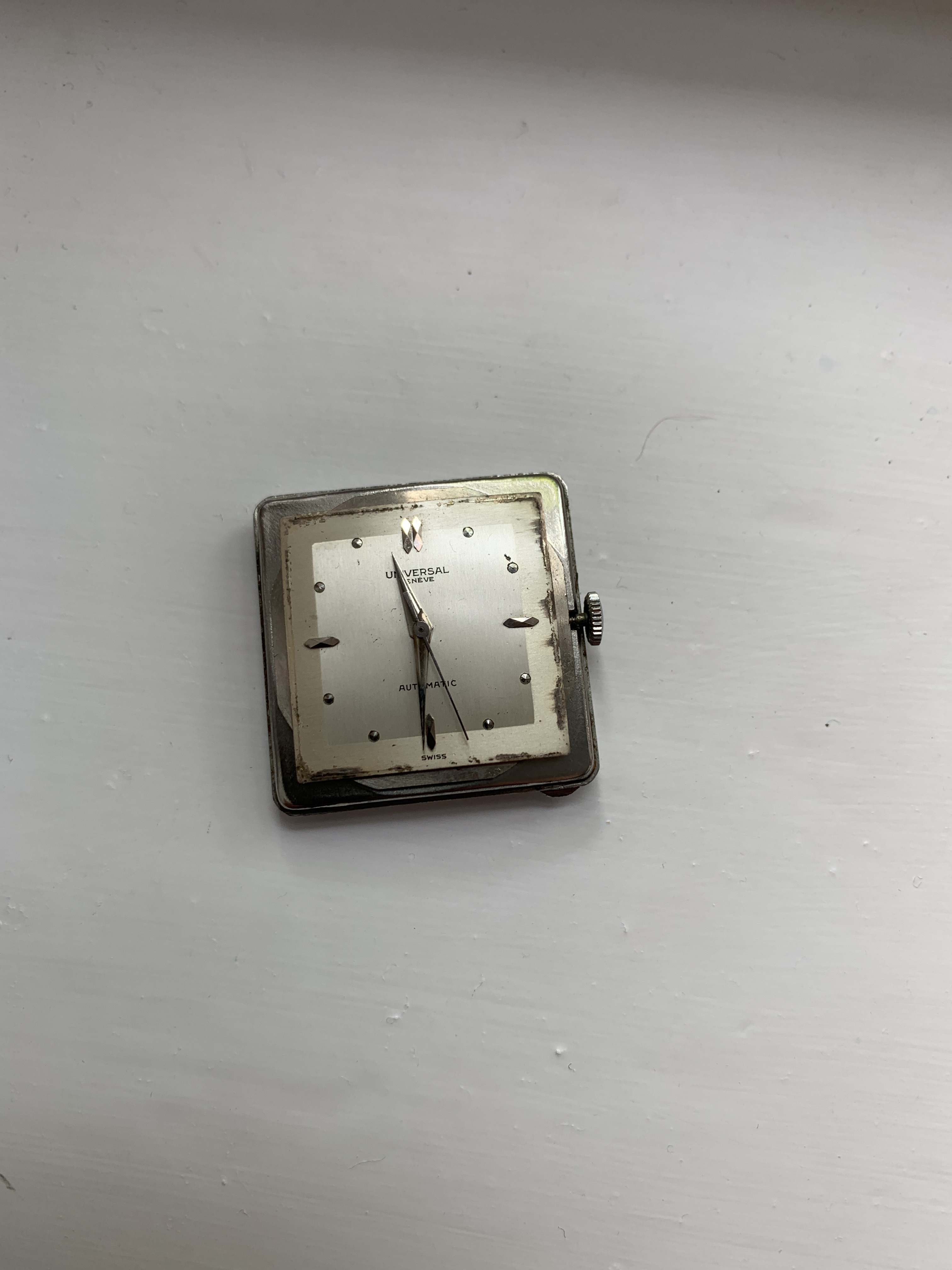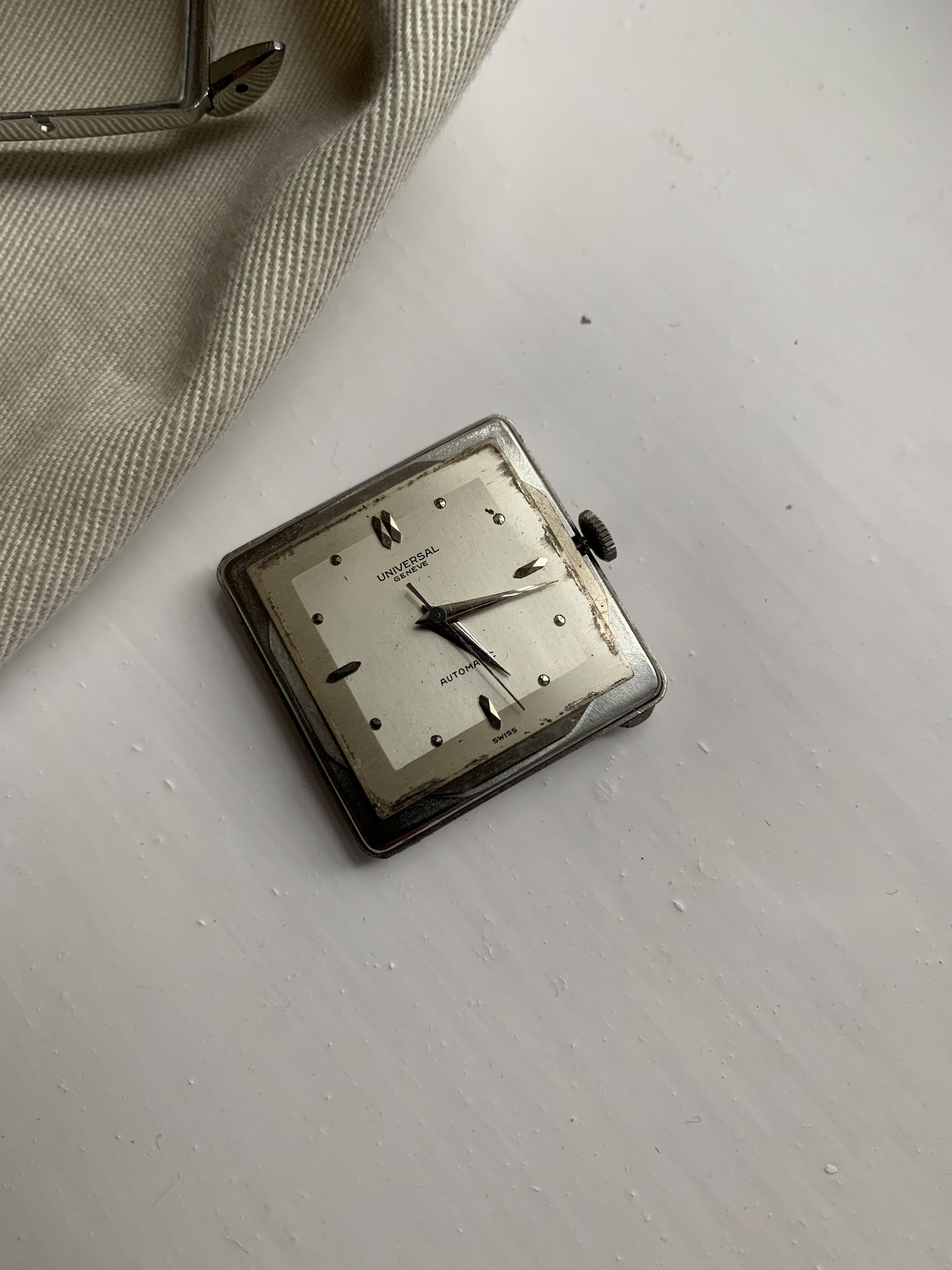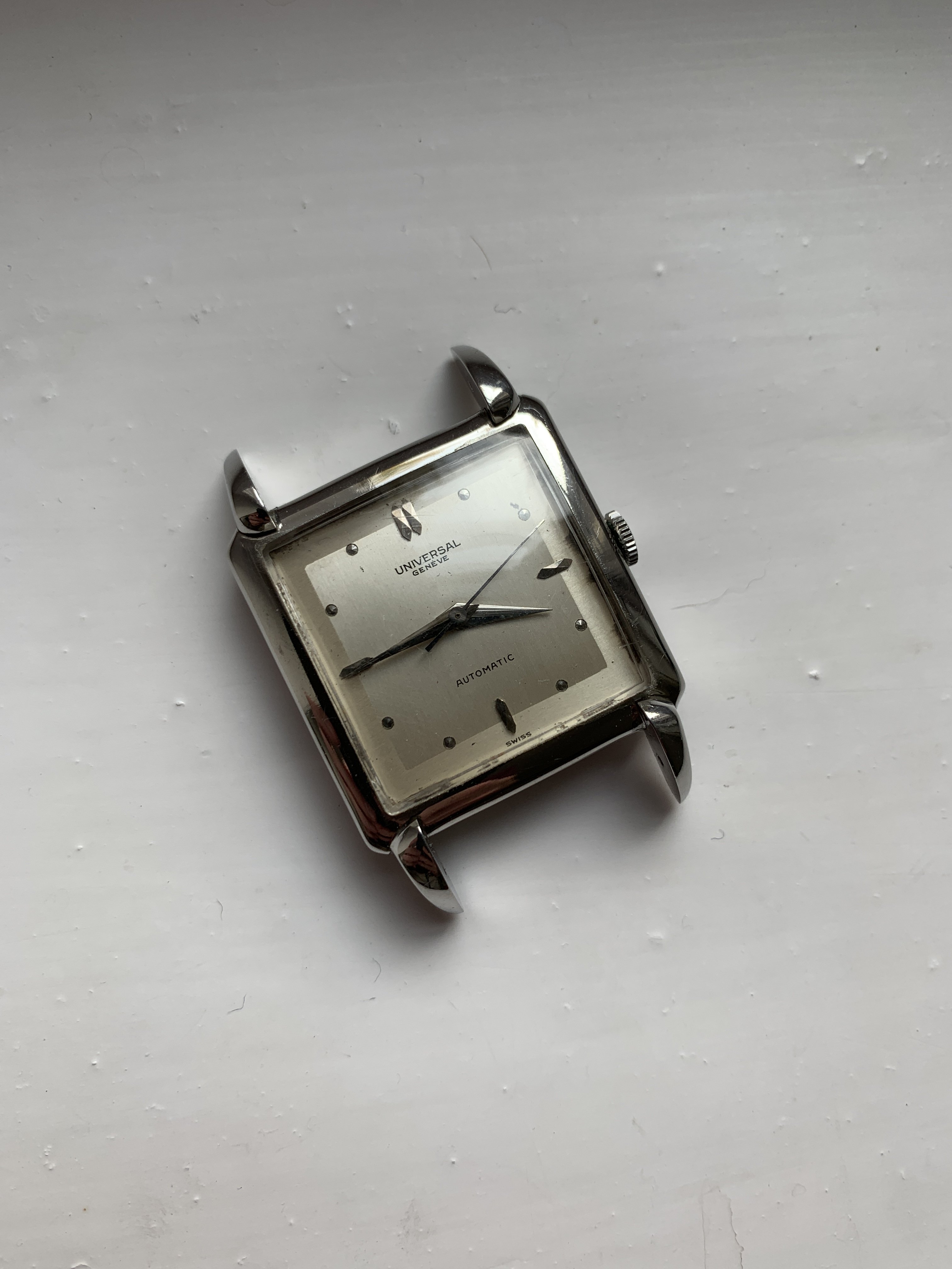 this is my first sale here. My square Universal Genève bumper is for sale. It features a cal. 139, a dial with applied indeces that has been brushed in two ways (depending on how the light hits the dial, it's either two-tone or plain white). It has traces of wear and age throughout - the dial is unfortunately not in the best shape at the edges and the original superdomed crystal has a little scratch scratch at 12. The serial number indicates that the watch has been produced in the mid the 40's. The watch works, holds the time, but I have not had it serviced. Servicing the piece is encouraged.