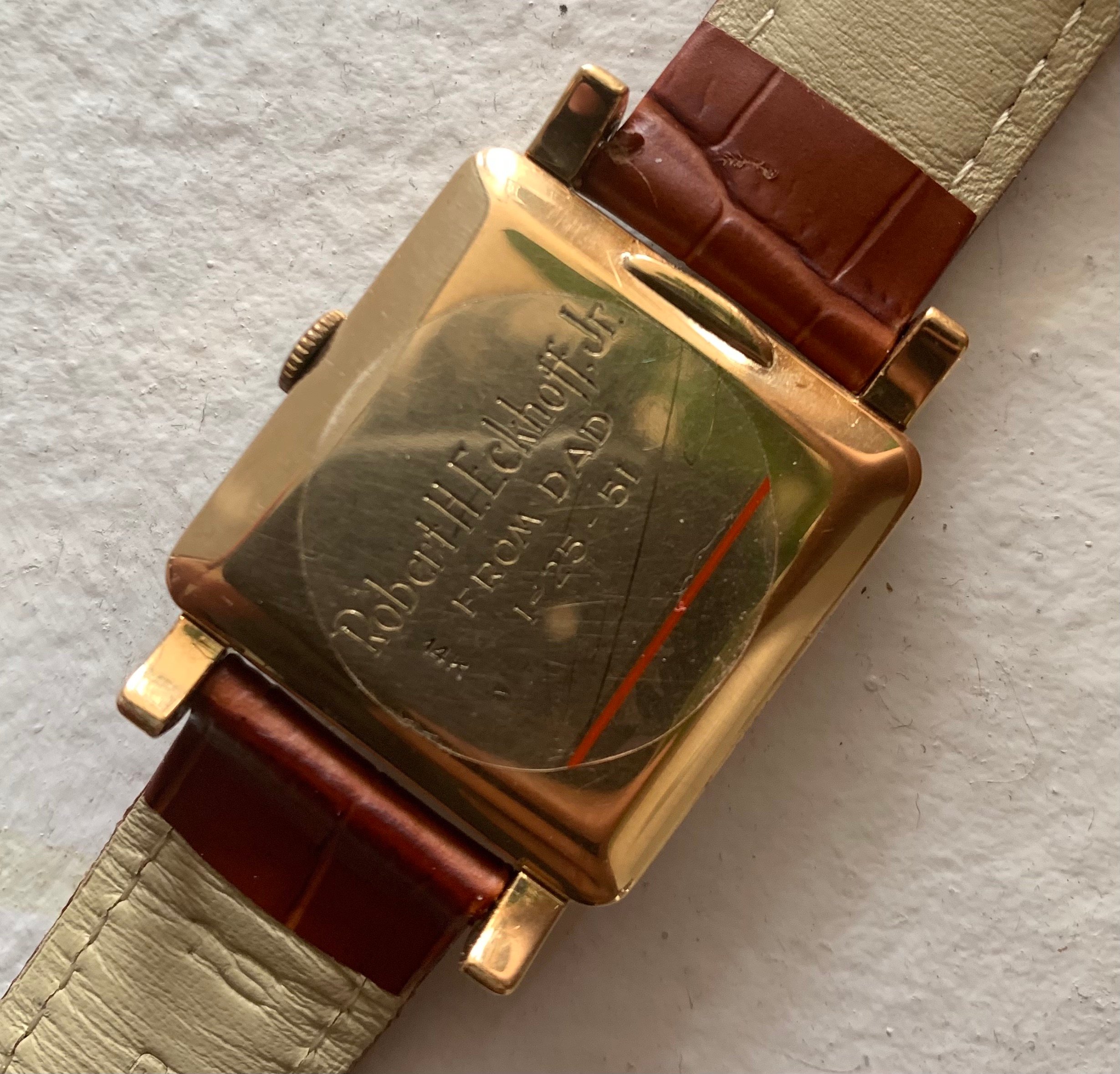 The watch appears to have been gifted from a father to his son and bears the son's name on the back, along with a date (1 - 25 - 51), placing it in the early 1950s. Shreve & Co is a US based jeweler based in California, so I assume it was purchased / retailed within the US market originally around that time.