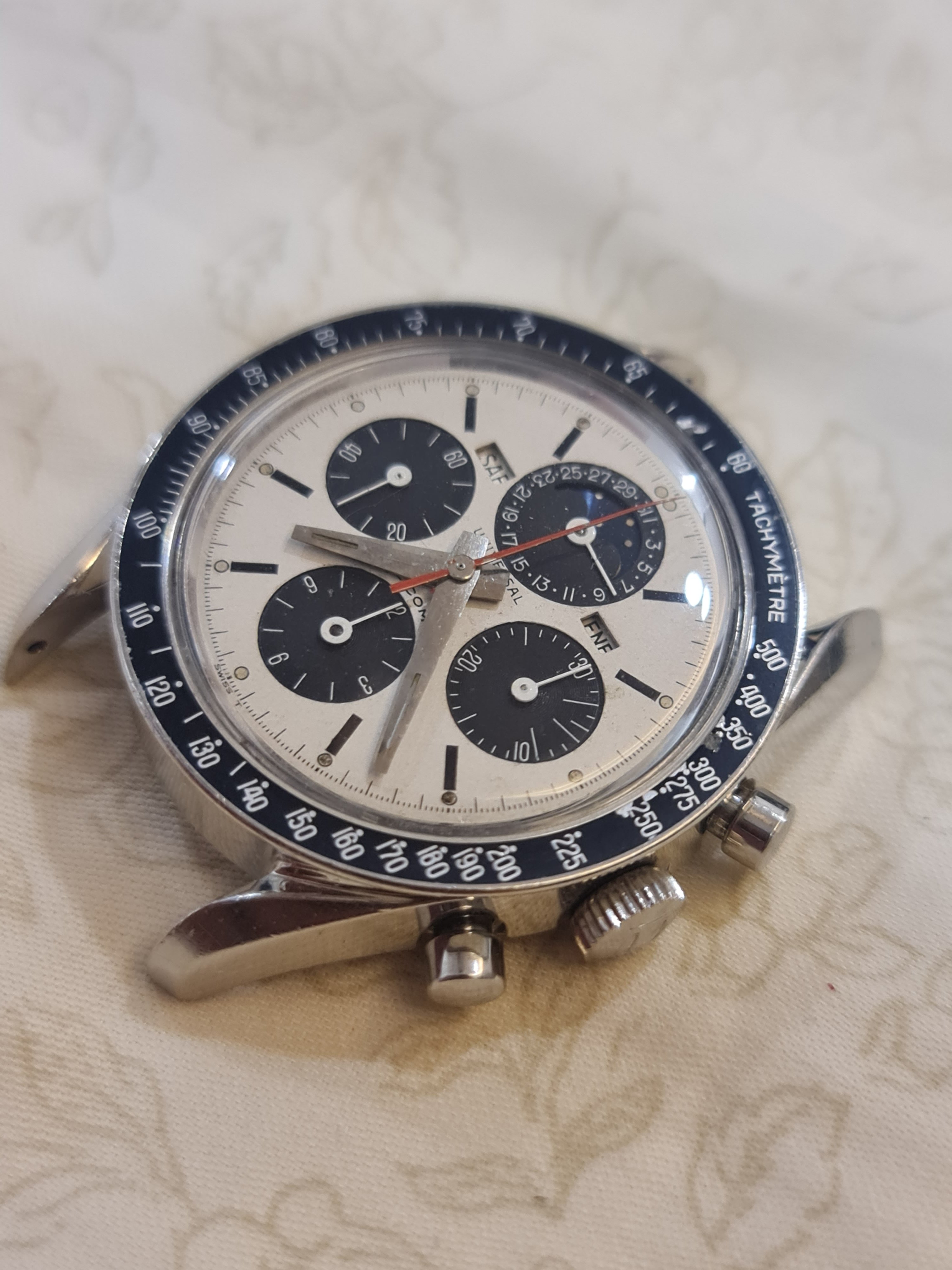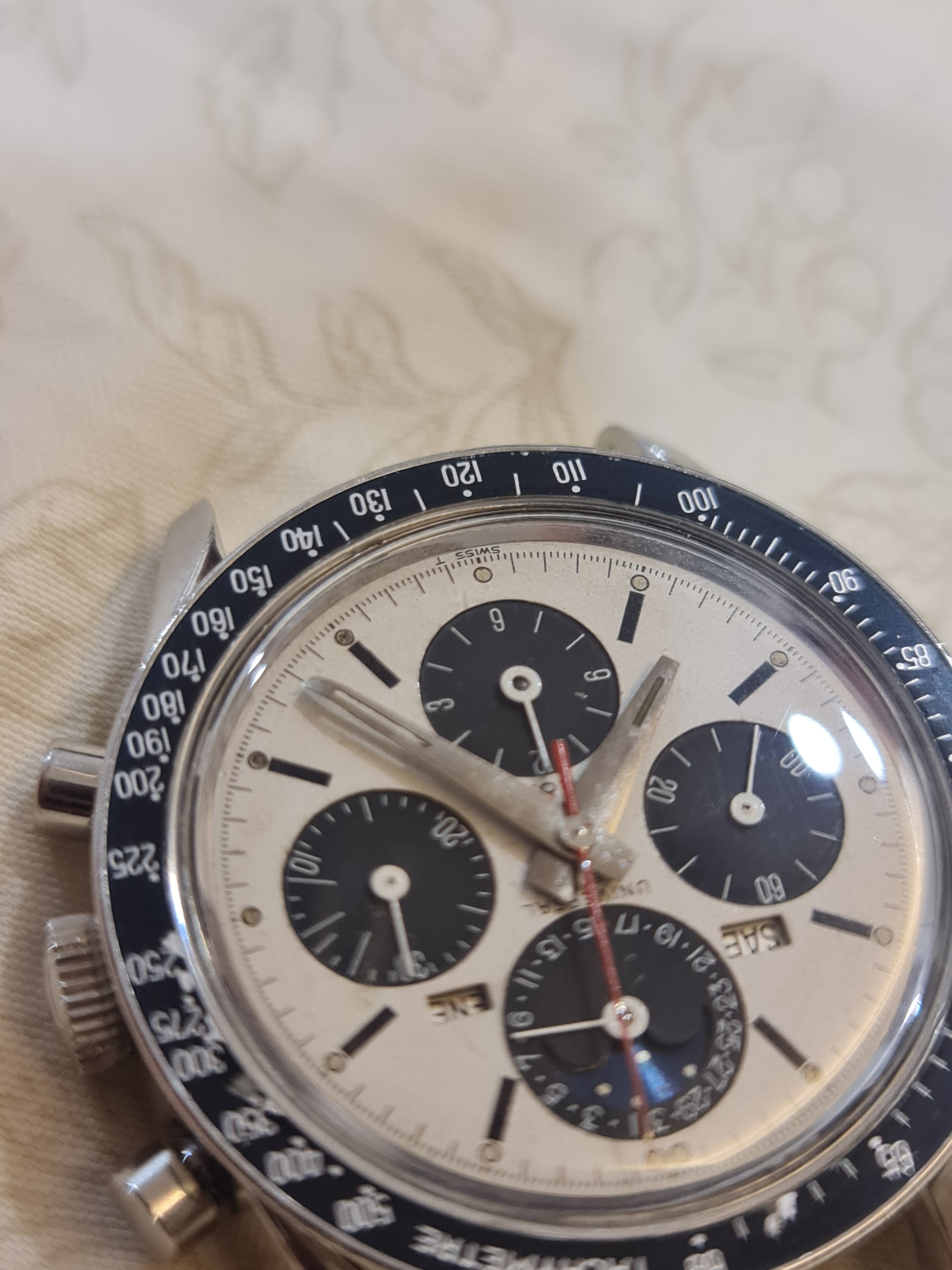 Watch case looks unpolished. Lugs are sharp, thick and nice. There is lume loss on the minute hand. Red chrono hand also has paint loss at the center. There is also a very small mark on the hour sub dial, hardly noticeable though. Let the photos do the talking...