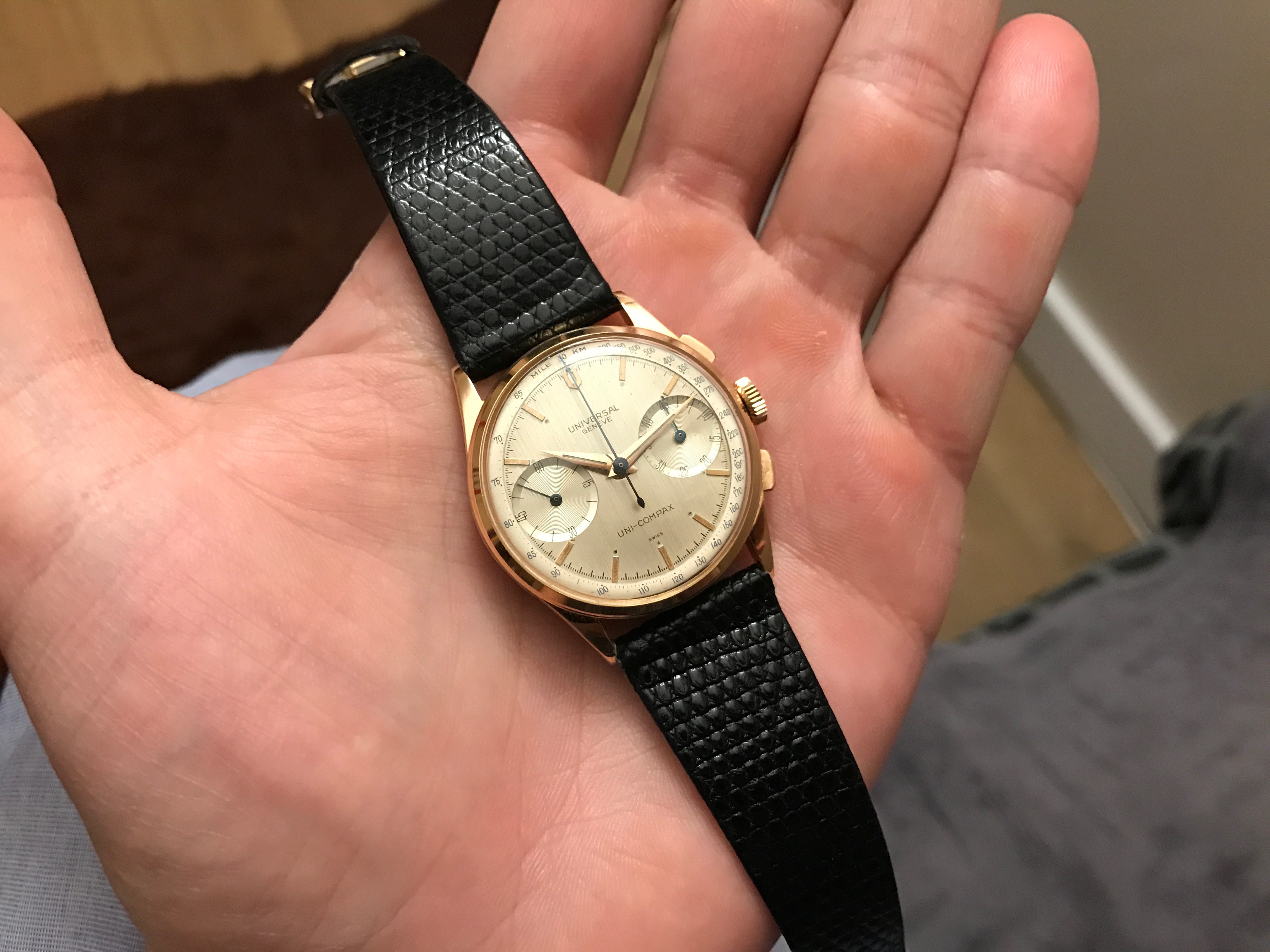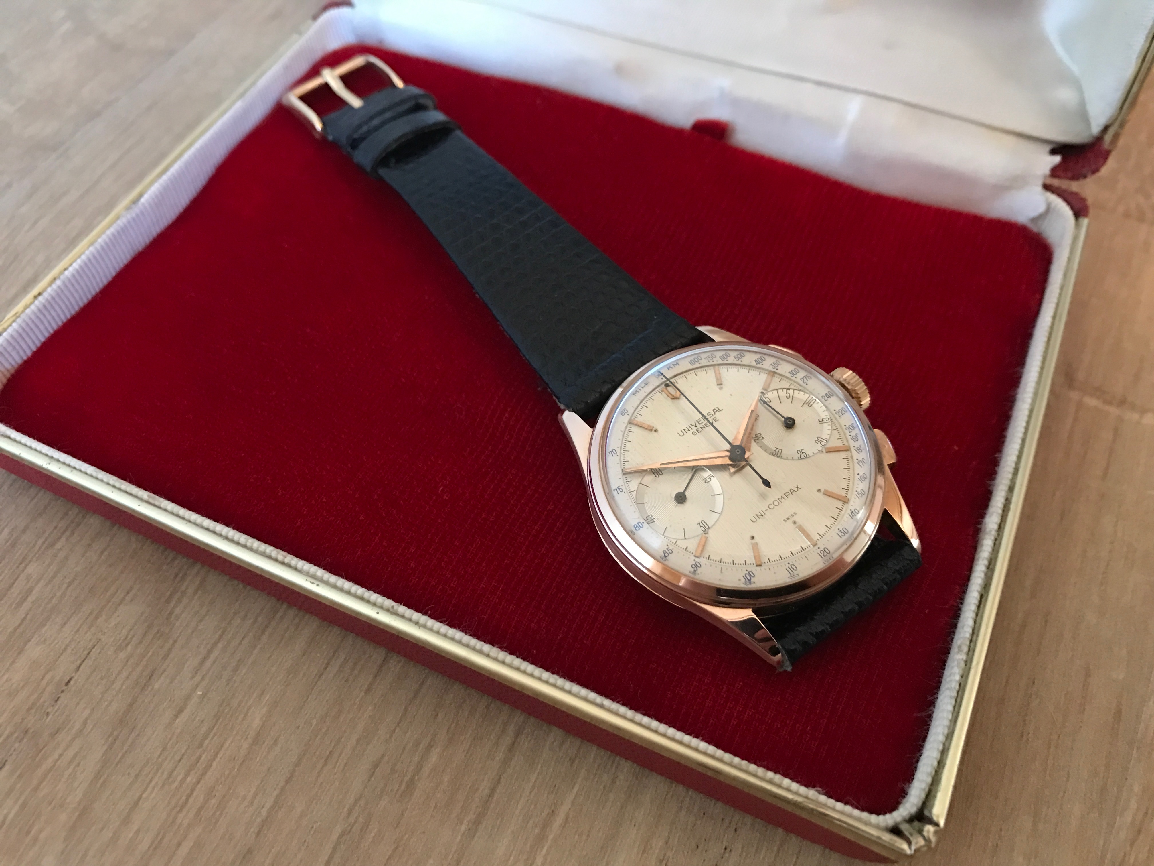 This is a really honest example of the late and rare 124118-5 Uni Compax from 1962.