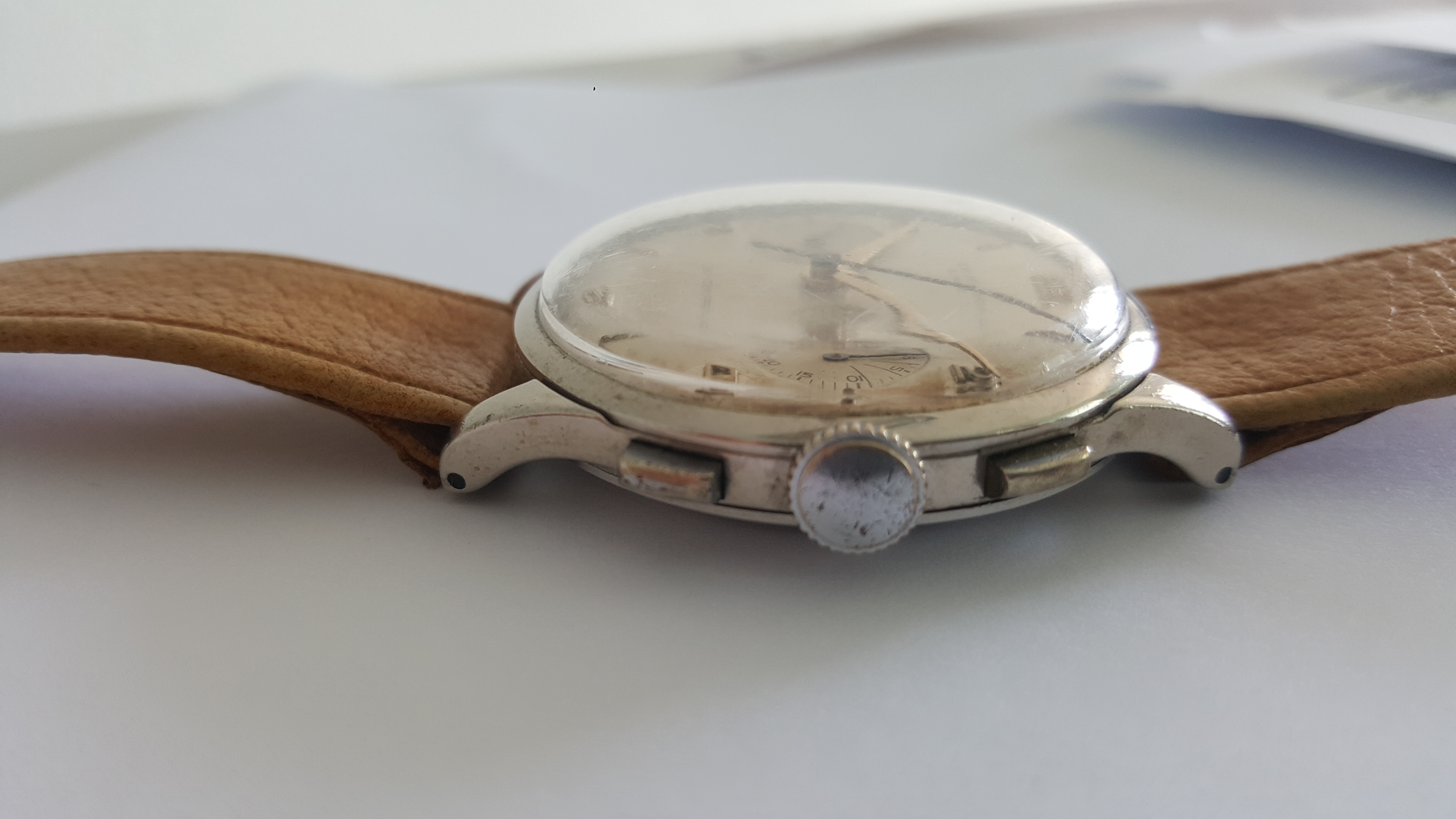 This model has the chromed case, in good condition, and it is Big Size with 38mm without crown.
