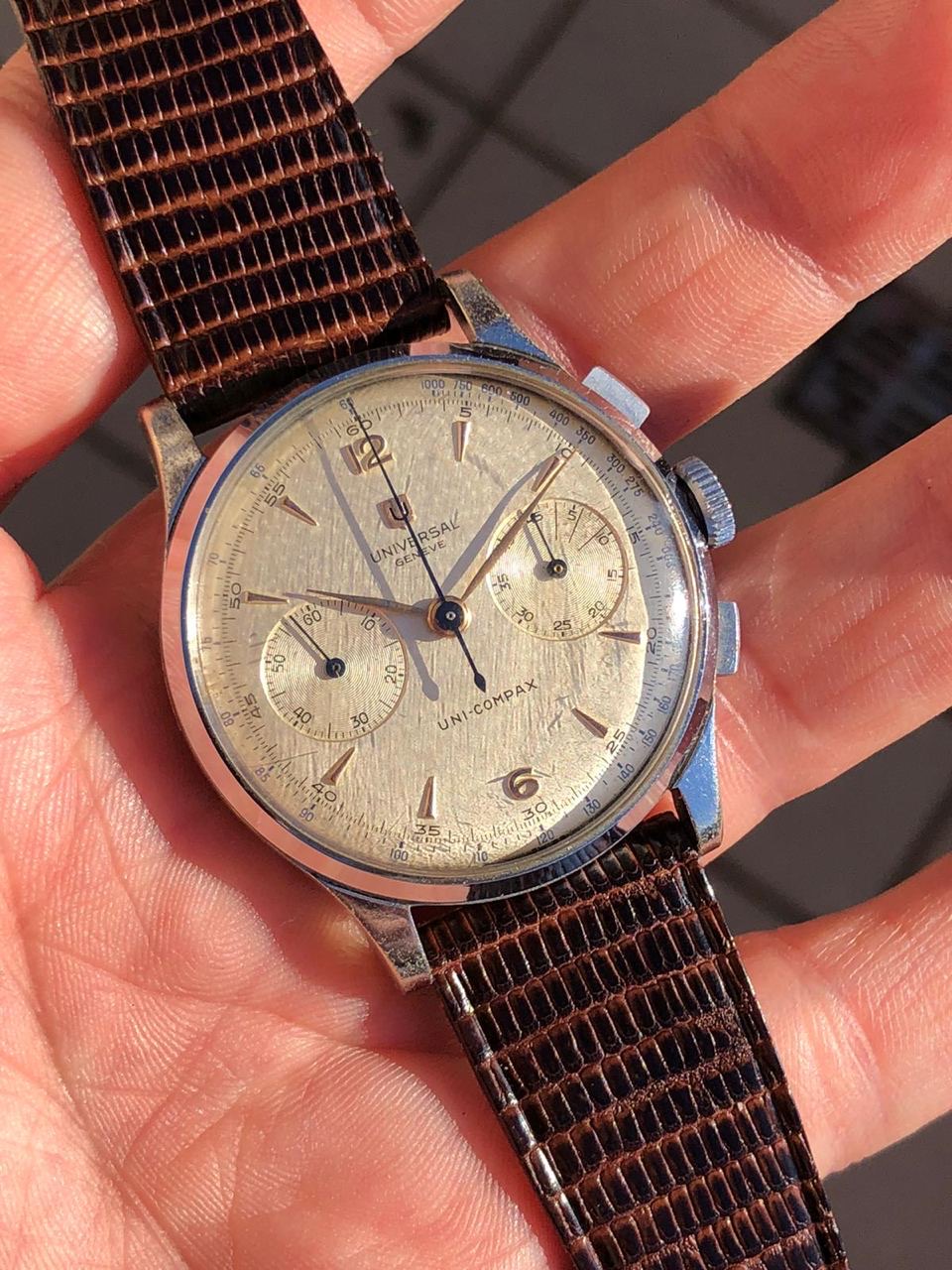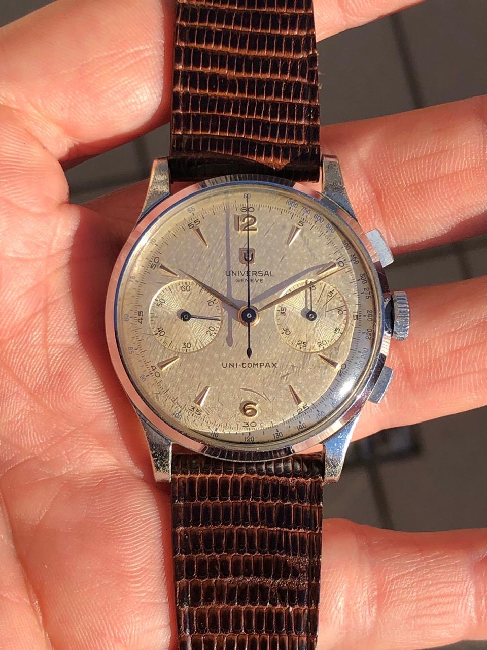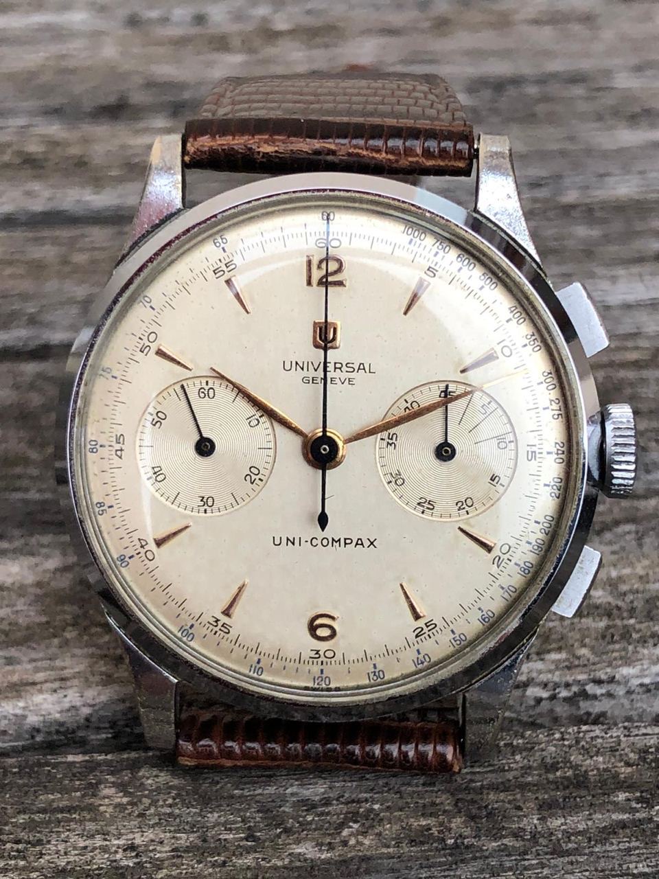 I have for sale a very charming Universal Genève oversized chronograph manufactured in the 1950's.