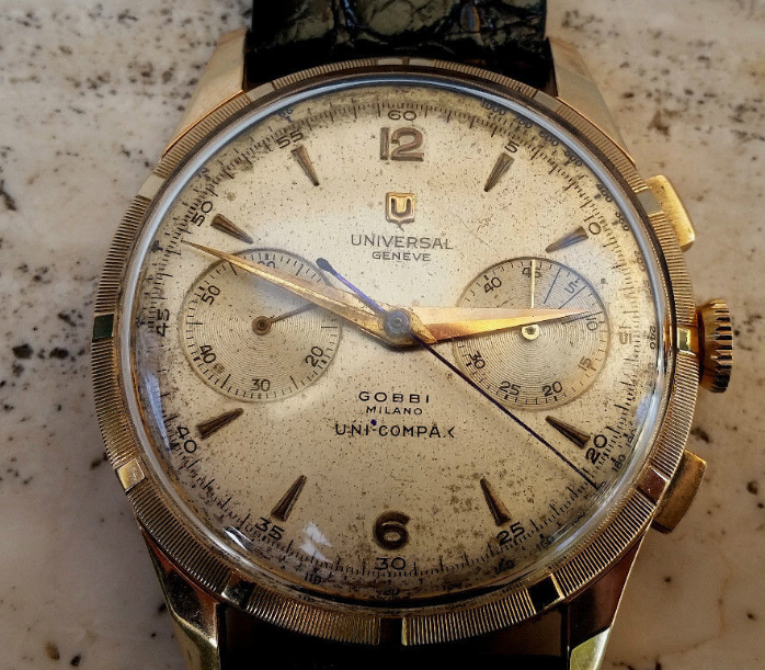 Here's an interesting one. The case looks to be in good condition, the hands are original (probably not the seconds hand) its a pitty about the dial. The Gobbi Milano is a little off to my eye. What are your opinions?